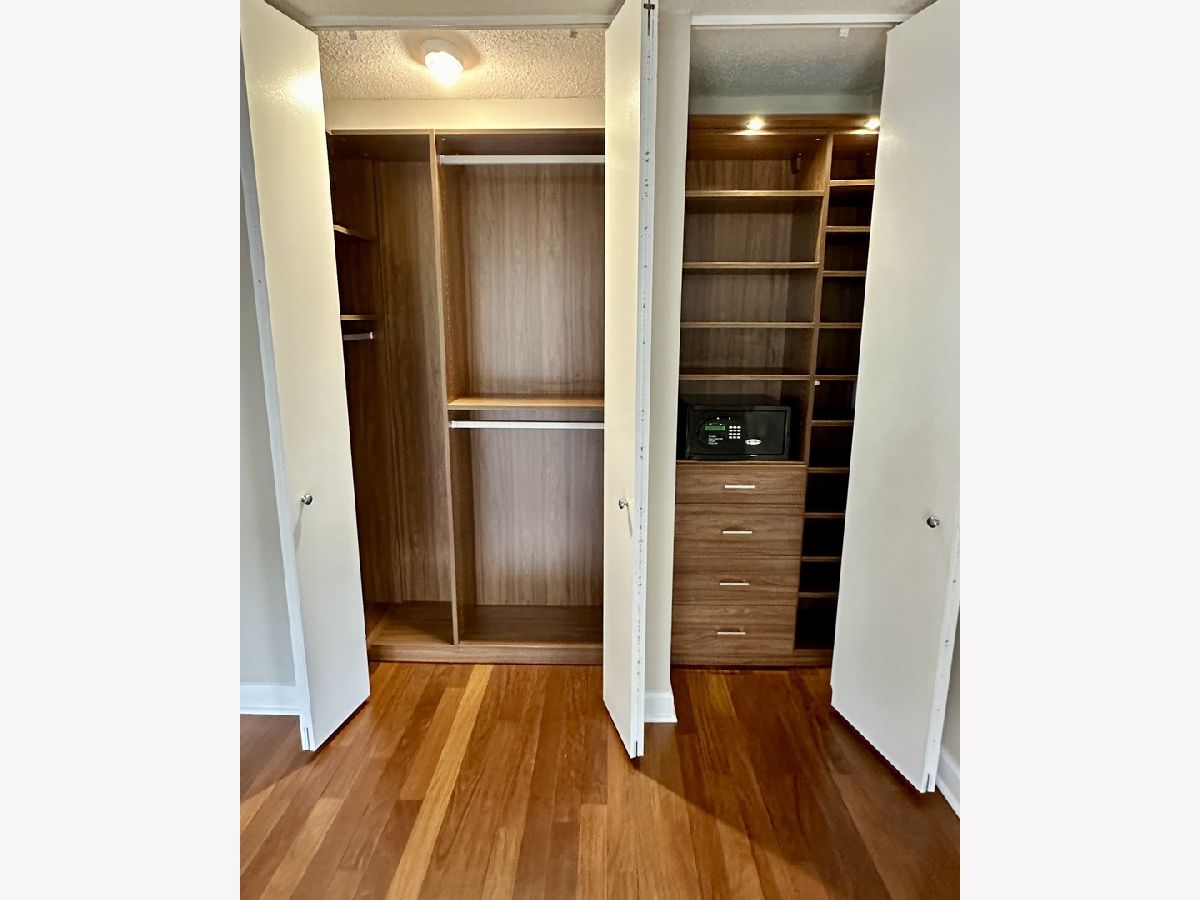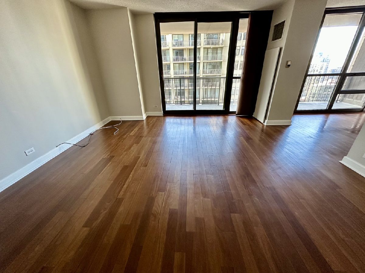 Updated 795 sq. ft. Jr bedroom nestled in the heart of the thriving River North neighborhood. The kitchen features all stainless steel appliances with GE Profile refrigerator and dishwasher. The granite countertops, complete with a stylish breakfast bar area, provide an inviting space for meal preparation and casual dining and plenty of cabinetry offering ample storage. The living room opens to the balcony and features a custom shelving nook that creates an artistic focal point. Teak wood floors flow throughout. No need to worry about storage space - there are 6 closets! Both bedroom closets, pantry, coat closet, and both bathroom closets all feature California closets organizers where you'll find an abundance of space! The extra-large and wide balcony features Western city views and refreshing breezes. Full amenity building: 24-hour door staff, fitness center, indoor hot tub, locker rooms, outdoor pool, sundeck with grills and seating area, common laundry room, party room, business center and bike room. Ideal location near Trader Joe's, Whole Foods, Eataly, the "L," as well as the best restaurants, nightlife, and shopping that Chicago has to offer! No pets.