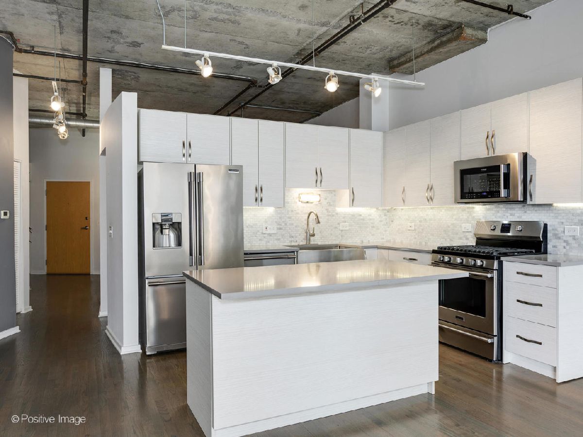 Completely remodeled spacious east facing 2 bed/ 2 bath condo in the heart of the West Loop! This almost 1400 SF unit boasts a contemporary renovated kitchen with white cabinetry, stone counter tops, farm sink, stainless steel appliances, and a generous island. Huge open concept living dining space is flooded with natural light from the east and opens to a large balcony with partial skyline views. Large primary bedroom with an oversized walk in closet and remodeled ensuite bath with soaking tub and dual vanities. The second bedroom is larger than most with two closets and easy access to the remodeled guest bathroom. Spacious entry foyer with a large coat closet and Washer/Dryer in unit. Photos do not reflect brand new neutral carpet in the bedroom and fresh white paint throughout. Attached tandem garage parking and a large walk in storage room included! Full amenity building offers a rooftop deck with incredible skyline view, courtyard, renovated business center, expansive fitness center, full service dry cleaners, bike room, electric car charging station, 24hr door staff & stunning lobby. A+ walk to everything location in the West Loop steps from Mary Bartelme Park, Target, Mariano's, Whole Foods, Morgan (Pink/Green) 'L' stop or the UIC Halsted (Blue) 'L' stop and West Loop's famous Restaurant Row on Randolph! West Loop living at its finest...Available Now! Move in/out fees apply.