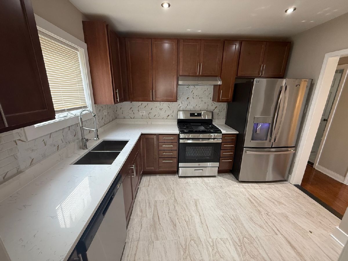 Completely remodeled, new kitchen, stainless steel appliances, 42 inch cabinets, quartz countertops, porcelain tile floor, separate dining room, hardwood floors, 3 new bathrooms, one on each floor, 2 bedrooms on main floor, 2 bedrooms on 2nd floor, finished basement with large bedroom and bath. high efficiency furnace, washer/dryer hook ups, back yard.
