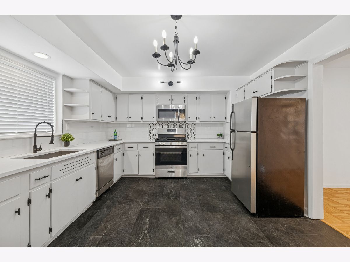 Newly renovated 4-bedroom, 3-bath located in the highly sought-after Beverly neighborhood. This expansive, sun-filled home is situated within the desirable SUTHERLAND School District. This property features a private ATTACHED 2 car garage, gleaming hardwood floors throughout, complemented by exquisite parquet flooring in the living and dining rooms. The large kitchen offers stainless steel appliances, quartz countertops, and ample cabinet and counter space-perfect for everyday living and entertaining. All bedrooms are generously sized, including a primary suite with a private bathroom and walk-in closet. Additional highlights include in-unit laundry and central AC. Enjoy the spacious backyard ideal for grilling, relaxing, or unwinding outdoors. Conveniently located near parks, Metra train for downtown commutes, Beverly Arts Center, local restaurants, and shopping. Best value in Beverly!