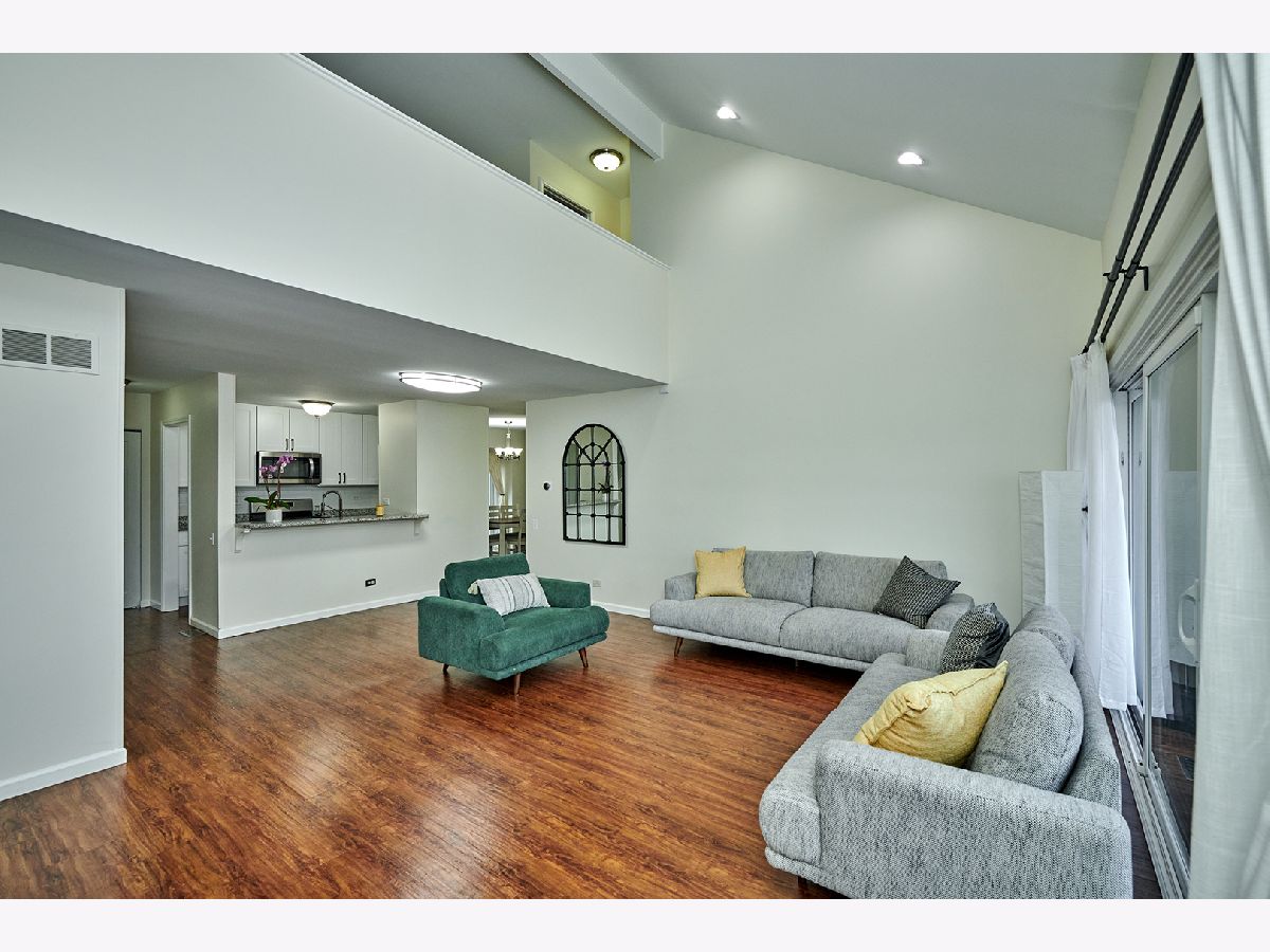 Welcome to this beautifully updated end unit townhome, offering a fantastic location and many modern features. Enjoy the spacious family room with vaulted ceilings, offering a picturesque landscape view through the patio door. A central fireplace adds warmth and charm, creating the perfect spot to unwind after a long day. The kitchen boasts tall white cabinets, granite countertops, a subway tile backsplash, and stainless steel appliances. It seamlessly flows to a formal dining room with direct access to the backyard patio, ideal for indoor-outdoor living and entertaining. Located just minutes from the expressway, schools, Metra station, and a variety of amenities, this townhome offers everything you need within reach.
