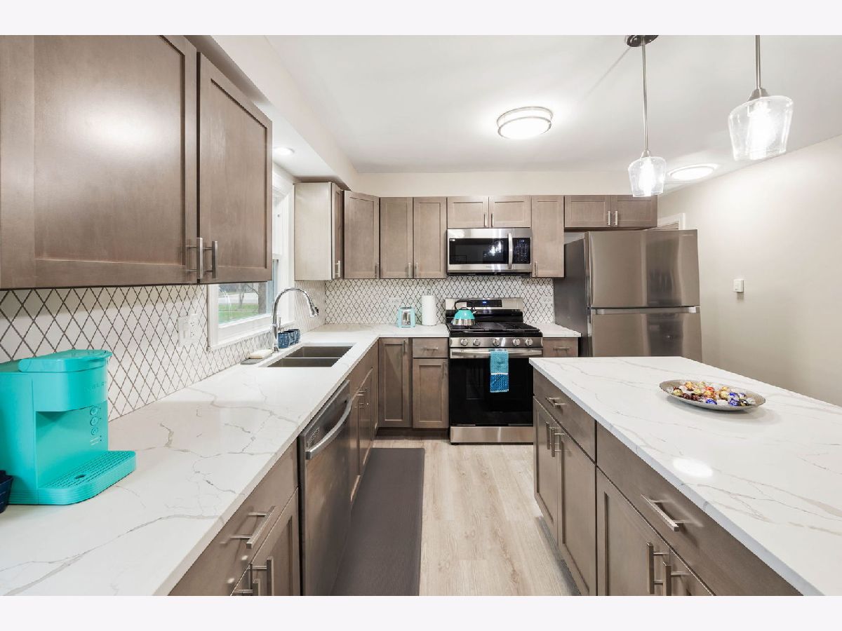 Stunning brick ranch rehab in this quaint town! Home features new luxury plank flooring, splendid brand new kitchen with quartz countertops, and stainless steel appliances, spacious new bathroom, new doors, fresh paint, windows, light fixtures, New AC & water heater, new driveway, and the grand prize a brand new 2 car garage! Just move in to this bright inviting home close to expressway, shopping, schools, parks, and dining.