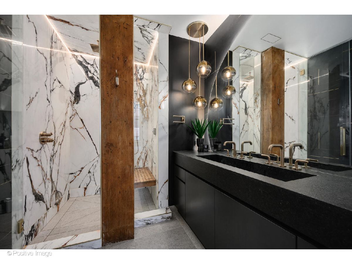 Rare opportunity to rent a finely furnished, 1800 SQFT, glamourous loft in the heart of Chicago's West Loop neighborhood! This exquisitely finished 3 bed, 2.1 bath residence has sleek design and cool, urban vibes. Barely lived in, this home features 14ft timber ceilings, exposed brick and ductwork, hardwood flooring, and custom lighting design throughout. Double blackout shades line the windows of the living room and primary suite, while the third bedroom (currently a den/office) has single blackout shades. An entry foyer with a dramatic floor-to-ceiling mirror slides back to reveal a walk-in coat and storage closet. The foyer leads you down a hallway lined with backlit, glass-faced shelving into the impressive living room. This show-stopping space features a two-sided water vapor, color changing fireplace, an accent wall clad in Phillip Jeffries wallpaper, and giant windows with honed granite windowsills complete with LED lighting showcasing eclectic urban views. The living room opens into a sophisticated Italian kitchen with slab marble countertops and waterfall island, top-of-the-line Bosch and Fisher Paykel appliances, streamlined, two-toned cabinetry, glass display shelving, and a center island with breakfast bar. On the other side of the two-sided fireplace is a spacious dining room with large, west-facing windows. The living room TV is on a swivel and can easily change places with the dining room artwork above the mantel. The elegant primary suite offers a private, serene escape and enjoys abundant natural light, a custom walk-in closet, and a luxurious, spa-like ensuite bath with a steam shower, heated floors, an oversized sink with two faucets, and custom light fixtures. Sophisticated fogged glass paneled French doors in the dining area open into the second bedroom, currently configured as the perfect den/home office with a couch that folds out into a queen-sized bed. A sleek, full bathroom with heated floors, double vanity, black marble counters, and an oversized shower Jack-and-Jills into the graciously sized third bedroom. A beautifully appointed powder room and a laundry room with LG washer and dryer complete this space. Long and short-term lease options available with a 6-month minimum lease term. Dogs under 30 lbs. allowed upon landlord approval with additional pet deposit and pet rent. One assigned parking space in the attached garage included in the rental price. Located at the center of Chicago's vibrant West Loop neighborhood within close proximity to Google offices and McDonalds HQ, Fulton Market restaurants and nightlife, SoHo House, and public transportation, this is the perfect rental property in the best possible location.
