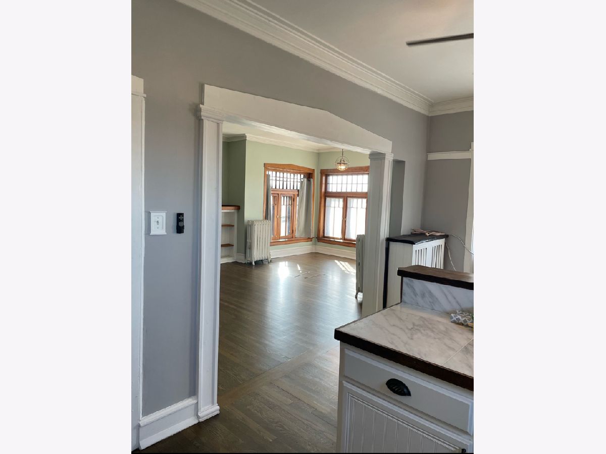 This vintage condo has been newly remodeled. In the Heart of Oak Park, large one bedroom with a den located 2 blocks away from the green line. Hardwood floors throughout and original molding, decorative fireplace. Complete rehabbed kitchen with stainless steel appliances, new tile and vanity in the bathroom. Sun drenched and open, laundry in unit. Steps away from shops and restaurants!!!