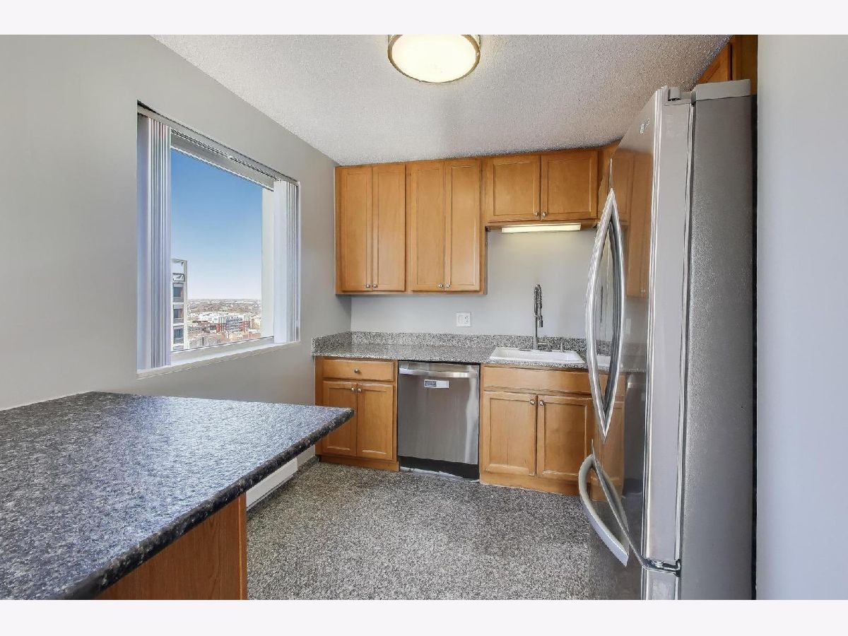 Freshly painted and new carpet in this oversized 1 Bed/1 Bath SOUTHWEST CORNER unit with incredible city views and two parking spaces available. The southern and western exposure with fantastic windows create panoramic views of the skyline and drenching the unit with natural light. Very efficient and well-maintained true one bedroom floor plan lives generously with ample closet space and features an exterior balcony, SS Appliances, Granite Counters. Fantastic home that is great for working from home and/or commuting with the convenient CTA options right outside the door. Unbeatable Old Town/Gold Coast location - steps to Wells St, Division, and Oak/Rush. Red Line and LaSalle bus right outside the door - quick walk/jog to lake front path. Building has a welcoming circle drive for easy pick-ups/drop-offs and deliveries. 24/7 door staff - the best in town! RENT INCLUDES HD/DVR, Internet, heat, and AC. Two parking spacings available for $150 each: one prime indoor on 2nd floor and one outdoor on 4th.