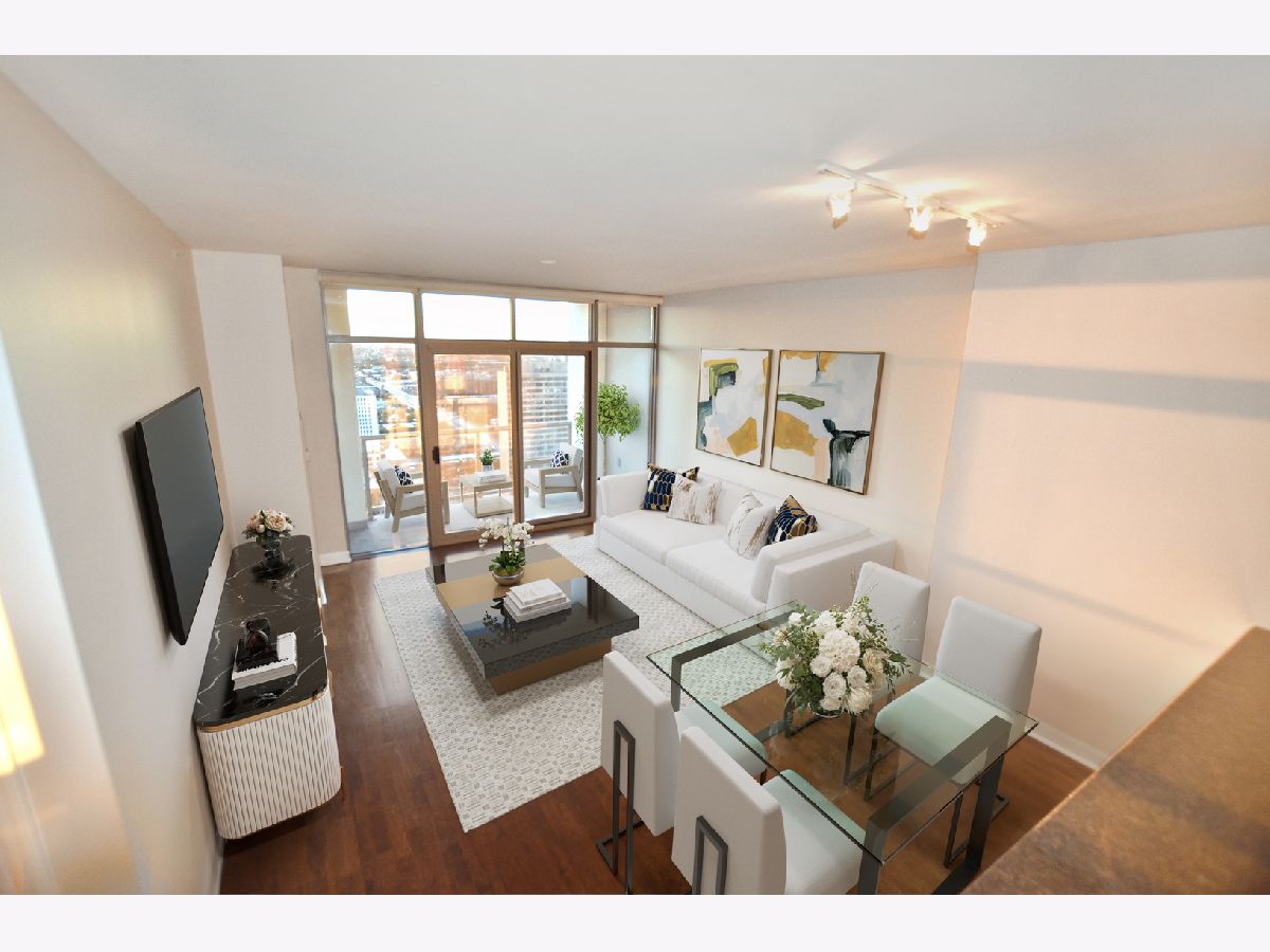 Ready to move-in, like new, one bedroom + den condo on 32nd floor with amazing city views for rent in a full amenity building! Brand new paint throughout the condo, brand new bathroom vanity, brand new floors in the bedroom and walk-in-closet and a separate den/home office makes this condo unique! 9 feet ceilings throughout the condo.Huge sun-filled, airy living room with adjacent balcony looking over the city! Updated kitchen with granite counter tops, newer stainless steel appliances, 42 inches tall cabinets and lower cabinets with pull outs. The separate den can be used as home office. There is a good size bedroom with west facing floor-to-ceiling windows filling the room with sunshine and showcasing beautiful west side city skyline views. Living room and bedroom have professionally installed custom window treatments. Enjoy the morning coffee in the balcony while viewing the city from the 32nd floor!!! Additional storage included. Full amenity building offers 24-hour door staff, outdoor pool, fitness center, party room with sun deck, on-site management, and Amazon Hub along with receiving room. Ideal South Loop location right by many museums, parks, Northerly Island, Lake Michigan, public transportation, the loop, and amazing restaurants/nightlife. Must See!!!