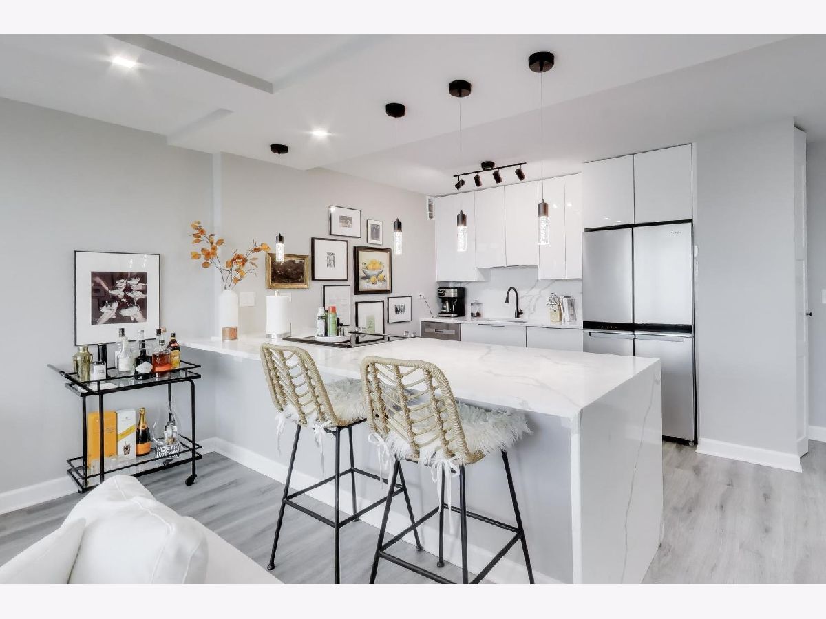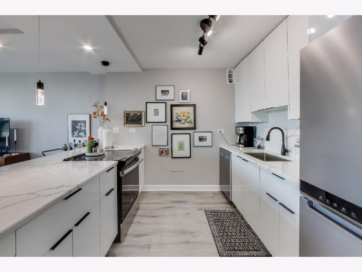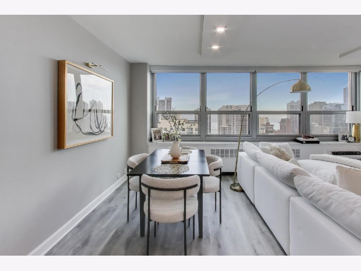 Located in Eliot House, Sandburg Village's most sought-after building, this updated one-bedroom, one-bath home offers an open layout with beautiful city and Lake Michigan views. The living and dining area flows effortlessly, making it ideal for both everyday living and entertaining. The updated kitchen features white cabinetry, quartz countertops and backsplash, and stainless-steel appliances. The spacious bedroom comfortably fits a king-size bed and also allows room for a home office. You'll find ample organized closet space throughout, plus an additional storage locker. Enjoy full-service living with 24-hour door staff and onsite management, along with access to Sandburg Village amenities including an outdoor pool, tennis courts, sundeck, grilling areas, and a rooftop deck with panoramic lake and skyline views. Just steps to the lakefront path, Michigan Avenue, and the best of Old Town and the Gold Coast.