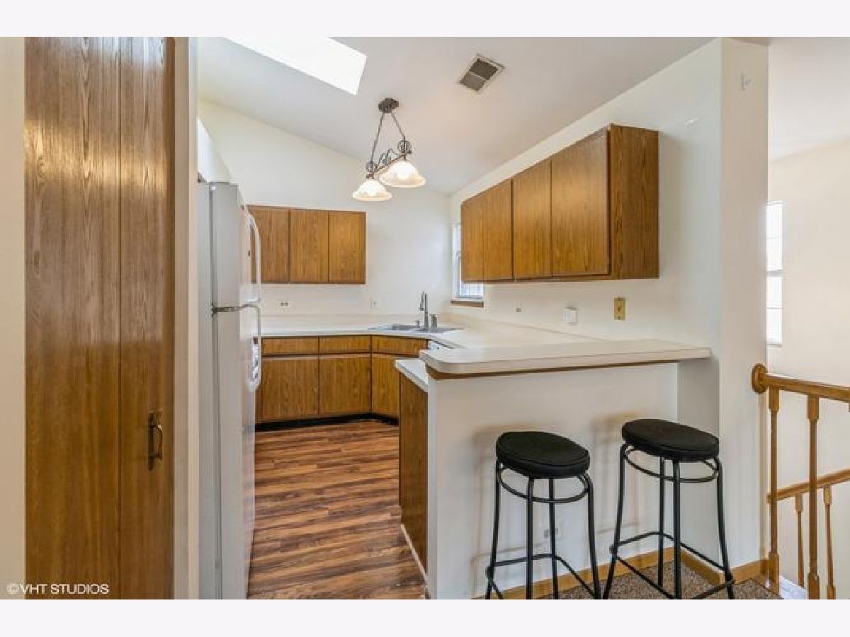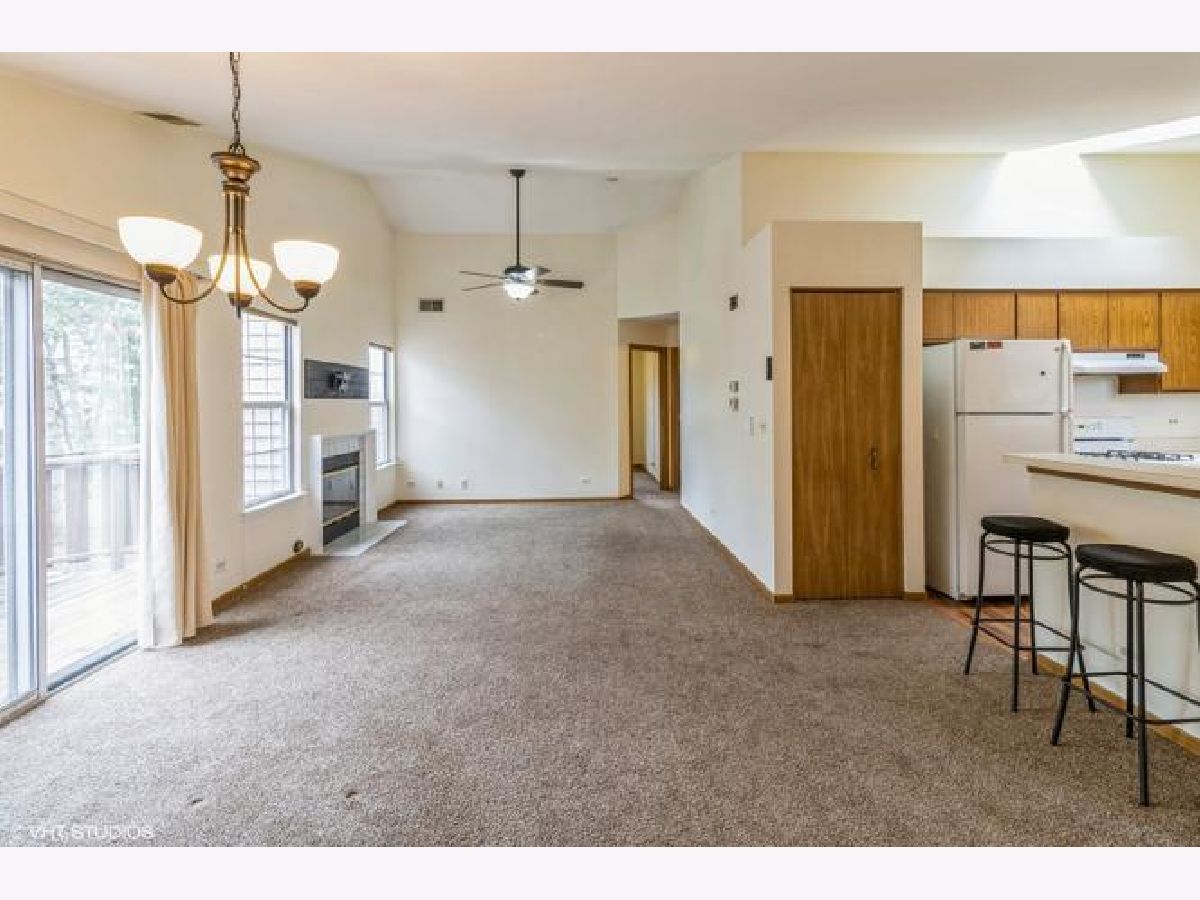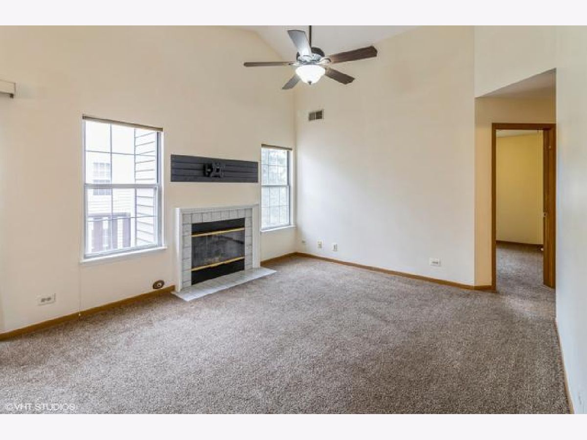 Bright, open-concept rental with vaulted ceilings and skylight. Enjoy a cozy fireplace, ceiling fans, and private balcony. kitchen features wood laminate floors, pantry, and breakfast bar. Full-size laundry in-unit, attached garage, and extra-long driveway. Primary bedroom with private bath, double vanity, and walk-in shower. spacious second bedroom and full hall bath. located in top-rated school districts near metra, parks, shopping, and coral cove water park. great location-don't miss out!