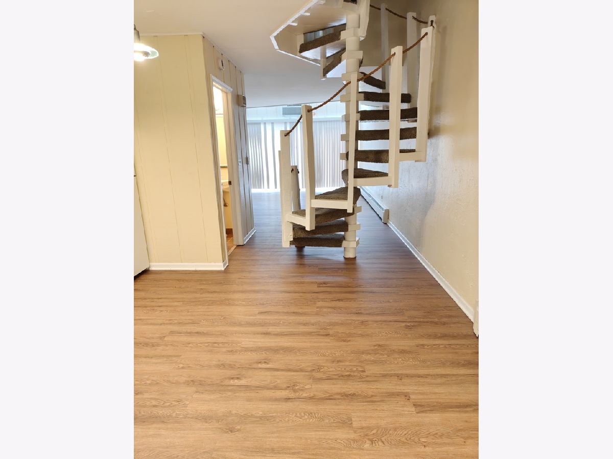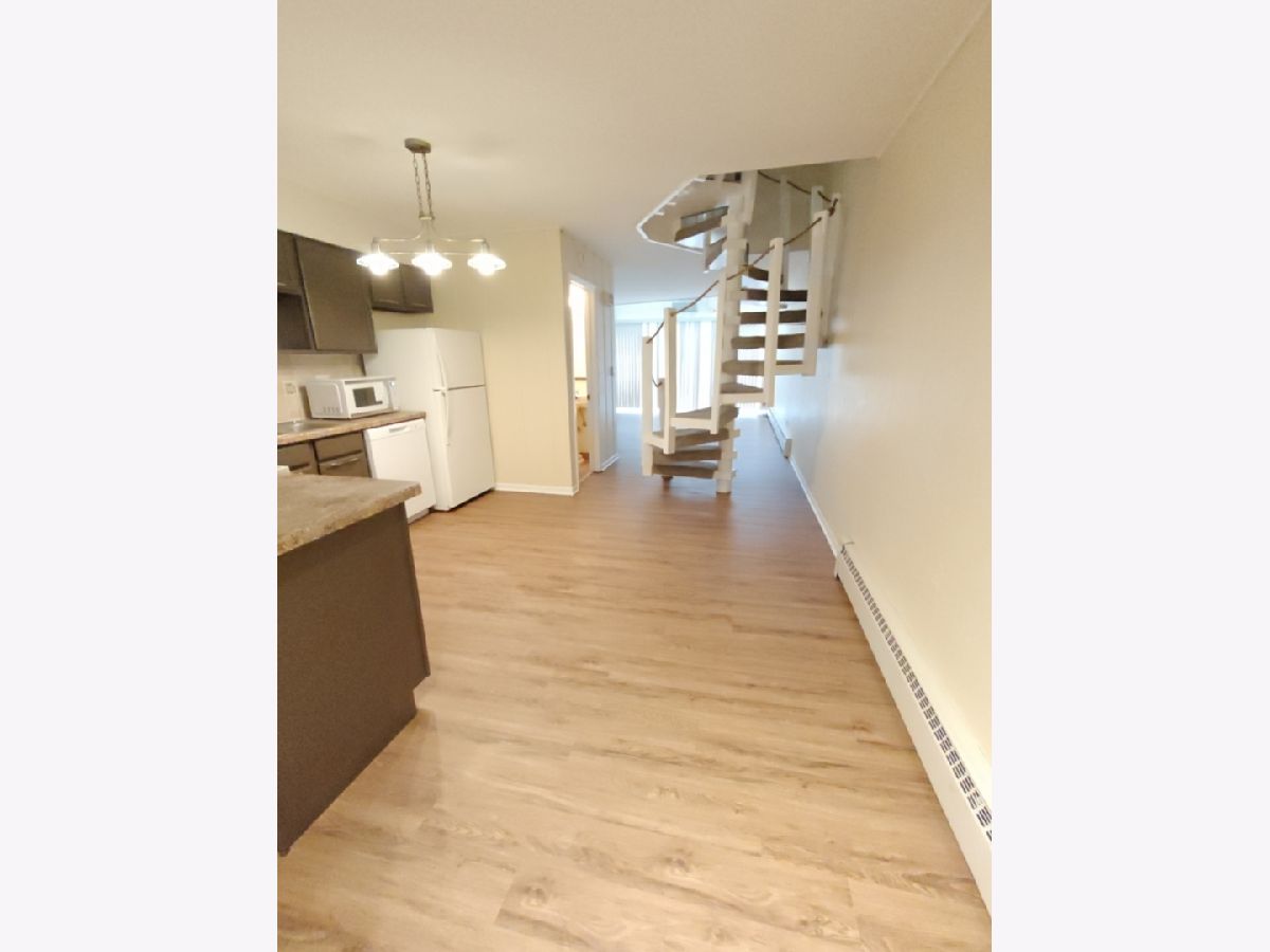 Welcome to this delightful two-story condo, where the allure of loft-style living meets the comfort of a townhome. Step inside to discover a spacious open-plan layout on the first floor, featuring an inviting kitchen adjacent to the dining area and a welcoming living room illuminated by floor-to-ceiling windows. This level also offers a convenient half bath and sleek engineered hardwood floors throughout. Ascend the distinctive staircase to the second floor, where two cozy bedrooms await your relaxation. The master bedroom boasts a walk-in closet and access to a charming back porch, while the second bedroom, with its open concept design and floor-to-ceiling windows, serves as an ideal space for a home office or guest room. Step outside from the living room onto the enchanting patio, perfect for enjoying summer gatherings and outdoor entertainment. Additional conveniences await in the basement, including laundry facilities and ample storage space. Rent includes parking for two vehicles and covers water, heat, scavenger services, snow removal and lawn care. Nestled near downtown Des Plaines, this property offers both practicality and comfort. With its proximity to the Metra and bus station, shopping destinations, restaurants, and entertainment venues, as well as easy access to O'Hare airport, highways, Chicago, and surrounding suburbs, this home caters to your every need. Whether you prioritize convenience, ample space, or the charm of multilevel living, this end unit promises privacy and emerges as the ideal selection.
