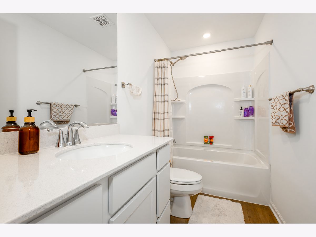 One of Lennar's finest model home - The Essex. It offers a thoughtfully designed layout that blends space, style, and convenience. The first floor features an open-concept living area with a spacious family room highlighted by an electric fireplace, a designer white kitchen with sleek white quartz countertops, and a cozy dining area-each finished with durable luxury vinyl plank flooring. Upstairs, you'll find all three bedrooms, including the private owner's suite complete with a full bathroom featuring a designer tile surround and a walk-in closet. Additional highlights include a two-car garage and a full expanded basement, providing ample space for storage or future customization. Ideally located near I-90 and Route 47 within the highly rated Hampshire School District, homes at Tamms Farm also feature advanced Smart Home technology, including a Ring Video Doorbell, Honeywell Home Smart Thermostat, and Level Invisible Smart Lock system. This unit can be rented fully furnished. Contact your agent to schedule a showing.
