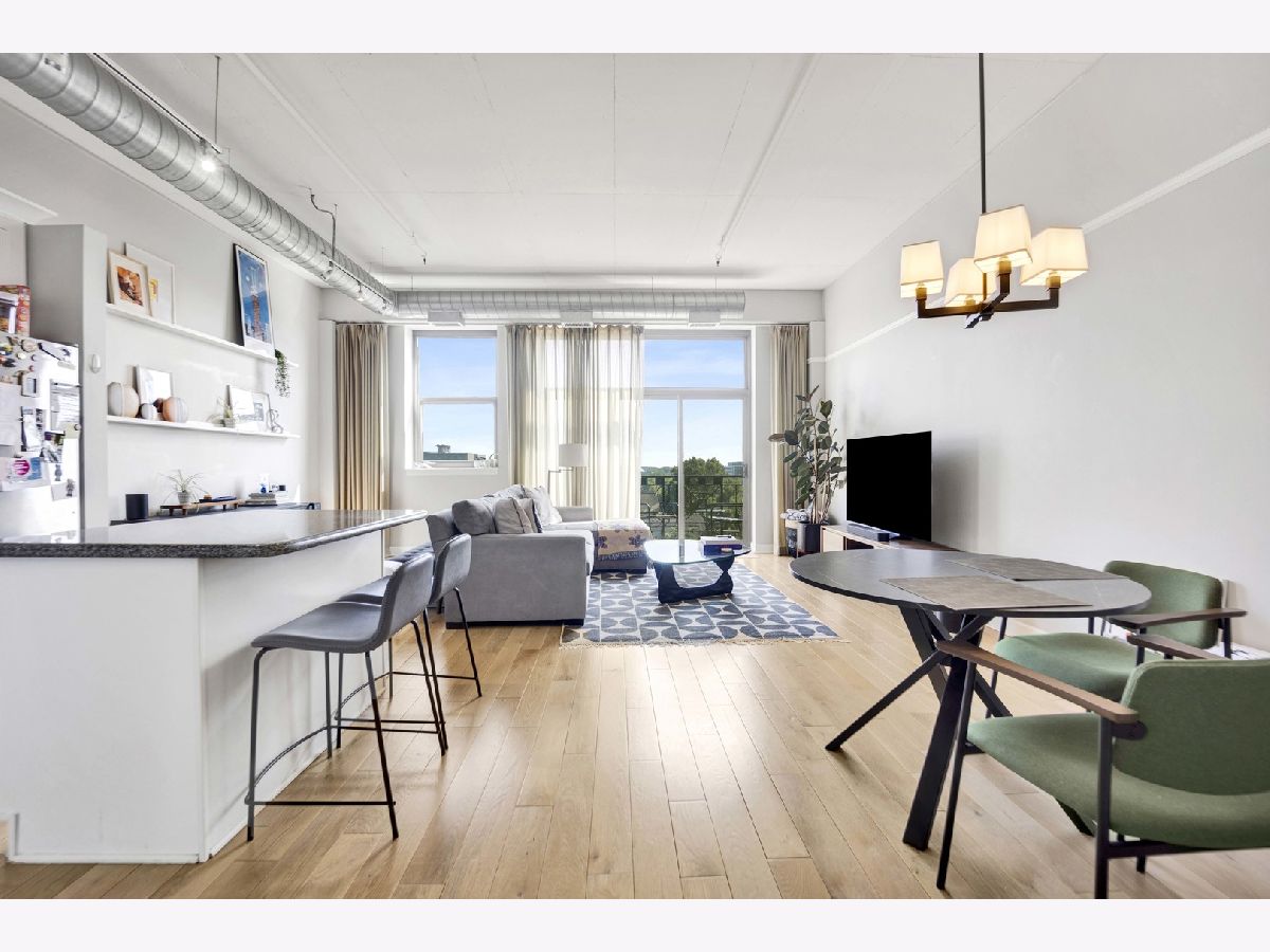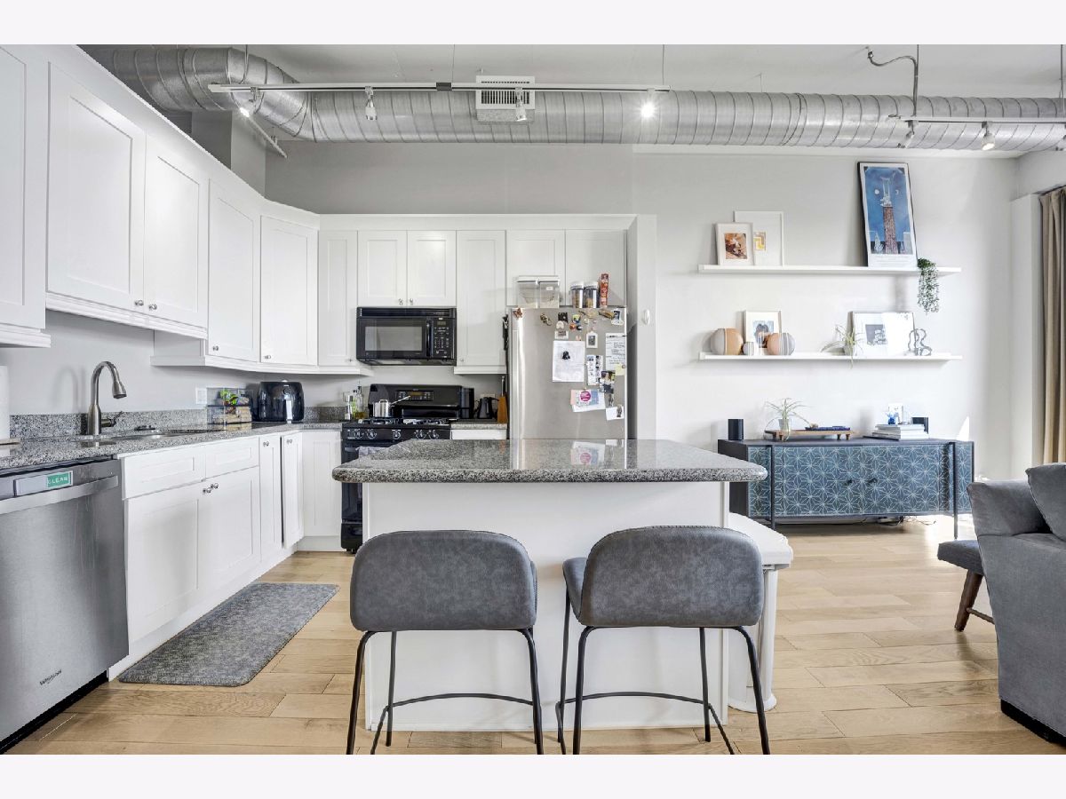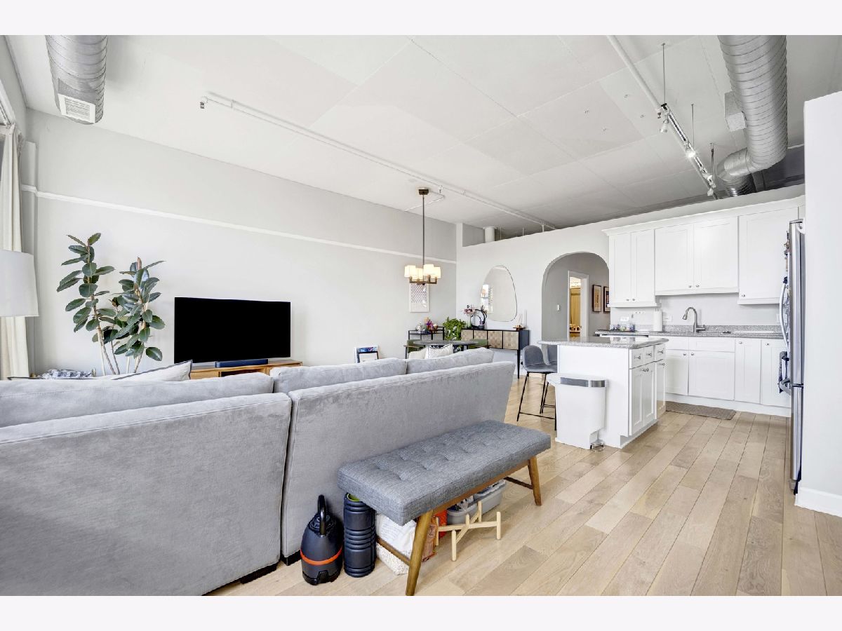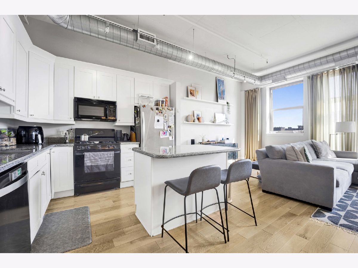 Sophisticated loft style living featuring bright, light filled, open concept living and impressive top floor city and skyline views! The exceptional architectural details that define this spacious home include a formal entryway, high ceilings and windows, a lovely, curved archway, French doors opening to the primary bedroom, two balcony's, hardwood flooring and an on trend stainless kitchen that includes granite counters and convenient island with seating. Bath features custom tiled tub/shower, double vanity and in unit washer/dryer. Excellent near west side location boasts great restaurants, shopping, transportation, entertainment and is close to Fulton River District, the West Loop, Greektown, University Village, Tri-Taylor. Attached garage parking available for an additional $200/month