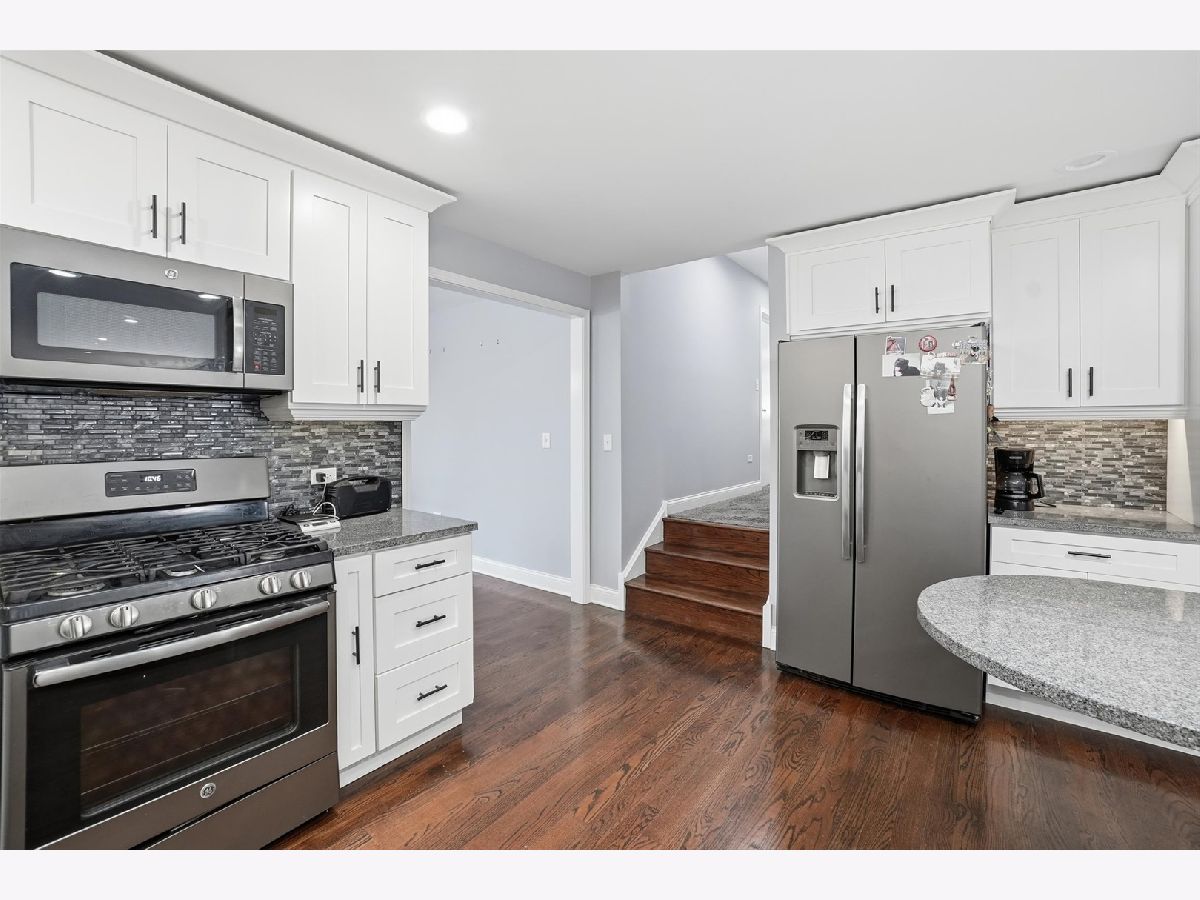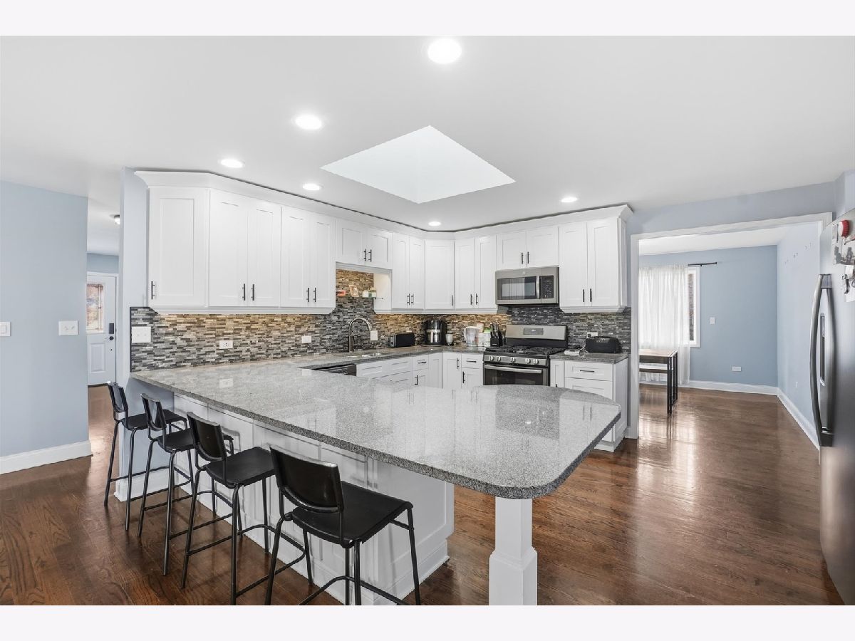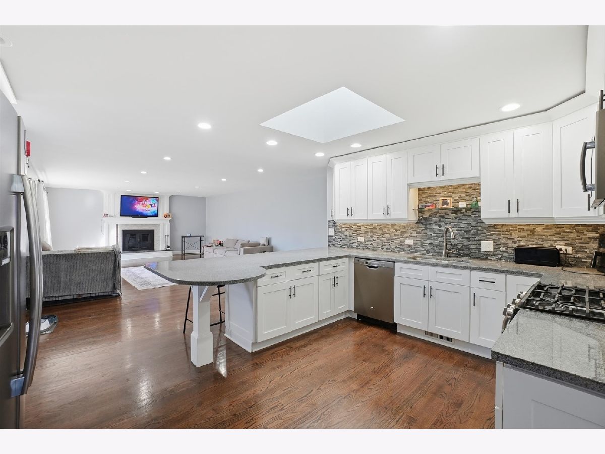 Beautiful 3-step ranch offering a spacious and functional layout. The main level features hardwood floors, a bright living room, and a formal dining area perfect for gatherings. The kitchen includes white cabinets, granite countertops, stainless steel appliances, and a tasteful backsplash that ties the space together. The large family room centers around a classic wood-burning fireplace with a white and granite surround, creating a warm and inviting atmosphere. Three full bathrooms provide comfort and convenience for the household. Additional highlights include a heated three-car garage with an epoxy floor, main floor laundry with washer and dryer, a finished basement offering extra living space, and a well-maintained yard with professional landscaping, and electronic storm shutters.