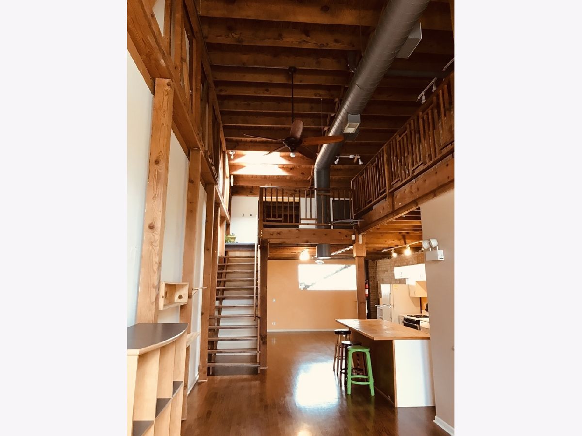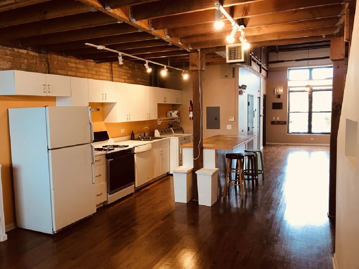 Spectacular 1,200 SQ FT, Live/Work Loft in Evanston with a Soaring 18' bow truss, curved, wood ceiling. This building is the first legal Live/ Work Condo space in Evanston and is zoned for both business and residential use, conveniently located near the corner of Oakton & Asbury. This spacious, 1200 SF flex residential/ work space features hardwood floors, a bubble skylight, an actual L-shaped loft mezzanine, 100 amp, 3 phase electric service, full white euro kitchen w/Island counter / cabinet, range, fridge and dishwasher, washer & dryer with an ADA washroom. In 2023 a new rooftop HVAC unit was installed - These live/work apartments were designed for artists and creative businesses or just the coolest apartment you ever had. You have to see it to appreciate that wow factor ambience. The amazing wooden bow truss roof is exposed, with 3" insulation on the outside and the huge front window is made of insulated glass. The condo is wired for phone & cable, but you have to order your own service from Astound or AT&T. The space is For Lease at a competive rental rate. One free parking space is included and our gracious neighbors allow us to park in their lot as well. At 1200 SF, this unit is the size of many 2 and 3 BR apartments. Tenants control their own utilities with their own accounts (gas and electric). Ideal for work from home, tech, office, yoga studio, art studio, general office or a spectacular residential apartment. A short walk to the CTA Purple Line, Pace Bus on Oakton or CTA Bus at Western & Howard.