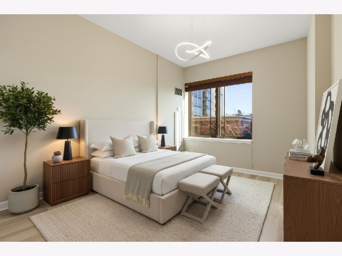 Experience city living at its finest in this beautifully designed 2-bedroom, 2-bath residence in sought-after Museum Park. This split-bedroom layout features diagonal hardwood floors, an open-concept living area, and floor-to-ceiling windows that fill the space with natural light. Enjoy your private east-facing balcony with views of the neighboring townhomes, museum, and clubhouse. The updated kitchen showcases maple cabinetry, luxury Quartz countertops, a newer stainless steel refrigerator, dishwasher, advanced water filtration system, a breakfast bar for casual dining, and a full pantry for extra storage. The spacious primary suite offers a professionally organized walk-in closet, room for a king-sized bed, and a luxurious bath with a soaking tub, frameless glass shower, and dual vanity. Residents enjoy full access to premium amenities, including 24-hour door staff, a fitness center, rooftop terrace, outdoor pool, clubhouse, clubroom, commissary, and on-site dry cleaning. Premier garage parking is included. Investor-friendly building in an unbeatable downtown location!