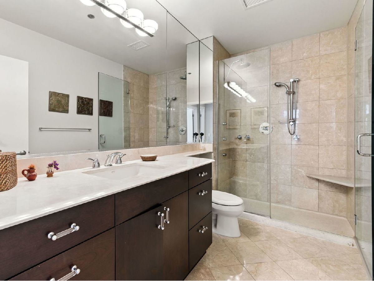 Welcome to Museum Park, tucked away in the Prairie District in vibrant South Loop. This southwest corner 3-bedroom, 2-bathroom condo is wrapped in floor-to-ceiling windows, filing the apartment with natural light and stunning views. Leading in the foyer you have double coat closets and opens to the spacious living space overlooking Prairie Avenue and Webster Park. Two large balconies bring the outdoors, inside and perfect for enjoying breathtaking sunsets, lake views and overlooking Solider Field. The kitchen features stainless steel appliances, built-in wine fridge, double oven, cherry cabinetry, stone countertops, and separate pantry. The primary suite offers private access to the west-facing balcony, a spa-like bath with a Jacuzzi tub, separate shower, water closet and walk in closet. One of the secondary bedrooms faces south with private access to the south facing balcony. The third bedroom, currently set up as a home office, is framed with glass French doors and has access to the west facing balcony. Ample closet space is found throughout, along with the convenience of two garage tandem parking spaces included. Located in a full amenity building with 24-hour door staff and just steps from museum campus, lakefront trails, parks, solider field, restaurants, and easy public transit. Tenant only pays for electric!