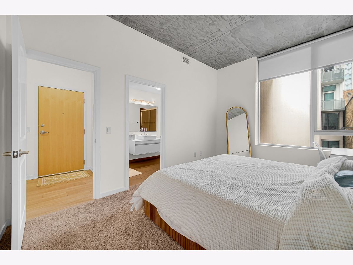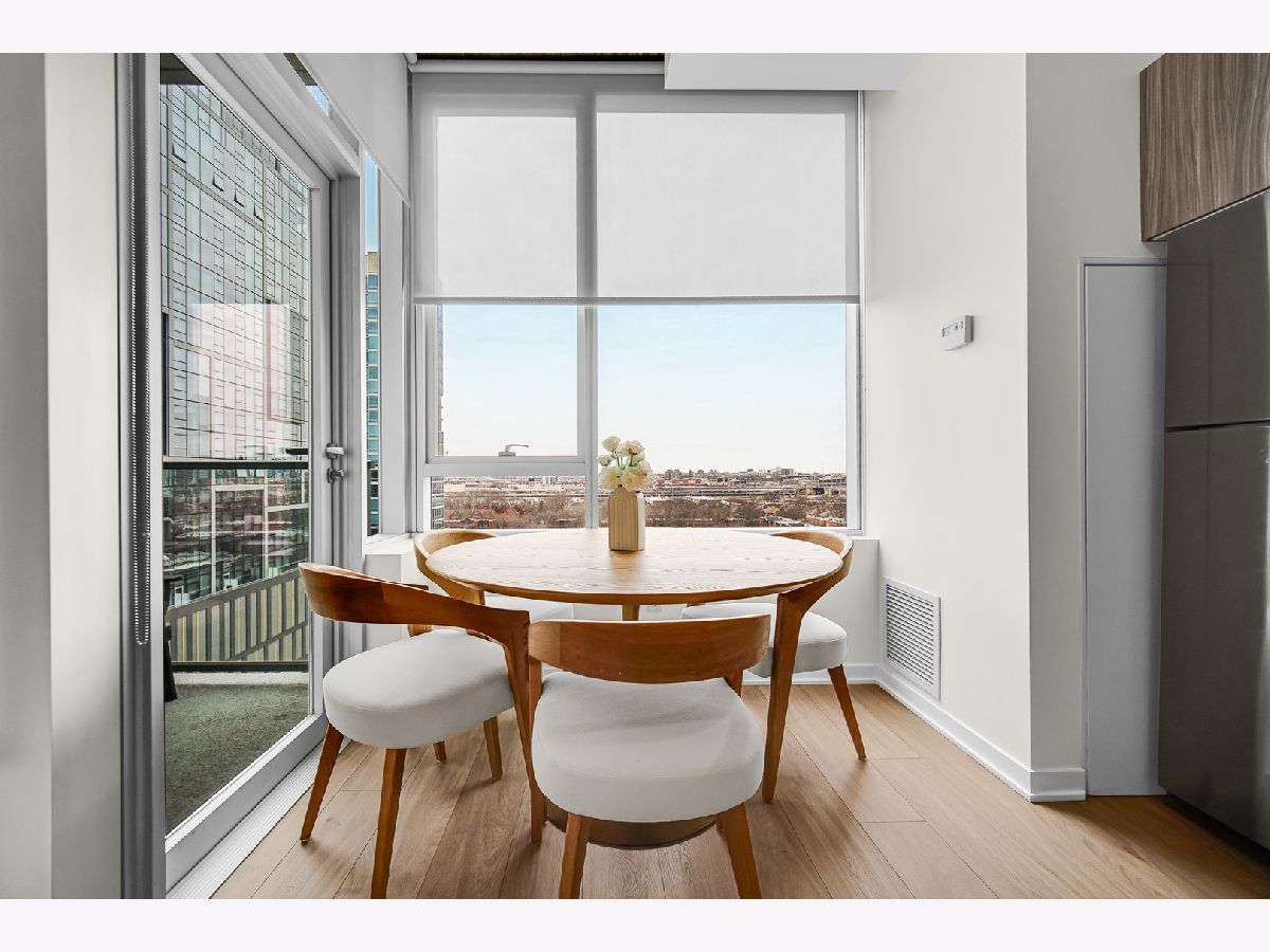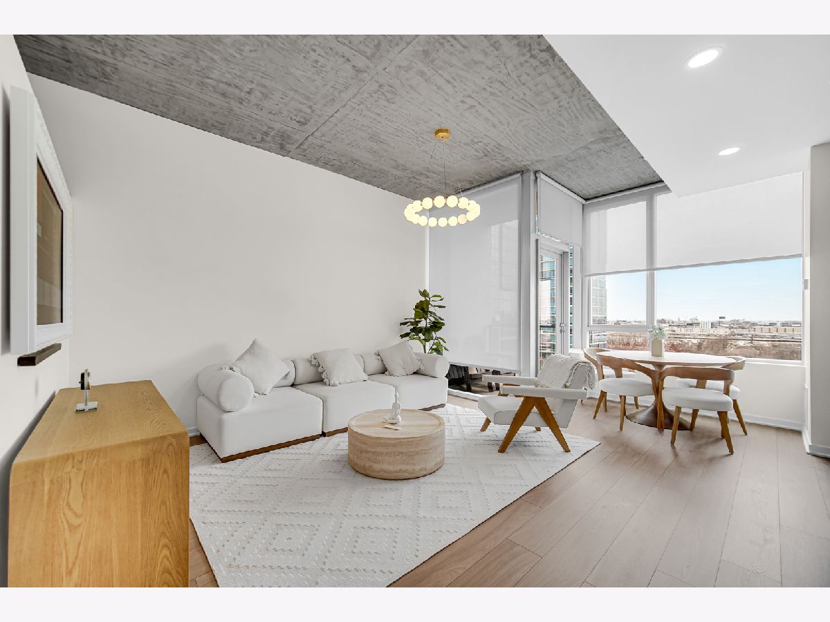 Enjoy elevated South Loop living in this beautifully updated 2-bedroom, 2-bath condo at 1345 S Wabash. This modern, LEED-certified residence showcases clean lines and contemporary finishes, including flat-panel cabinetry, quartz countertops, and stainless steel appliances. The open-concept kitchen flows seamlessly into a bright living and dining area, highlighted by floor-to-ceiling windows that flood the space with natural light and frame stunning city views. Step out onto your private balcony to take in expansive skyline vistas, with a glimpse of the iconic Willis Tower. The home features soaring 10-foot concrete ceilings, wide-plank flooring, and a thoughtfully designed split-bedroom layout for added privacy. The fully enclosed primary suite offers a spacious retreat with ample closet space and a sleek en-suite bath, while the second bedroom is perfect for guests, a home office, or additional living flexibility. Additional highlights include in-unit laundry, modern bathrooms with designer finishes, and generous storage throughout. Located in a well-maintained building with amenities including bike storage and door staff, and just moments from the lakefront, Grant Park, Museum Campus, public transit, and South Loop dining and shopping.