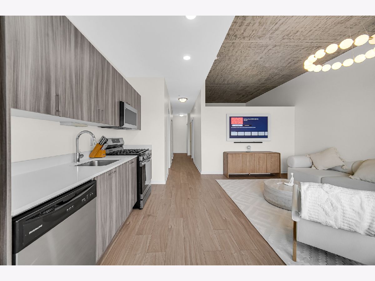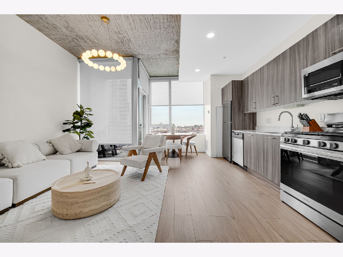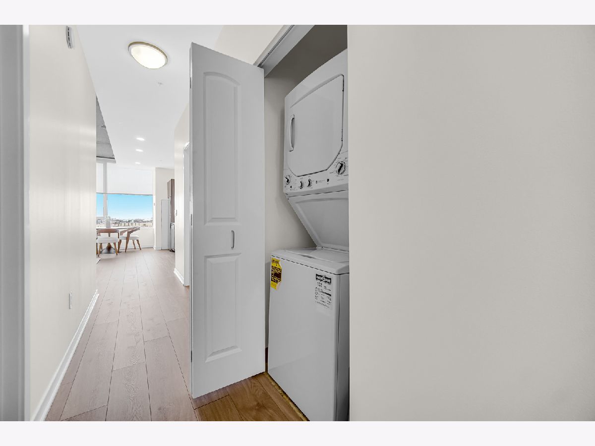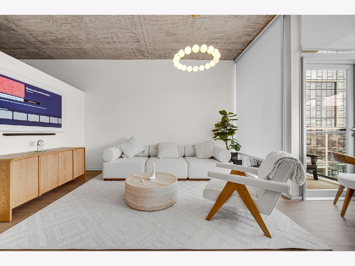 Enjoy elevated South Loop living in this beautifully updated 2-bedroom, 2-bath condo at 1345 S Wabash. This modern, LEED-certified residence showcases clean lines and contemporary finishes, including flat-panel cabinetry, quartz countertops, and stainless steel appliances. The open-concept kitchen flows seamlessly into a bright living and dining area, highlighted by floor-to-ceiling windows that flood the space with natural light and frame stunning city views. Step out onto your private balcony to take in expansive skyline vistas, with a glimpse of the iconic Willis Tower. The home features soaring 10-foot concrete ceilings, wide-plank flooring, and a thoughtfully designed split-bedroom layout for added privacy. The fully enclosed primary suite offers a spacious retreat with ample closet space and a sleek en-suite bath, while the second bedroom is perfect for guests, a home office, or additional living flexibility. Additional highlights include in-unit laundry, modern bathrooms with designer finishes, and generous storage throughout. Located in a well-maintained building with amenities including bike storage and door staff, and just moments from the lakefront, Grant Park, Museum Campus, public transit, and South Loop dining and shopping.