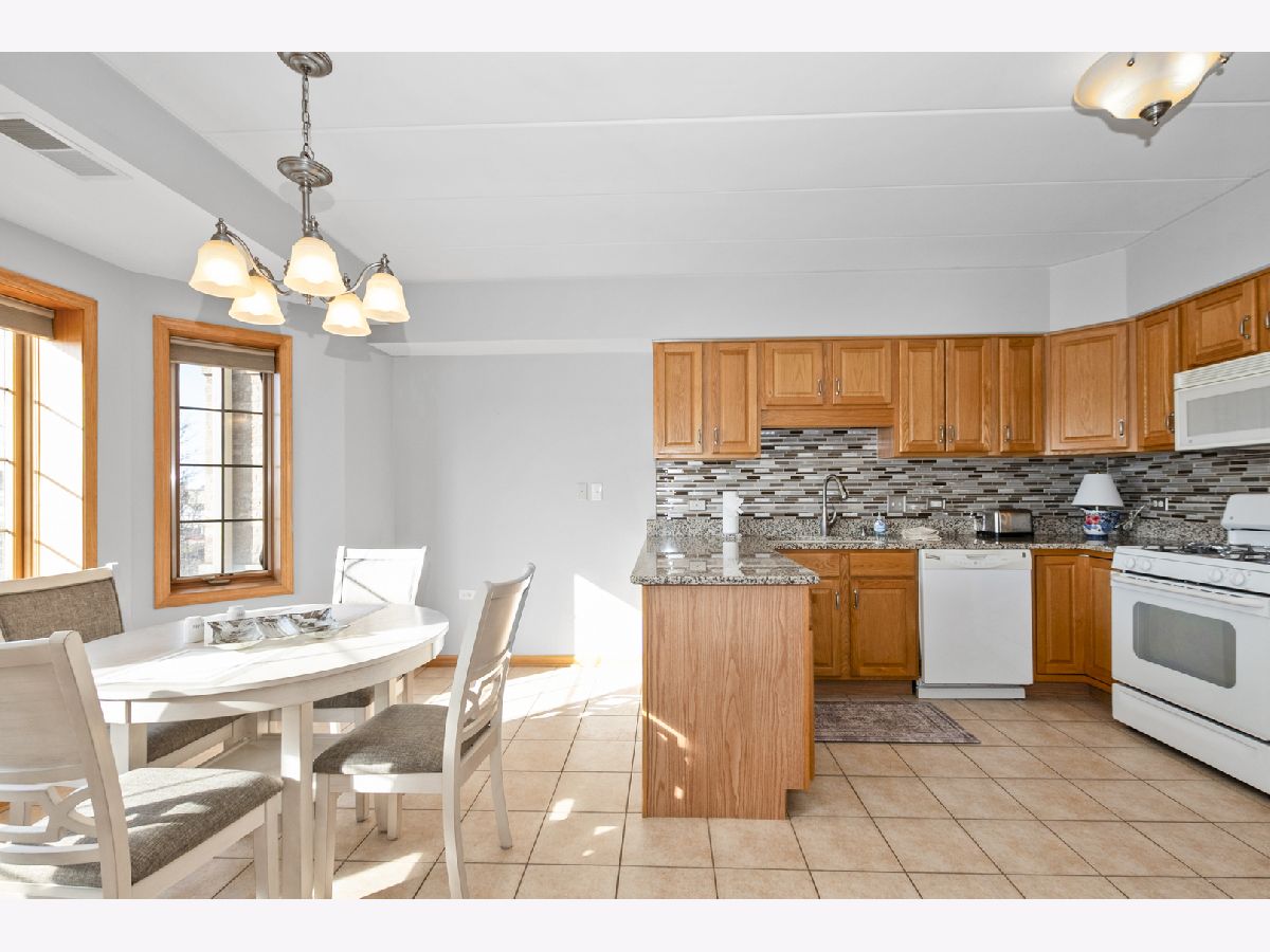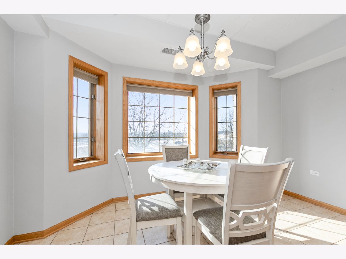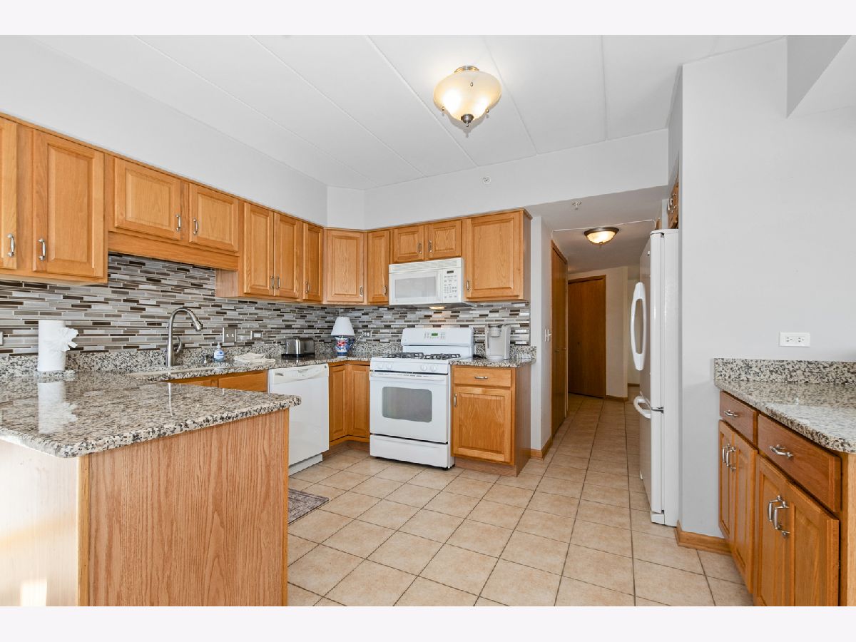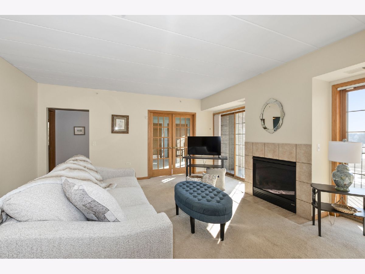 Welcome home to this beautiful and rarely available Condo in the heart of Homer Glen. Located in a beautiful all brick building. Highly sought after flexicore and elevator building. Recent updates include brand new windows in both bedrooms, new window treatments, and freshly painted in the living and dining room. As you step inside, you will immediately notice the spacious foyer. Open floor plan with over 1,600 sq ft of living space. Sprawling living room with lots of natural lighting features a beautiful fireplace and two sliding doors to the private balcony, great for your morning tea or coffee. The dining area is perfect for your dining room or office area. Spacious eat in kitchen features granite countertops, tile backsplash, many wood cabinets, while a pantry provides ample storage space. In unit laundry room with added cabinets for convenience. The large primary bedroom features a walk in closet and en suite bathroom. The beautiful primary bath features a whirlpool tub and separate shower. The second bedroom offers double closets and beautiful French doors. Full hallway bathroom perfect for guests to use. Enjoy the private balcony of the living room. 1 car parking spot located in the attached heated garage and storage closet included. Near I-355/I-55, Metra, shopping, and dining. Do not miss this amazing Condo!