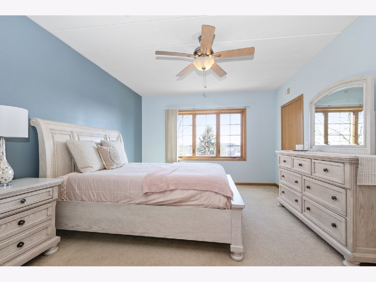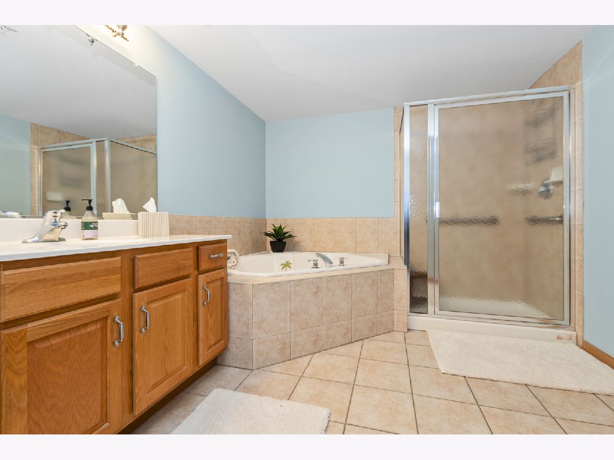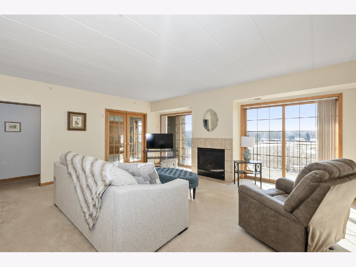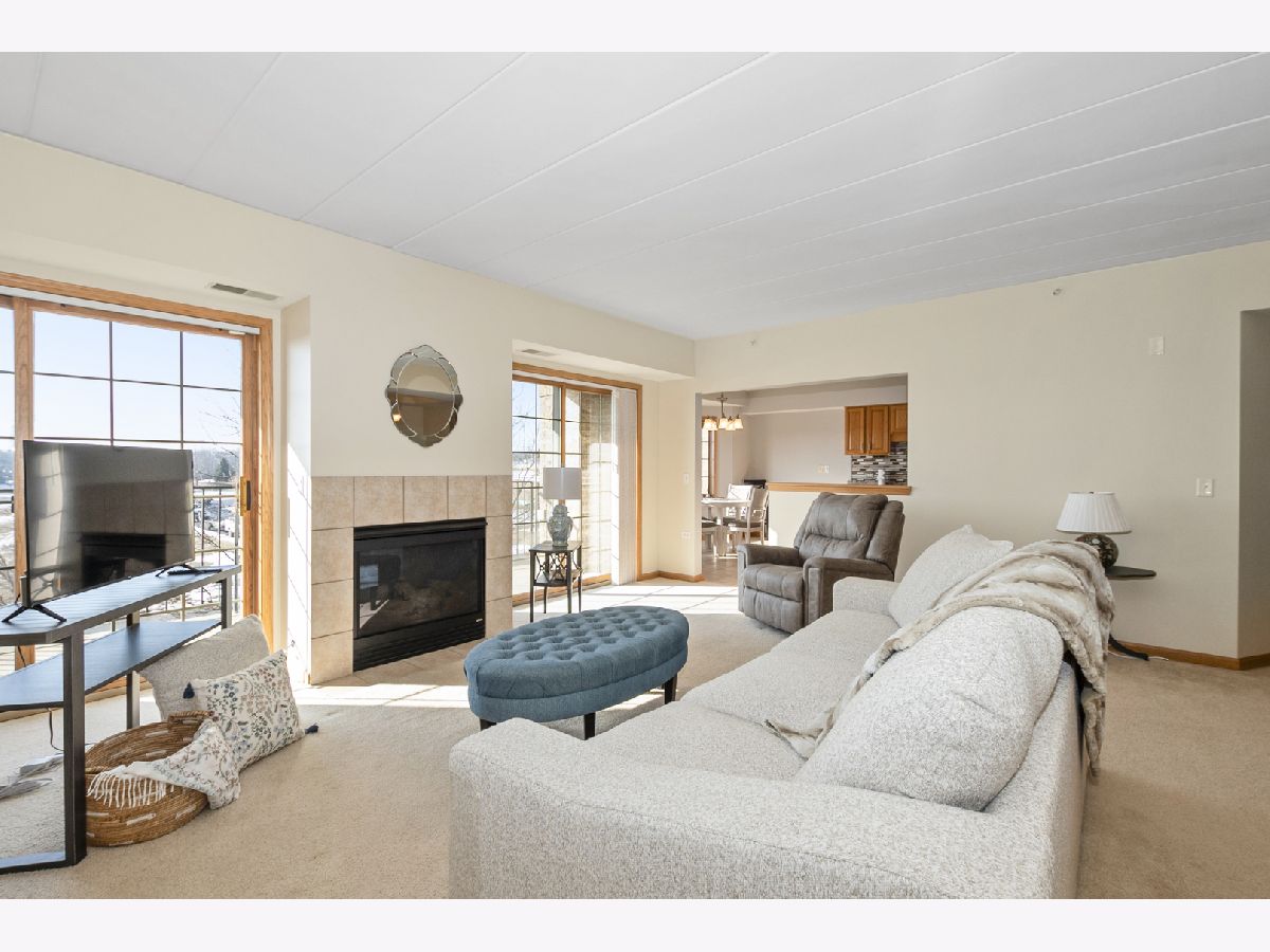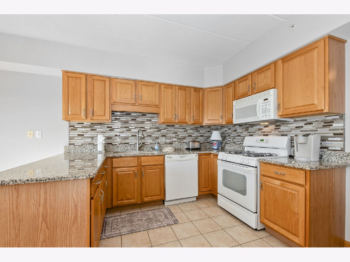 Welcome home to this beautiful and rarely available Condo in the heart of Homer Glen. Located in a beautiful all brick building. Highly sought after flexicore and elevator building. Recent updates include brand new windows in both bedrooms, new window treatments, and freshly painted in the living and dining room. As you step inside, you will immediately notice the spacious foyer. Open floor plan with over 1,600 sq ft of living space. Sprawling living room with lots of natural lighting features a beautiful fireplace and two sliding doors to the private balcony, great for your morning tea or coffee. The dining area is perfect for your dining room or office area. Spacious eat in kitchen features granite countertops, tile backsplash, many wood cabinets, while a pantry provides ample storage space. In unit laundry room with added cabinets for convenience. The large primary bedroom features a walk in closet and en suite bathroom. The beautiful primary bath features a whirlpool tub and separate shower. The second bedroom offers double closets and beautiful French doors. Full hallway bathroom perfect for guests to use. Enjoy the private balcony of the living room. 1 car parking spot located in the attached heated garage and storage closet included. Near I-355/I-55, Metra, shopping, and dining. Do not miss this amazing Condo!