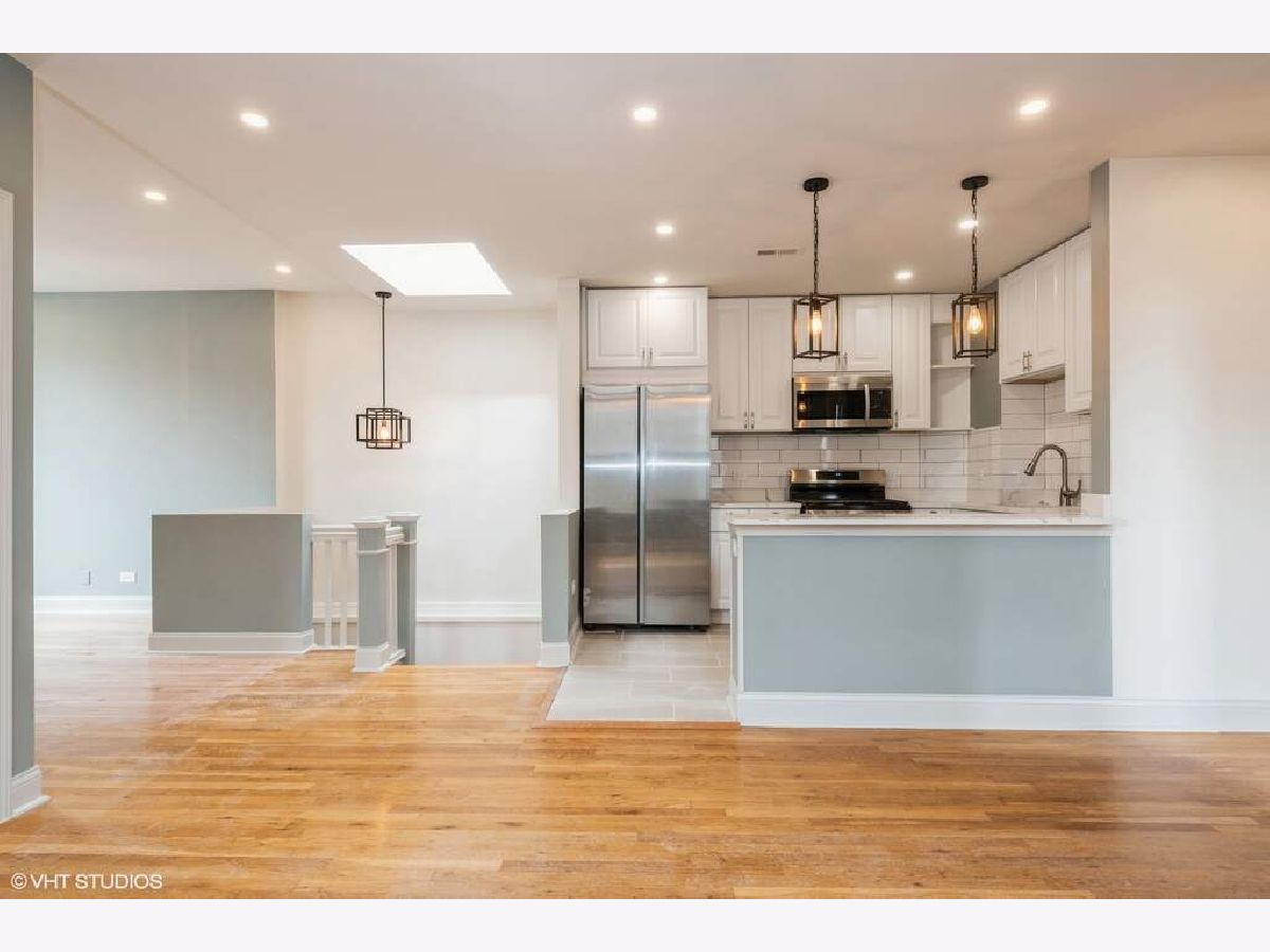 Available April 01. Stunning totally rehabbed unit located in the Wrigleyville/Lakeview area, home features open layout, great natural light, central air, central heat, in-unit washer and dryer high efficiency front loaders. Kitchen has new appliances, new cabinetry, quartz countertops, gleaming hardwood floors throughout, 3 spacious bedrooms will fit queen size beds, 2 full baths, enclosed heated porch, private sundeck for entertaining and barbecuing, Steps to Wrigley Field, Southport Corridor, Lake Michigan, shopping, public transportation, parking extra