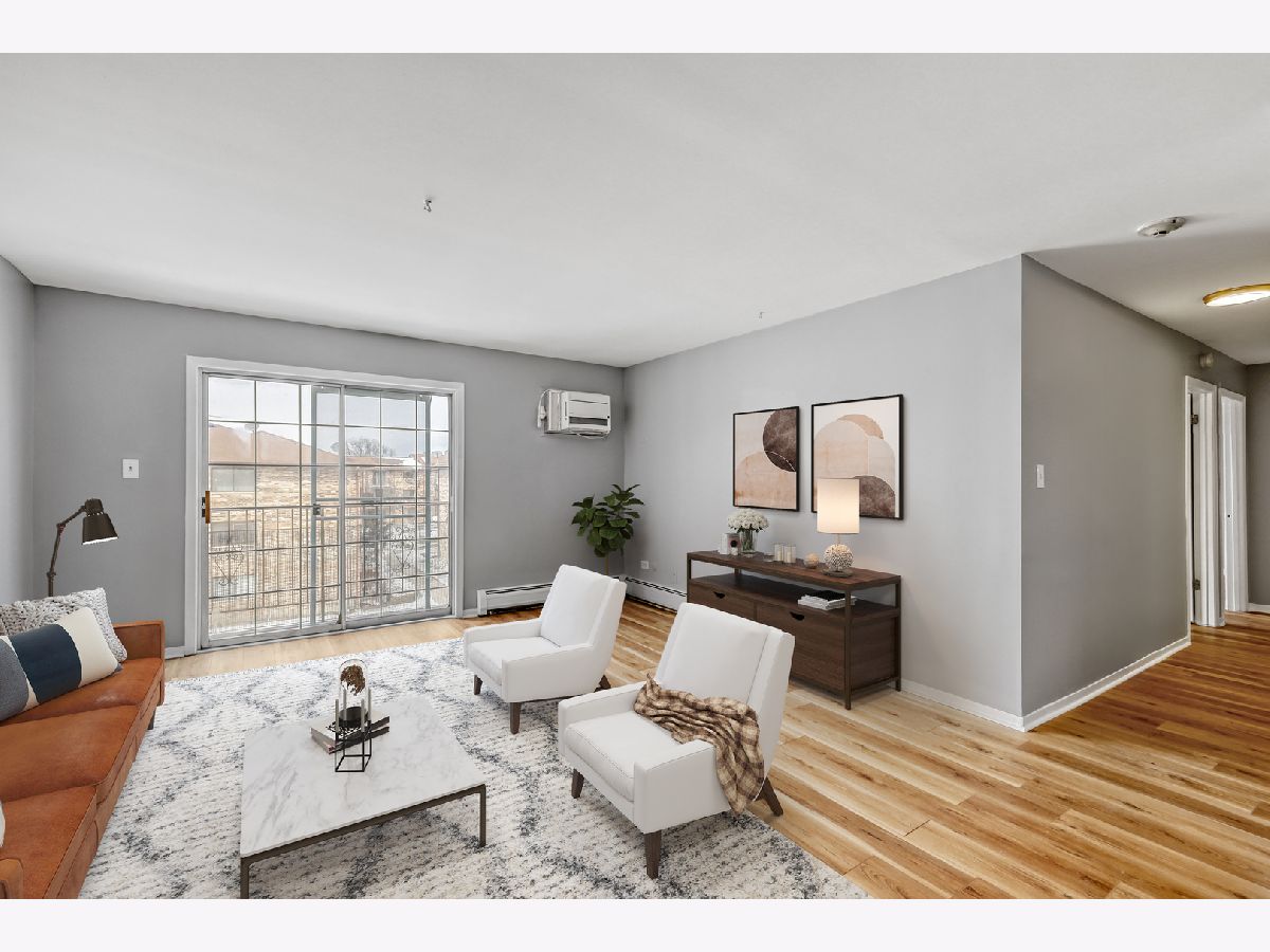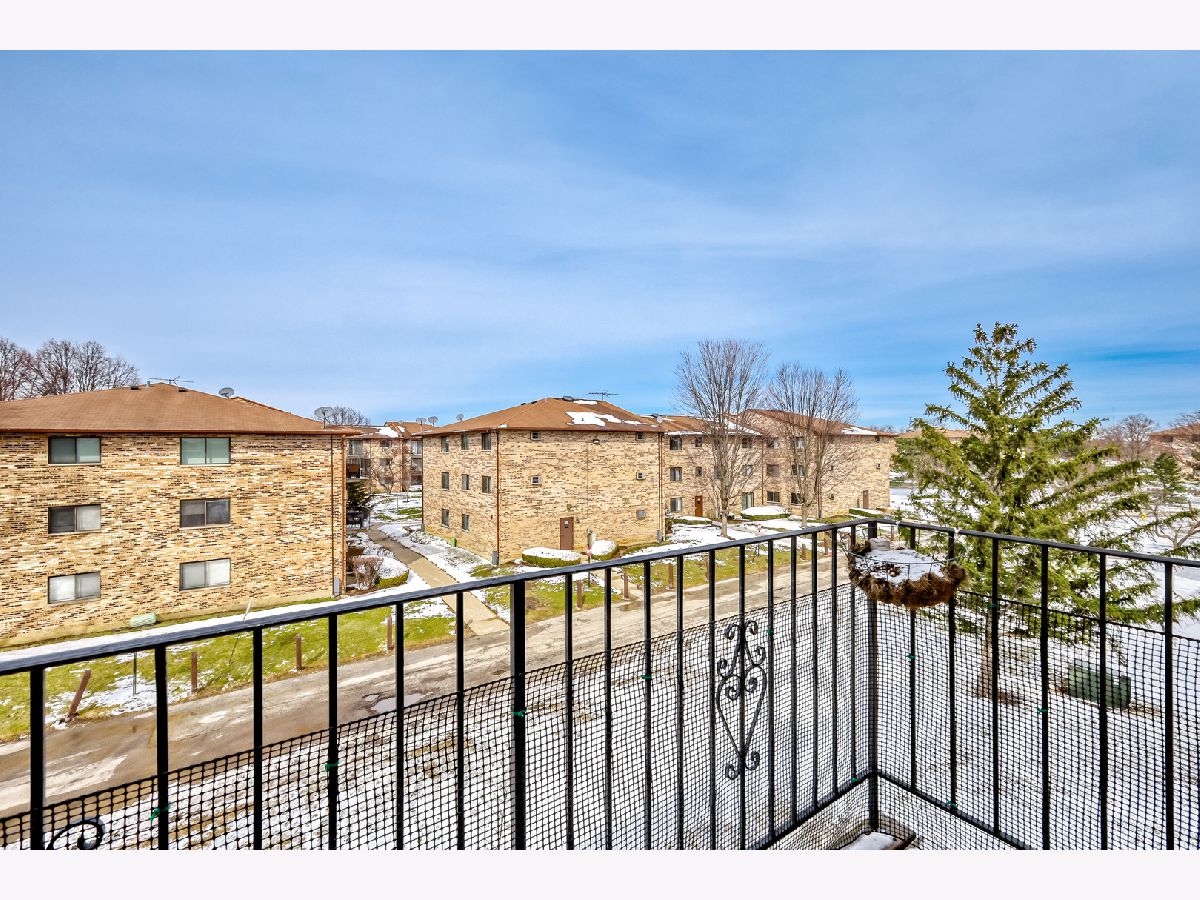 Spacious and beautifully updated top-floor 2BR/1.5BA condo featuring the largest floor plan in the community! This move-in-ready home offers brand new luxury vinyl tile flooring, a fully updated kitchen, renovated bathrooms, and numerous modern upgrades throughout. The thoughtful layout includes two true full-size bedrooms, one full bathroom, and an additional half bath. Enjoy a bright, open living space with fresh paint, new doors and baseboards, and a refreshed kitchen complete with appliances. The primary bedroom features a generous walk-in closet, while the private balcony overlooks Carolshire Park, providing a peaceful outdoor retreat. The professionally managed building offers excellent value with the HOA covering heat, water, exterior maintenance, common insurance, lawn care, and snow removal.