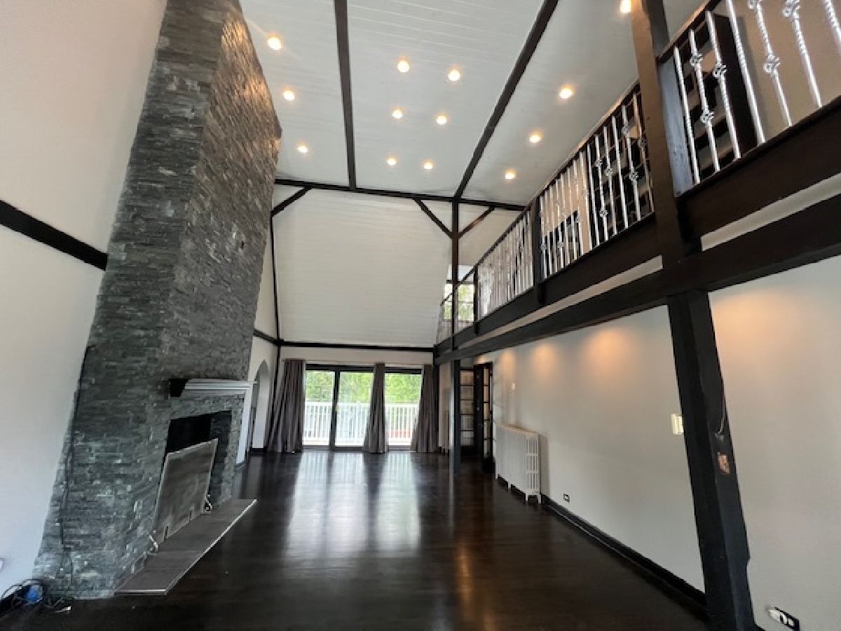 Tucked serenely adjacent to the forest preserve and horse trails, 5 private Mettawa acres boast character in this 6 bedroom, 5 1/2 bath custom renovated home with 5-stall barn featuring wash area, tack room, hay loft and skylights... all adjacent to the pond! Heated porcelain wood-look tile sprawls throughout the main level with open gourmet, custom kitchen, stainless steel appliances include Viking 6 burner plus grill and double oven, Bosch dishwasher, separate full sized freezer and refrigerator, Sharp automatic pull out drawer microwave and additional warming drawer below. Sleek tiles surround 4 dramatic gas start fireplaces throughout the home. The main level office or 6th bedroom hosts its own bath plus there's an additional bathroom for guests. Hardwood abounds on the second level Grand Salon with overhead loft/balcony, 22+ ft. ceiling and enchanting views to the gardens and pond from the walk-out balcony. Rotunda silo towers up to infinity with surrounding shelves creating dramatic character! Heated floor and steam sauna adorn the primary bathroom ensuite while the primary bedroom hosts cozy gas-start fireplace, organizer walk-in closet and walk-out to the backyard balcony with quiet sunny and shaded lounge or dining area. Second bedroom boasts private bath and walk-out to the backyard balcony sprawling across the length of the home. Third bedroom enjoys its own bath and private balcony overlooking greenery and the trail to the forest preserve. Laundry area is conveniently located adjacent to the bedrooms on the second level. Two large bedrooms view nature from the third floor with spacious jacuzzi and separate shower ensemble. The landing welcomes lounging or work-out activities while the loft/balcony overlooks the Grand Salon with ideal TV or movie viewpoint. Although conveniently located near shopping, expressways and transportation, this plush estate ambiance lives amidst peaceful nature. 5 horses allowed! Great opportunity to rent with option to buy!