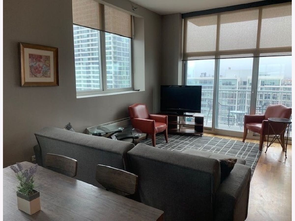 FULLY FURNISHED UNIT. JUST BRING YOUR BAGS! PARKING OPTION. BEAUTIFUL CORNER UNIT WITH A VIEW. DELUXE 1 BED/1 BATH IN THE MID-SOUTH LOOP. APPROX 900 SQUARE FEET, WITH GREAT LIGHT AND FLOOR TO CEILING WINDOWS, PRVT BALCONY w/BISTRO TABLE/2 CHAIRS, FITNESS ROOM, PATIO, BBQ, FRONT DESK ATTENDANT. ALL UTILITIES INCLUDED EXCEPT ELECTRIC AND GAS. SECURED GARAGE PARKING SPACE INCLUDED (OR TENANT MAY RENT SPACE w/OWNER APPROVAL TO FELLOW RESIDENT ONLY). 3 BLOCKS FROM MARIANO'S, JEWEL/OSCO, DOG PARK, LAKE MICHIGAN, GRANT PARK. DRY CLEANING NEARBY, SMALL DOG FRIENDLY (1 pet please). ALL NEW LINENS INCLUDED, LAUNDRY IN UNIT, FULLY STOCKED KITCHEN AND BATH. SHORT RIDE TO LOOP! MOST UTILITIES INCLUDED. TENANT PAYS GAS, ELECTRIC ONLY. APPLICATION LINK ON REQUEST.