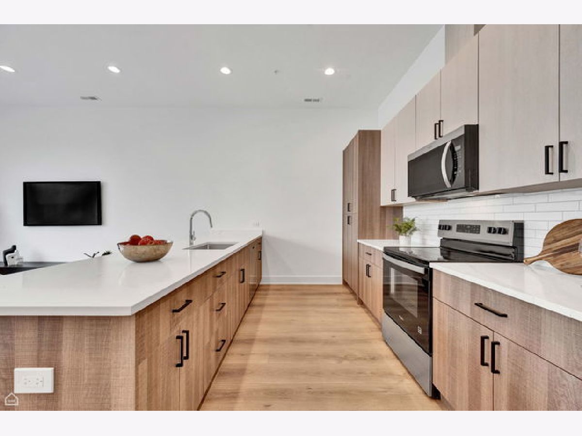 This brand-new construction PENTHOUSE residence offers a 3-bedroom, 2-bath layout that perfectly blends modern style with everyday functionality. Soaring 10-foot ceilings, floor-to-ceiling windows, and wide-plank white oak flooring flood the home with natural light, creating an elevated, airy feel. The sleek contemporary kitchen is designed to impress with two-tone cabinetry, quartz countertops, matte black hardware, and a full stainless steel Whirlpool appliance package-ideal for both everyday cooking and entertaining. The primary suite features a large closet and a spa-inspired bath with dual vanities, an oversized walk-in shower, and chic tilework. Two additional bedrooms provide versatile space for guests, a home office, or a fitness area. The home is equipped with full in-unit laundry (side-by-side washer and dryer), a smart thermostat, video intercom, and energy-efficient appliances. Step out onto your private balcony to enjoy a refreshing dose of outdoor living. Set within District Haus, a professionally landscaped community of 72 new construction homes, residents also enjoy optional exterior parking spaces. Perfectly positioned just steps from Rush, UIC, the VA Medical Center, and top universities-and with quick access to the Blue Line, I-290, the West Loop, and Little Italy-this penthouse delivers the ultimate combination of comfort, convenience, and connectivity.