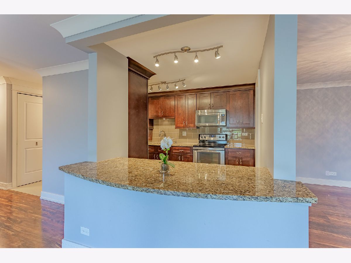 EXPECT TO BE IMPRESSED!! TOTALLY UPDATED UNIT IN DANA POINT! GORGEOUS 42" CABINETS WITH STAINLESS STEEL APPLIANCES, BEAUTIFUL GRANITE COUNTER TOPS WITH BREAKFAST BAR, CERAMIC TILE IN KITCHEN AND FOYER, LUXURIOUS PRIMARY BEDROOM & EN-SUITE BATHROOM WITH WALK-IN CLOSET, UPDATED 2ND BATH WITH JACUZZI TUB, LIVING ROOM WITH BREAKFAST BAR EXTENDS FROM KITCHEN, 2 SLIDING PATIO DOORS TO BALCONY WITH BEAUTIFUL VIEW, ENGINEERED HARDWOOD FLOORS THROUGHOUT LIVING ROOM, DINING AND BEDROOMS, NEWER WINDOWS & PATIO DOORS, WITH PLENTY OF NATURAL LIGHT, HEATED GARAGE INCLUDED IN PRICE, POOL, EXERCISE ROOM, CLOSE TO DOWNTOWN ARLINGTON HEIGHTS & MOUNT PROSPECT METRA TRAIN, A MUST SEE!!