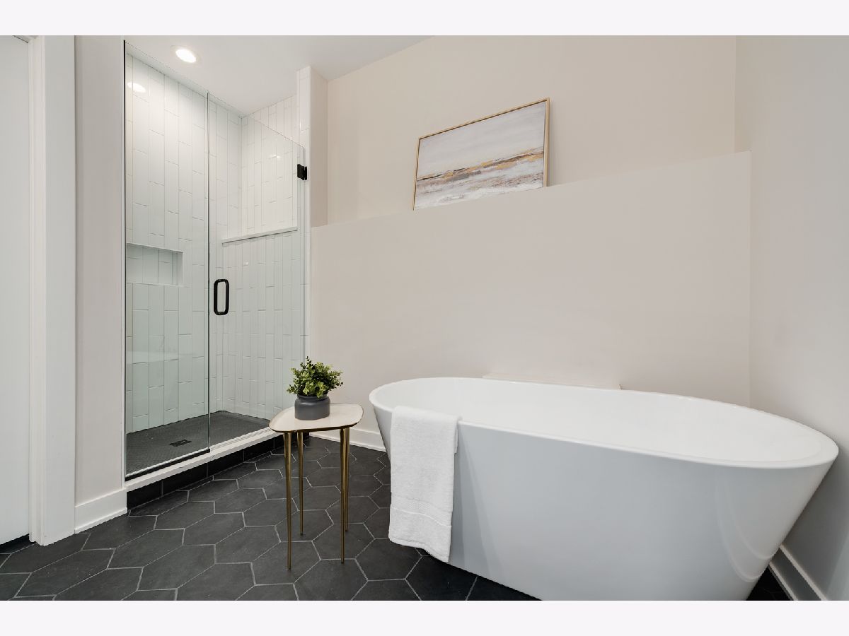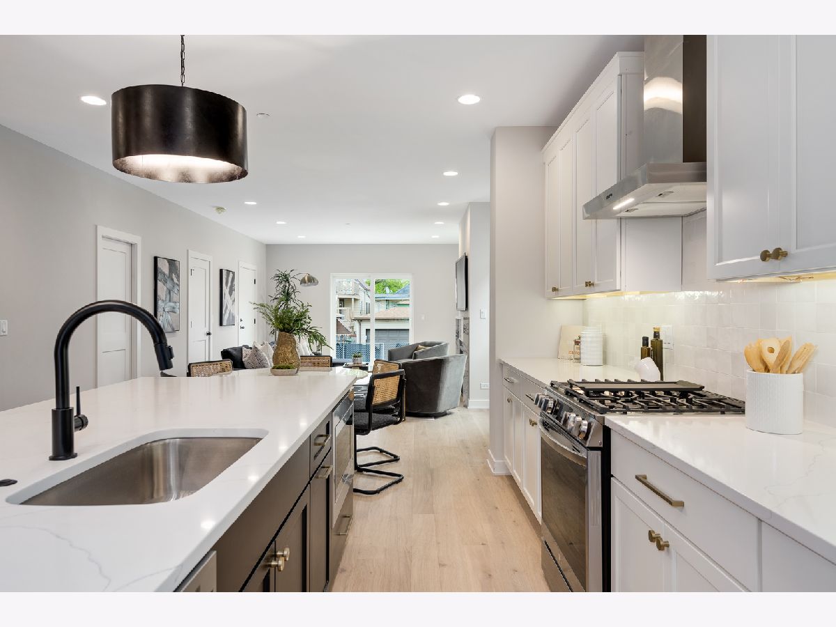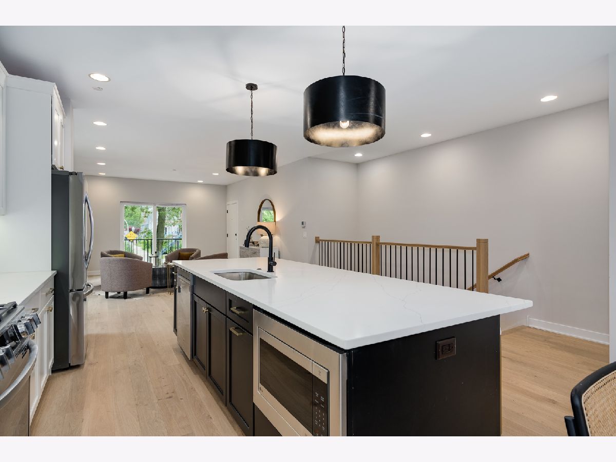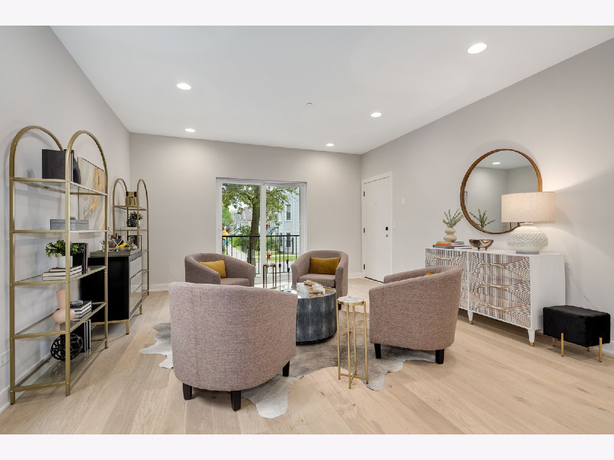 Logan Square Duplex Unit has been professionally designed with top-of-the-line finishes and wide-open floor plans flooded with natural light.This floor plan lives like a single family home: formal living, dining room and a kitchen with a massive island which opens up to the family room including a gas fireplace. 3 bedrooms plus den and 2.5 baths. The den is functioning as a "flex room" depending on your needs (2nd family room, gym, home office or playroom). This duplex down has both front and rear balconies perfect for al fresco dining. The primary bedroom features an ensuite bath with a double vanity, separate shower and soaking tub along with a massive walk-in closet. Units feature white oak HDWD floors on the main living area. The kitchen has custom cabinetry and Calacatta quartz countertops. Appliance package is stainless steel LG. The bathroom fixtures are Delta Trinsic in matte black and chrome finish. All closets are professionally designed. Amazing location close to many Logan Squares hottest restaurants including Giant, Scofflaw, and Parson's Chicken. As well as close proximity to iconic Humboldt Park, one of Chicago's largest public green spaces, filled with lagoons, tennis courts, and inland beach, a field house, baseball fields and bike paths. Electric Vehicle Charging Ready.