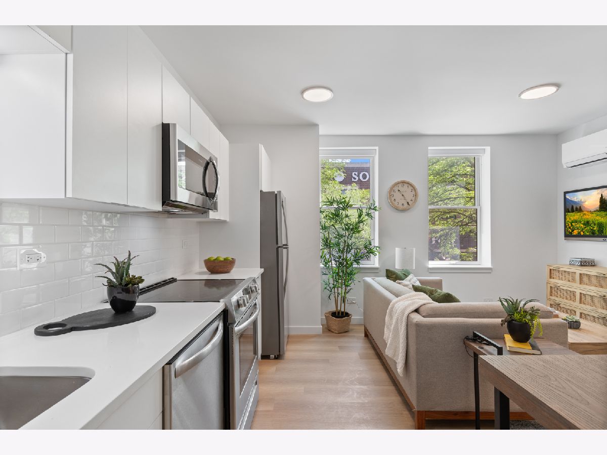 This beautiful, vintage elevator building has been completely restored, with updated apartments and a modern lobby complete with lounge seating and game roomThis 1 bed features in-unit laundry, stainless steal appliances, hardwood floors and a bright/modern aesthetic. It's conveniently located next to the Paulina Brown line stop and around the corner from a public plaza with street art and outdoor tables. A quick walk East and you are at the Southport Corridor shops and restaurants and to the West - the shops and dining of Roscoe Village. It is the perfect location for residents looking for an urban lifestyle. **Photos are of model unit**