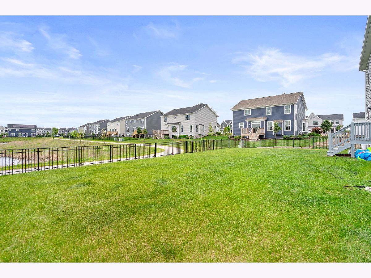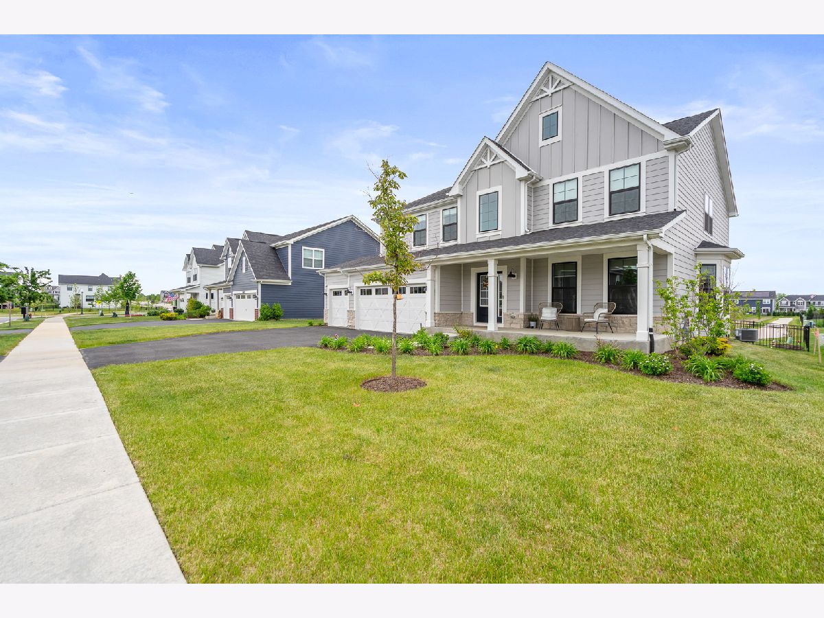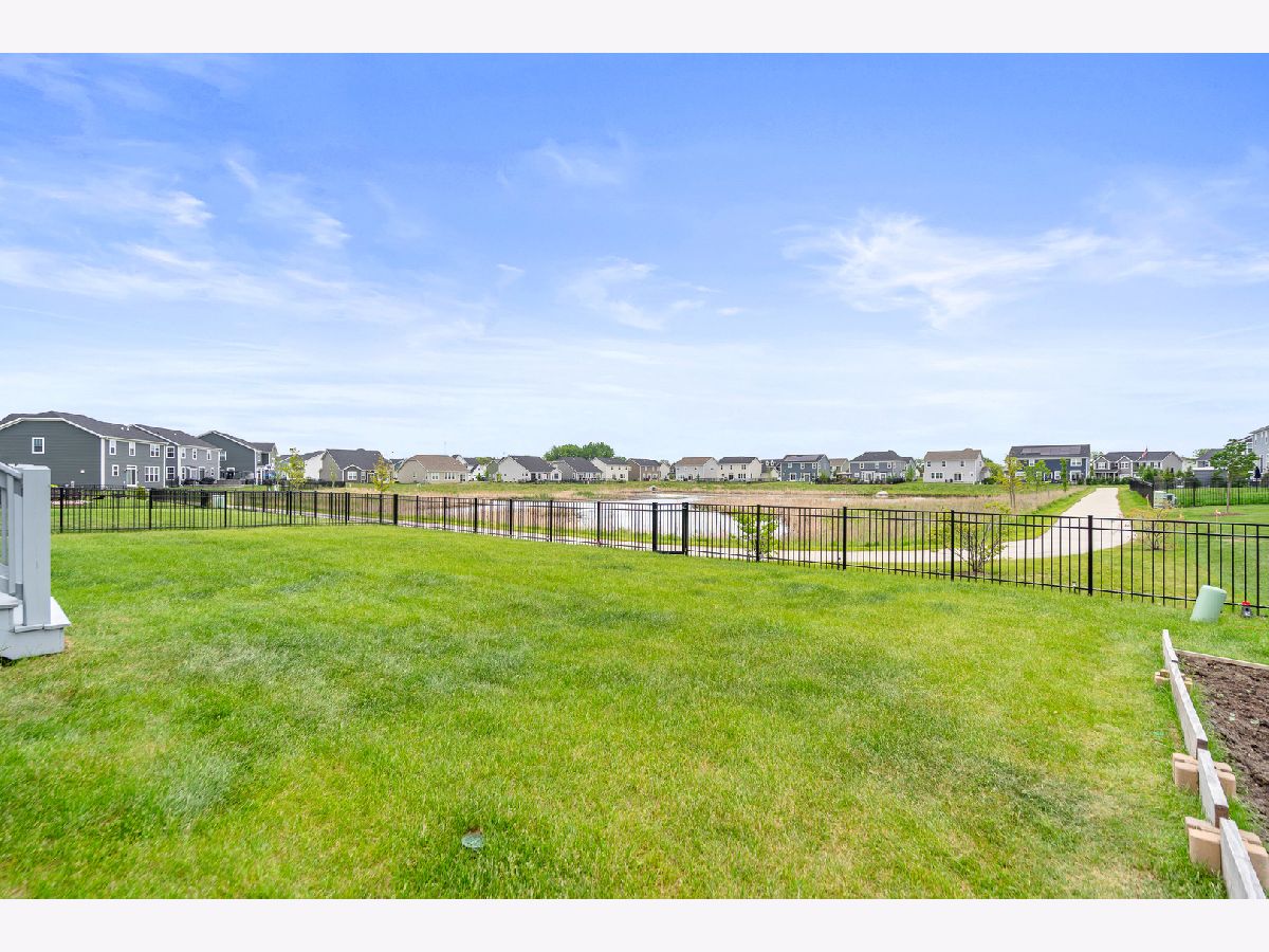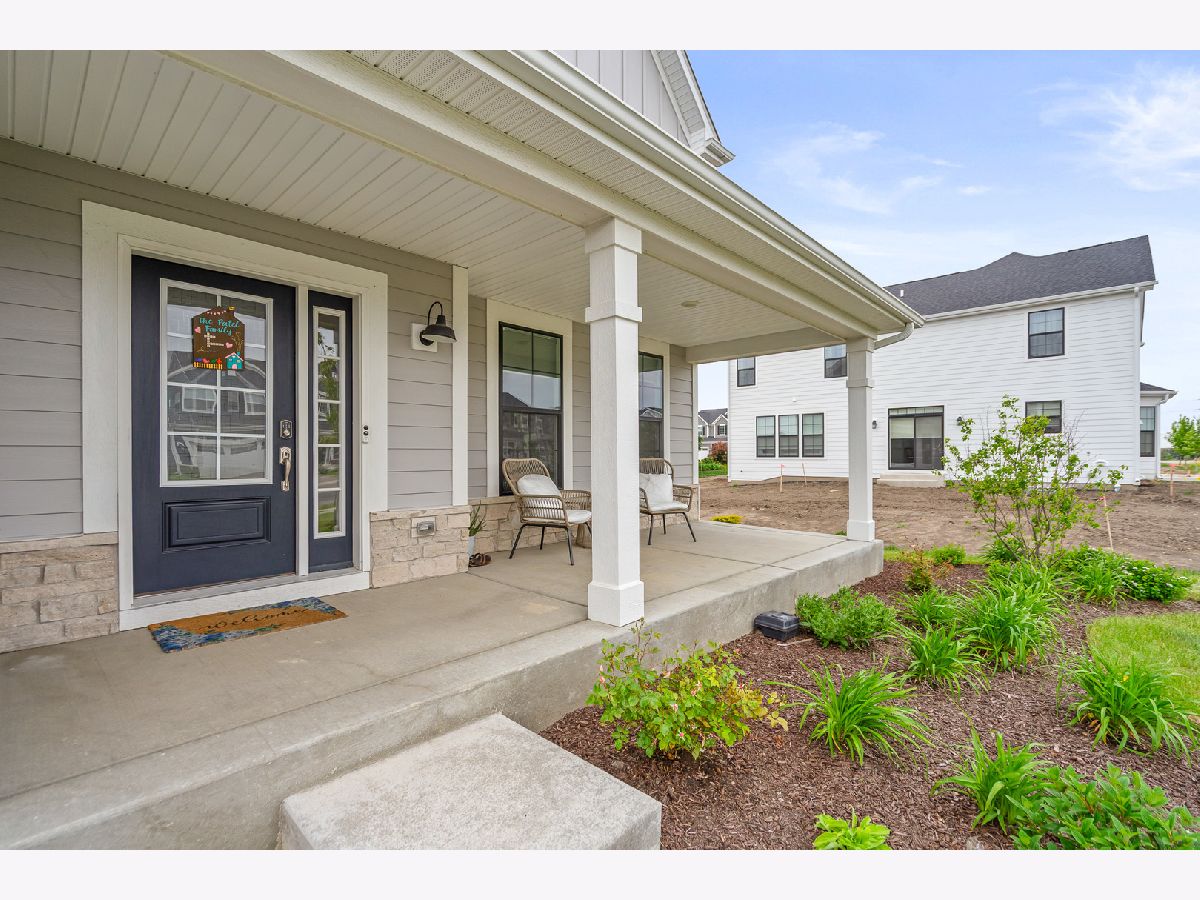 Discover this nearly new farmhouse-style upscale home perfectly situated on a premium lot overlooking a peaceful pond and scenic walking path in the highly sought-after Silo Bend subdivision. From its inviting covered front porch and beautiful stone front detail to its thoughtfully designed interior, this home offers both style and functionality. Step inside to find a light-filled, open-concept layout featuring a gourmet kitchen with 42-inch white cabinets topped with crown molding, sleek white quartz countertops, high-end stainless steel appliances (including a premium refrigerator), a large center island, and a spacious pantry. The adjoining breakfast area opens to the backyard, where you can enjoy picturesque views of the pond and trail. The expansive family room is ideal for gatherings, while the formal dining room with bay window sets the stage for entertaining. A versatile flex room with double door entry offers the perfect space for a home office, playroom, or formal living room. Convenience is key with a first-floor mudroom and laundry room (complete with utility sink) and a spacious 3-car garage. A full basement with rough-in plumbing awaits your finishing touches. Upstairs, you'll find a generous loft area and a luxurious primary suite featuring a double-door entry to the spa-like bath with double raised quartz vanities, an oversized walk-in shower, water closet, and a walk-in closet. The second bedroom also includes its own walk-in closet, and the hall bath offers a double quartz vanity perfect for sharing. This home checks all the boxes-prime location, upscale finishes, and a timeless farmhouse design. Don't miss the chance to make it yours!
