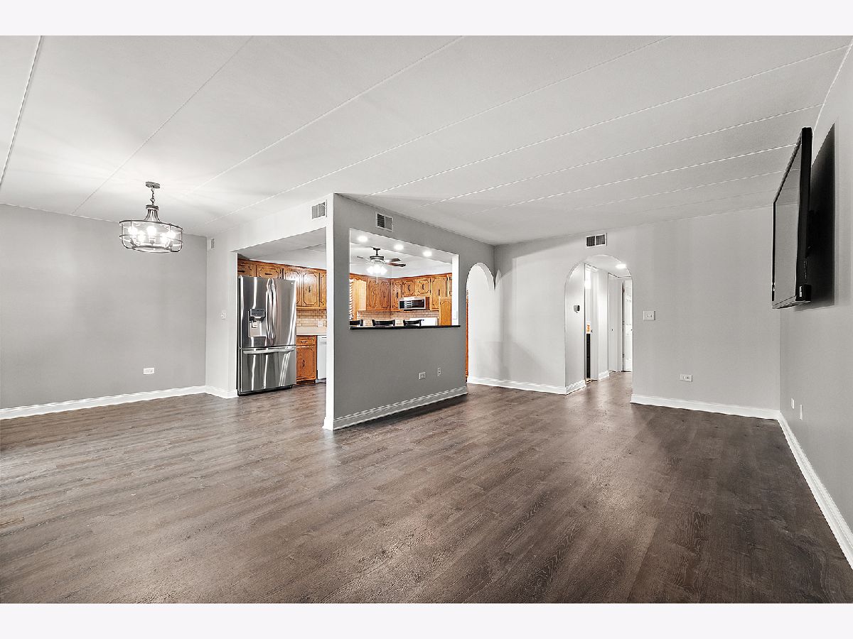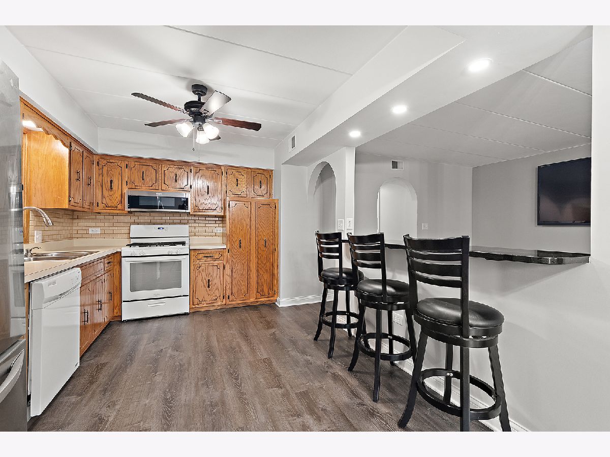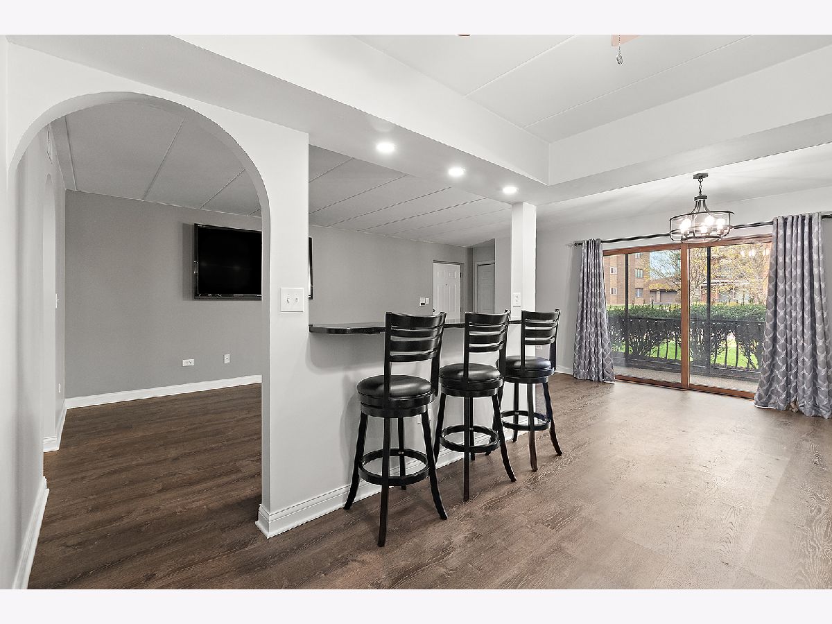 Beautifully updated 2-bedroom, 2-bath 1st floor condo for rent in the heart of Tinley Park. This recently remodeled unit offers a bright open-concept layout featuring a large living room with a 75" wall-mounted TV included. The adjoining dining area provides direct access to a screened-in porch, ideal for enjoying your morning coffee or evening unwind. The kitchen is equipped with some stainless-steel appliances, and a seated breakfast bar with granite countertop, that overlooks the living room. The primary bedroom features double closets and a newly remodeled private full bath. A generously sized second bedroom, updated full hall bathroom, and a laundry room with utility tub complete the interior. Additional highlights include vinyl plank flooring, modern lighting, new windows, and 6-panel doors throughout. Enjoy the convenience of a 1-car garage plus an additional exterior tandem parking space. Located just steps from Centennial and McCarthy Parks offering playgrounds, walking paths, a fishing pier and much more. Close to shopping, dining, the Tinley Park Recreation Center, and just minutes from the Metra station and downtown Tinley Park. $49 Application Fee for all Tenants 18+, 740 Credit Score, Income 3x Monthly Rent, No Pets, No Smoking Unit, No Co-Signers, Rent Includes Snow Removal, Landscaping, Scavenger Service. Renter is responsible for Gas, Electric and Water.