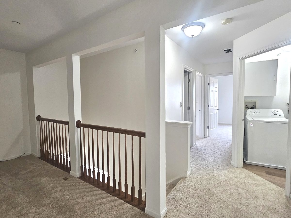 Welcome to this updated 3-bedroom townhome with a spacious loft in the desirable Bristol Bay community. Featuring 1.5 baths and 1,551 sq ft, this move-in-ready home offers brand-new luxury vinyl plank flooring, fresh paint, and an open-concept layout perfect for everyday living. The kitchen includes cherry cabinetry, black appliances, and ample counter space, with a dining area that opens to a private patio overlooking scenic farmland. Upstairs features three generously sized bedrooms, a versatile loft ideal for a home office or additional living space, and convenient second-floor laundry. Enjoy an attached two-car garage and access to community amenities including a pool, clubhouse, and beautifully maintained grounds. Conveniently located near Route 47, shopping, and dining.