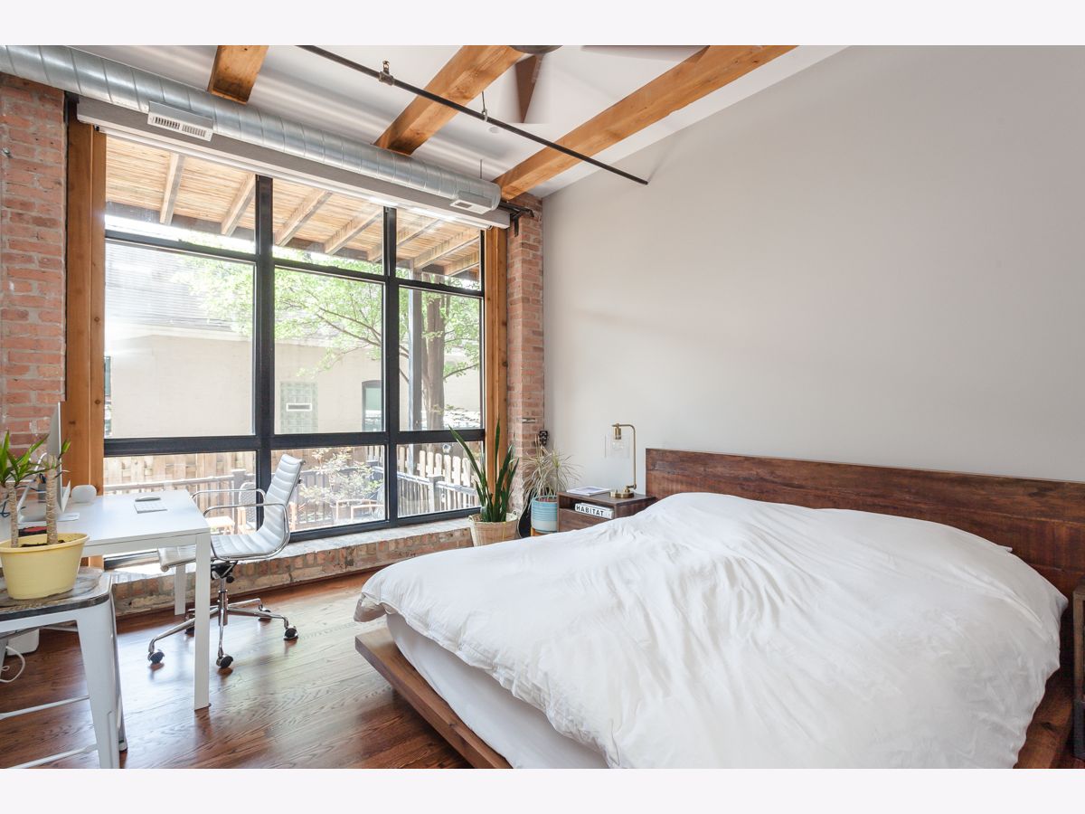 Don't miss this rare opportunity to live in one of Bucktown's most sought-after condo buildings, perfectly situated along the 606 Trail. This light-filled 2-bedroom, 2-bath loft offers a blend of classic character and modern comfort in an unbeatable location. The home showcases original timber frame construction, exposed brick, hardwood floors, and dramatic floor-to-ceiling windows that flood the space with natural light. The open-concept living area flows seamlessly into a well-appointed kitchen featuring stainless steel appliances, high-end finishes, and a spacious island-ideal for both everyday living and entertaining. The large, soundproofed primary suite includes a beautifully designed bathroom with double vanities, decorative tile, and a walk-in shower. The generously sized second bedroom is complemented by an equally spacious second bathroom. Enjoy outdoor living with a private patio and yard space-an uncommon feature for loft living. The unit also includes two secure parking spaces: one indoor and one outdoor. Located just two blocks from the CTA Blue Line, this home offers easy access to O'Hare and the Loop. Step outside to enjoy the best of Bucktown and Wicker Park, including renowned restaurants, boutique shopping, neighborhood parks, and direct access to the 606 Trail. $40/mo Mandatory Resident Benefit Package includes renter's insurance, positive credit reporting for on-time rental payments, identity fraud protection and more. Tenant responsible for condo association $150 non refundable move in/out, $300 refundable move in/out deposit. $500 non refundable admin to the landlord. No SD. No Pets.