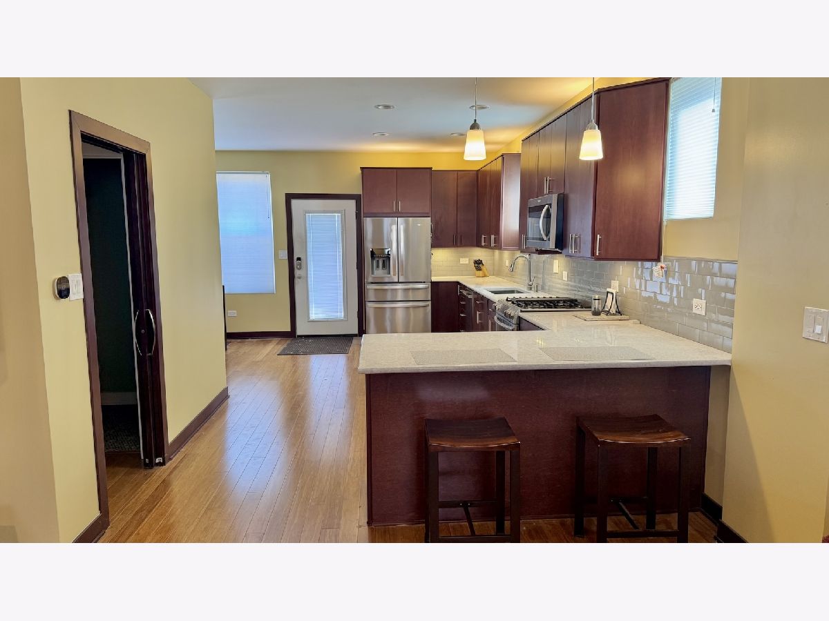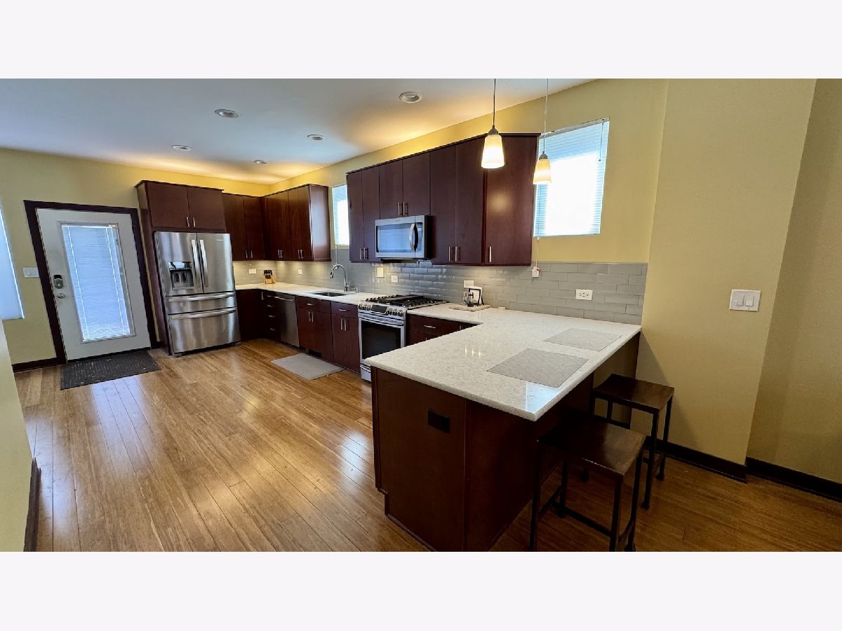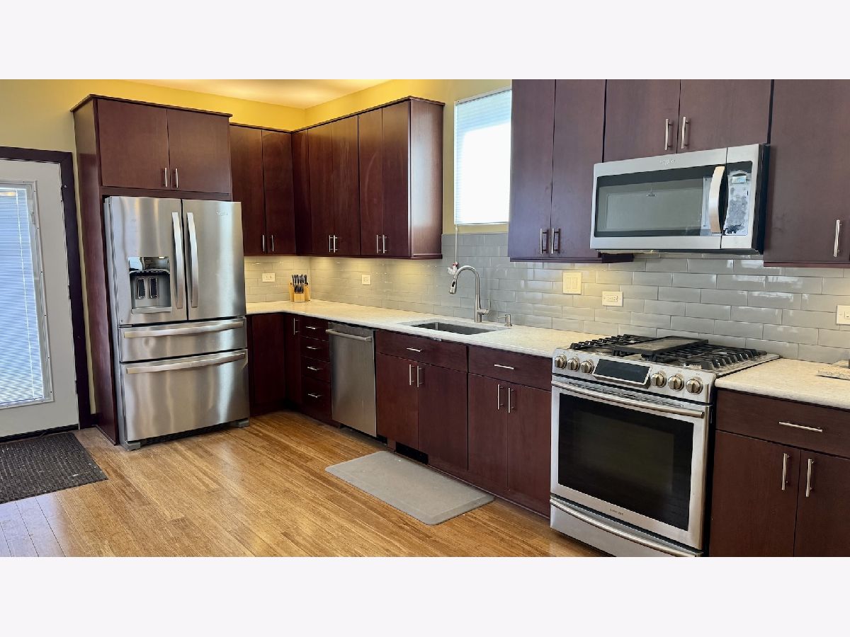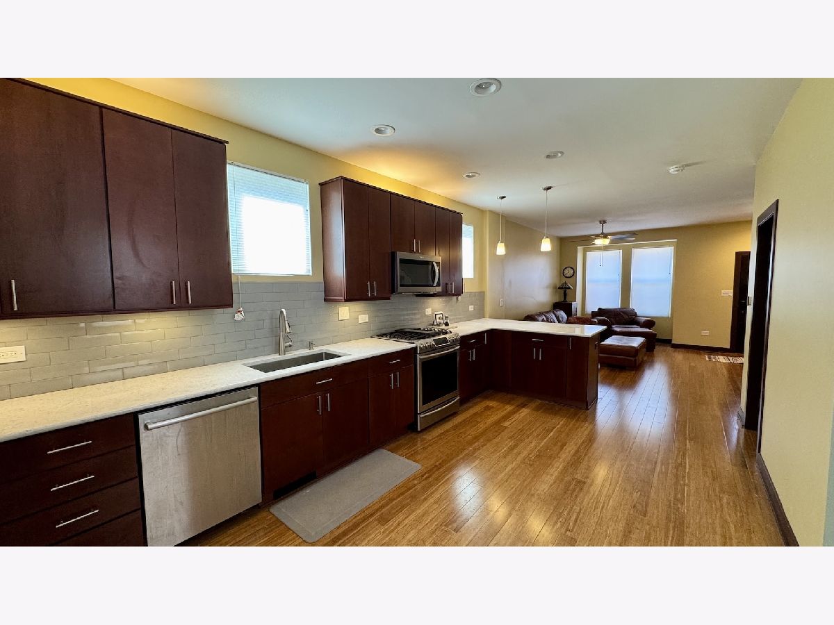 You will love this spacious, rehabbed, 3 bed / 1.5 bath, brick single family home with three levels (first floor, second floor and basement) and: A great layout with: a living room (17 X 15) with bamboo flooring, an open kitchen and dining area, good sized bedrooms with new carpeting and window treatments (2025) and ceiling fans! A full, unfinished basement with your own, newer washer and dryer! A renovated (2022), eat-in kitchen: quartz countertops, ample cherry cabinets, and stainless-steel appliances, including a dishwasher and microwave! A fenced back yard with a patio and porch! A2 car garage! Feel secure renting from a thoughtful landlord who takes great care of his property. Recent renovations include: new roof (2024), new dryer (2024), new deck and sidewalks (2023), new hot water heater (2023), Central AC (2023) and updated furnace (2021)! At no additional cost, there is an option to keep or have the landlord remove the furniture. Outstanding Logan Square / West Bucktown location (Bloomingdale and Washtenaw), on a sunny corner lot, right across from the Bloomingdale Trail (The 606). This great location offers easy access to: public transportation (the Blue Line, CTA buses), the highway, miles of parks & boulevards, and some of Chicago's best restaurants, shopping, cafes, and nightlife! Please review Agent Remarks before setting up the showing.