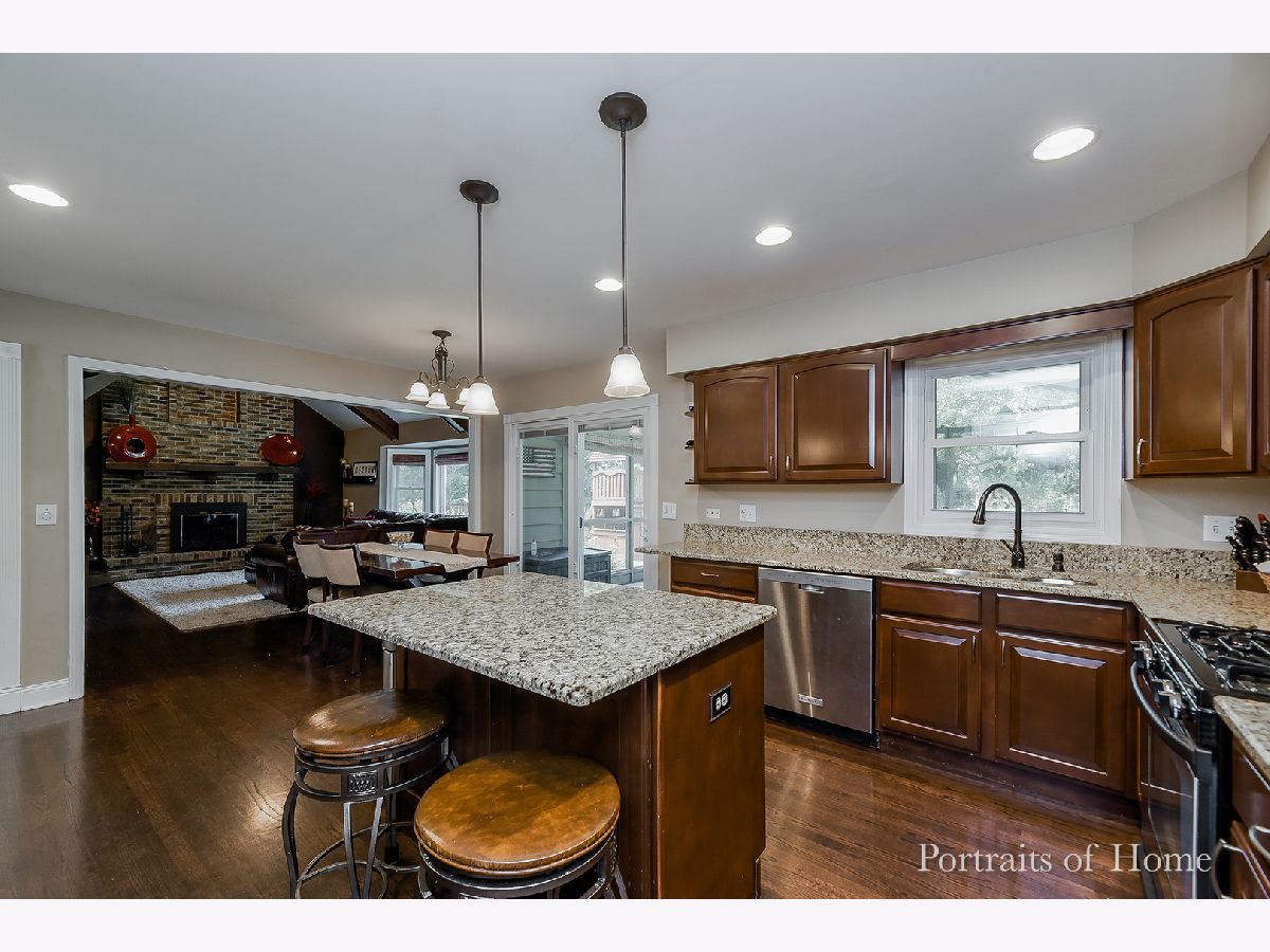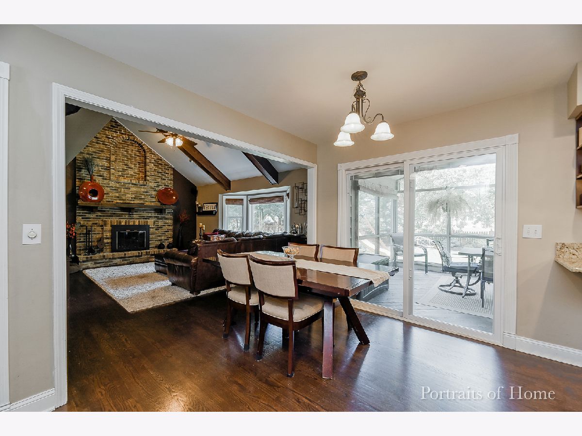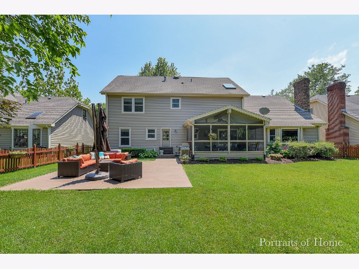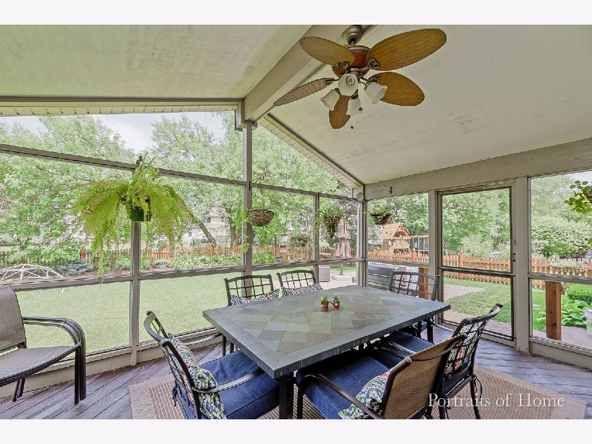 Welcome to your dream home! This beautifully updated residence is situated in the renowned District 203, where all the schools boast a perfect 10 rating. Nestled on a tranquil cul-de-sac, you'll be just a short stroll away from Ranch View Elementary School. Recent upgrades include a new roof, siding, windows, exterior doors, and skylights. The first floor features elegant hardwood flooring, a custom dining room with a stunning coffered ceiling, and an updated kitchen equipped with granite countertops and stainless steel appliances. Enjoy cozy evenings in the vaulted beam family room with a real wood burning fireplace. This level also includes a playroom and an office. Upstairs, you'll find four spacious bedrooms with ample closet space, plus an additional office area. The entire house is adorned with crisp white trim. A screened-in porch offers views of the backyard and patio, where a Weber grill connected to the gas line awaits your barbecues. The fenced yard is perfect for kids, complete with a large playset for endless fun. This home truly has it all!
