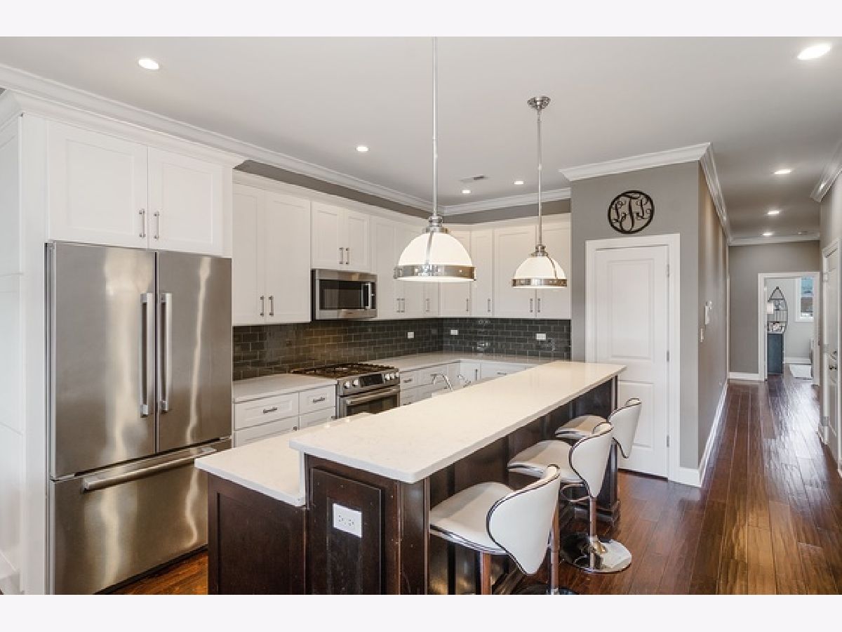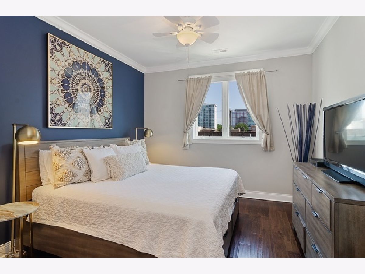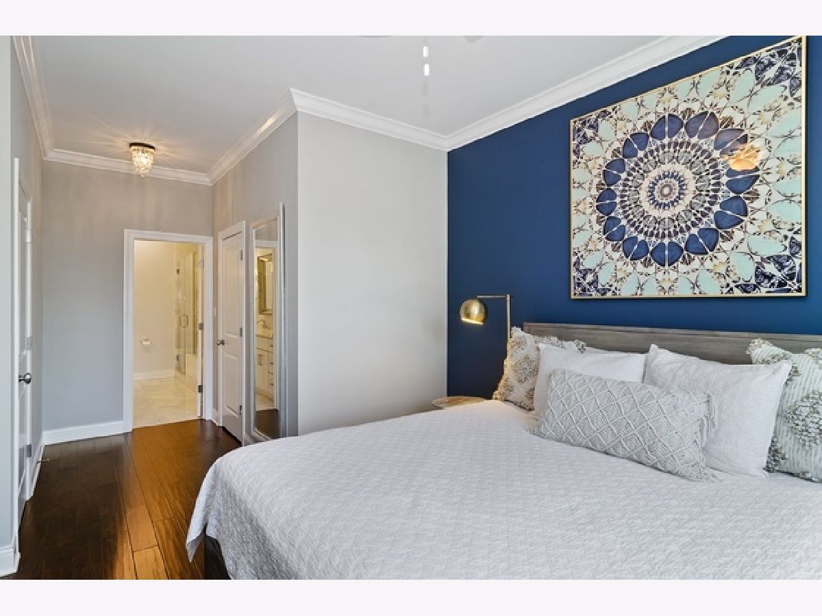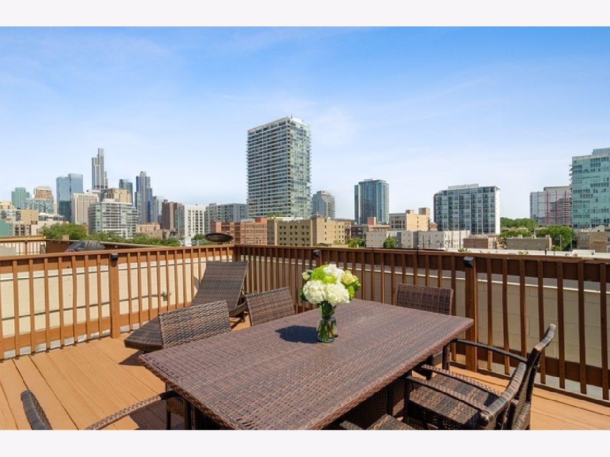 Spacious and luxurious South Loop residence featuring an extra-wide layout with a bright, open floor plan and abundant natural light. Beautiful dark, wide-plank hardwood floors throughout. Sleek gourmet kitchen with modern cabinetry, quartz countertops, large breakfast bar, and premium Bosch stainless steel appliances. Expansive primary suite offers a walk-in closet and spa-like bath with double quartz vanity. Generously sized second bedroom with ample closet space. Enjoy a private rooftop deck with stunning city skyline views. Additional features include custom window treatments and closets, in-unit washer/dryer, gas fireplace, and one exterior parking space included. Prime location within walking distance to the Green and Red Line, Metra, and lakefront, with easy access to I-90/94, I-55, I-290, Lake Shore Drive, Chinatown, and Pilsen. Available now.
