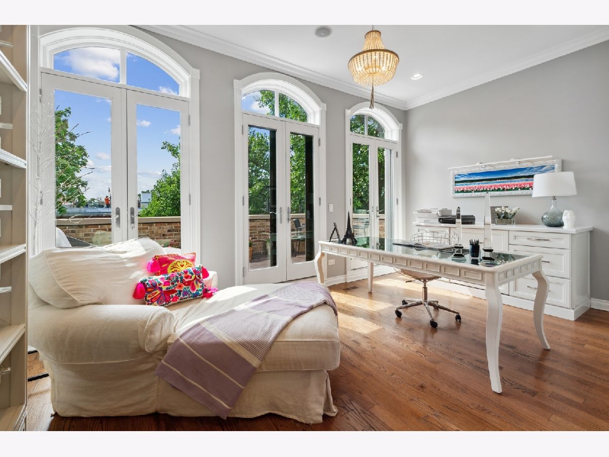 Exceptionally rare opportunity to lease a incredibly unique, luxury fully furnished SFH in the heart of Lincoln Park. Located on a refined residential stretch of Bissell Street, steps from first-class dining and boutique shopping along Armitage and Halsted Avenues, this spacious modern home features 5 bedrooms, 5.5 baths and 5 private outdoor spaces. Flawless architecture, high ceilings, custom millwork and an abundance of natural light are evidenced throughout, beginning with a spacious living/dining great room that flaunts rich hardwood floors, French doors that open onto Juliet balconies, designer window treatments, a statement fireplace and bold light fixtures. The adjacent chef's kitchen stuns with custom cabinetry, marble countertops, SubZero/Wolf appliances and a butcher's block island with counter seating, and connects to a light-filled family room with double-height ceilings and wall-to-wall windows. Here, access is granted to a covered back deck, a landscaped yard with patio, and yet another outdoor deck above the two-car garage. Upstairs, three lovely ensuite bedrooms and a laundry room present on the second level. The third level is entirely devoted to the primary suite, which features an amazing private terrace sited under an impossibly gorgeous tree, hotel-worthy spa bath with dual vanity and standalone soaking tub, and a charming WFH office with beautiful built-ins which opens onto another cozy terrace. This spectacular home also boasts a fully finished lower level that includes a rec room with fireplace, a wine cellar, excess storage, a second laundry and a fifth bedroom that is currently set up as a home gym. Complete with design-forward furniture and a footprint that's perfect for entertaining, 1925 N. Bissell St. is turnkey Chicago living for the whole family.