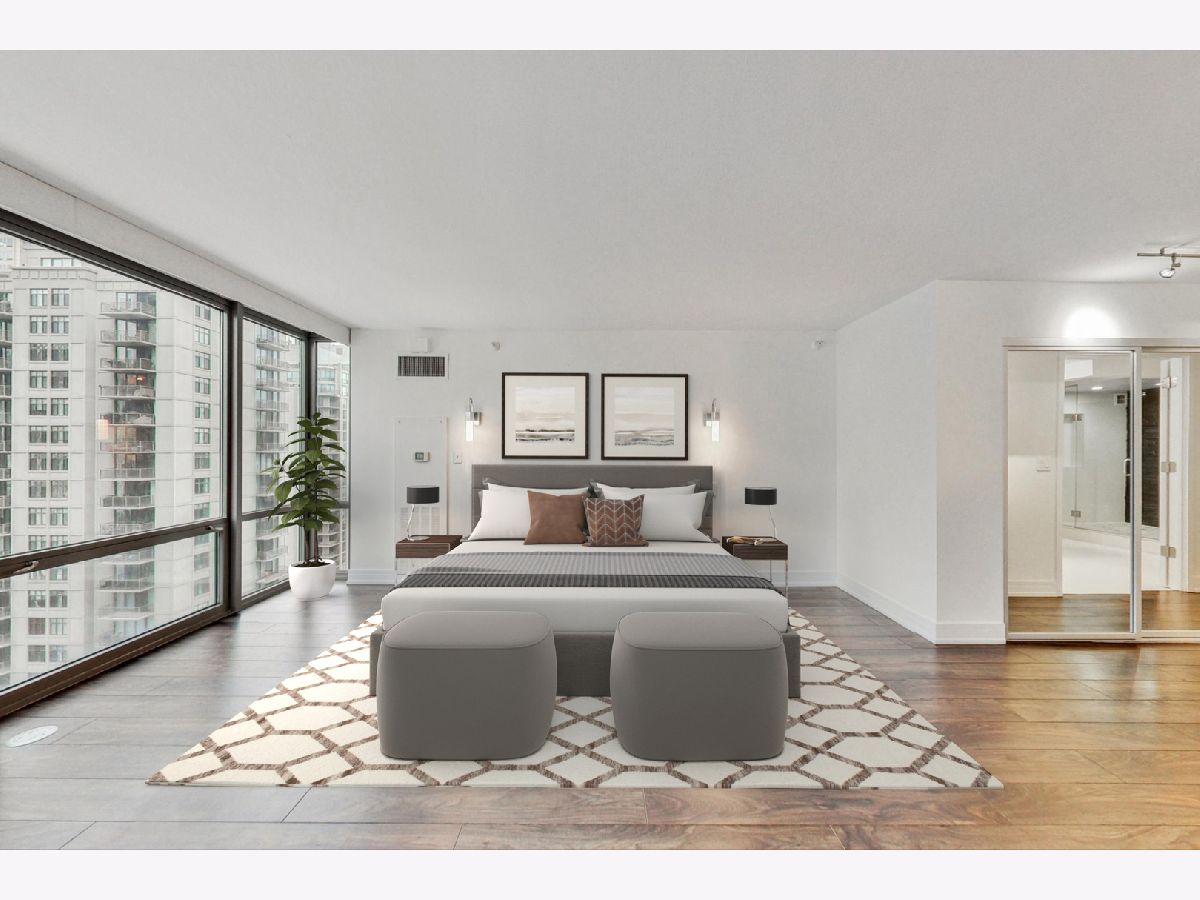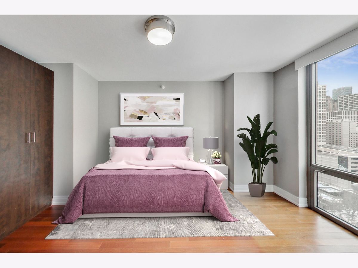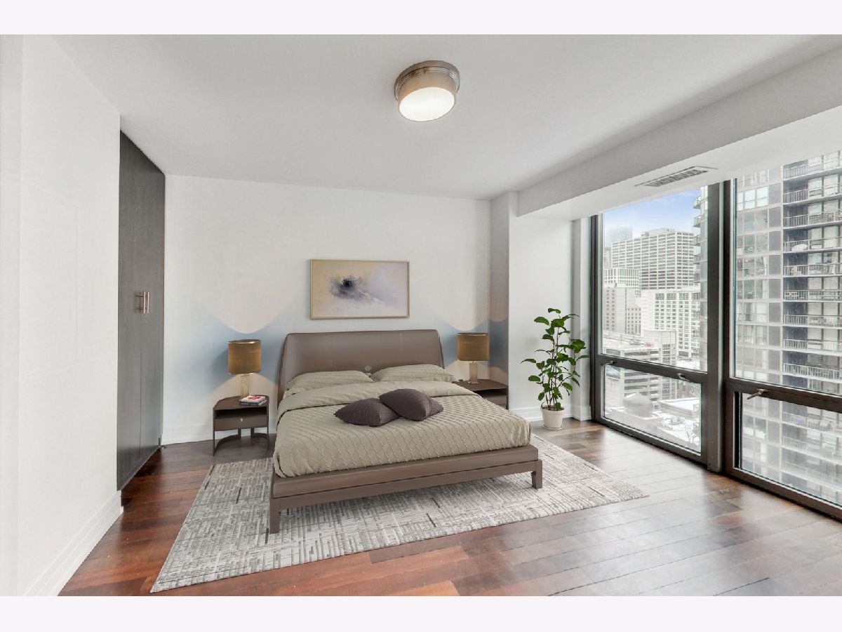 Welcome to this ultra-modern two unit condo conversion that created a spacious, high-floor, SW corner 3 bedroom / 3 full bathroom contemporary home in the heart of River North. With luxury finishes, this high-end condo offers floor to ceiling windows, providing amazing natural light throughout the day. The incredible chef's kitchen boasts striking custom cabinetry, quartz countertops, counter height island for meal prep and bar height island for entertaining. An induction cooktop and Wolf/Sub-Zero appliances complete the gourmet level kitchen. The open living/dining room maintains elegant, low-maintenance marble flooring, a private balcony and easy access to the third bedroom/den. The massive primary suite includes two organized walk-in closets and en-suite bathroom with heated flooring and an incredible 8x8 rainfall shower with body sprays. The second bedroom comes with a huge organized walk-in closet and en-suite bathroom with heated flooring as well. The third bedroom/den can be opened/closed off with opaque glass sliding doors, allowing an option for a bigger space for sophisticated living and entertaining. With abundant closet space, this home also provides convenient in-unit laundry and 2 additional storage cages. Full-amenity building with 24-hour door person, newer fitness room, party room and common rooftop deck with knockout views. Seconds to some of Chicago's best dining, shopping and entertainment with Lake Michigan a short stroll away. Premium attached garage parking space (fits 2 cars) is an additional $250/month. The best of modern city living in a tremendous location.