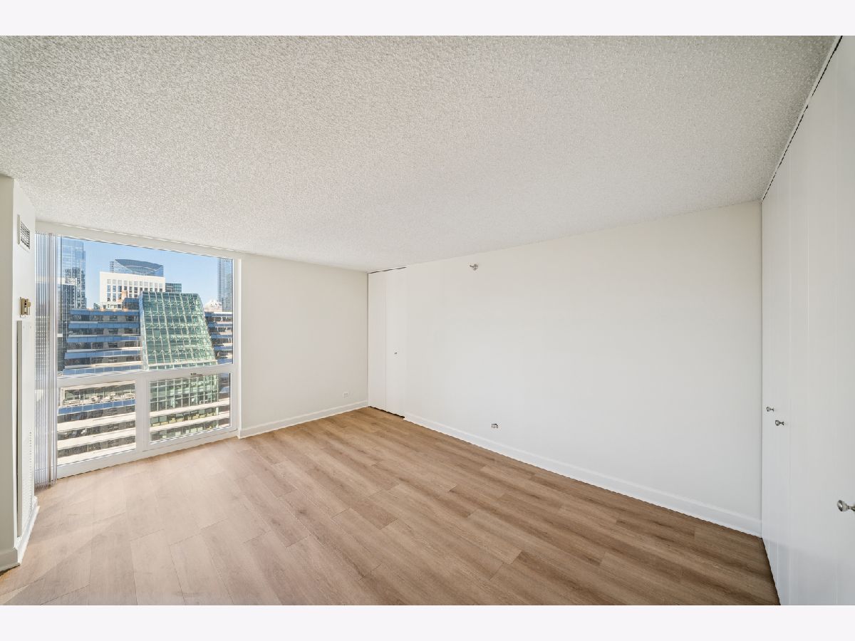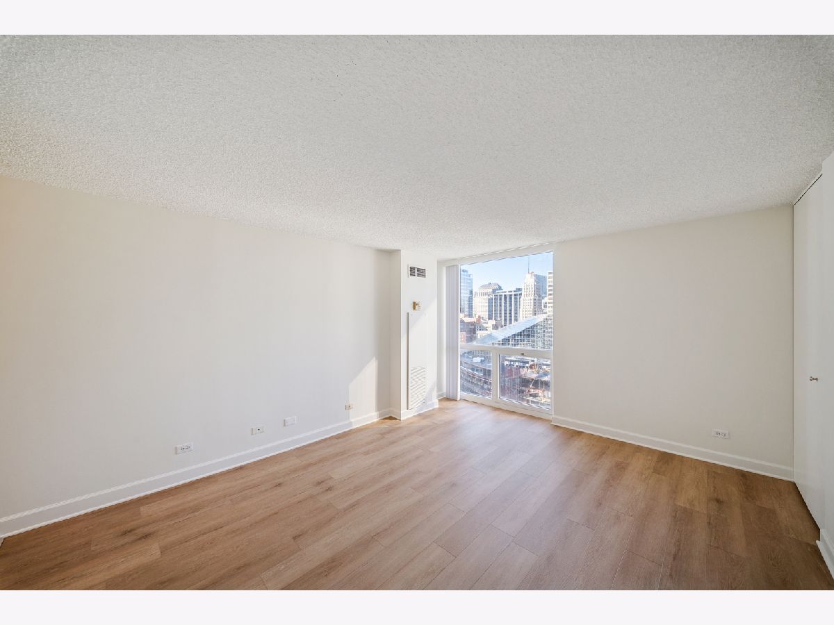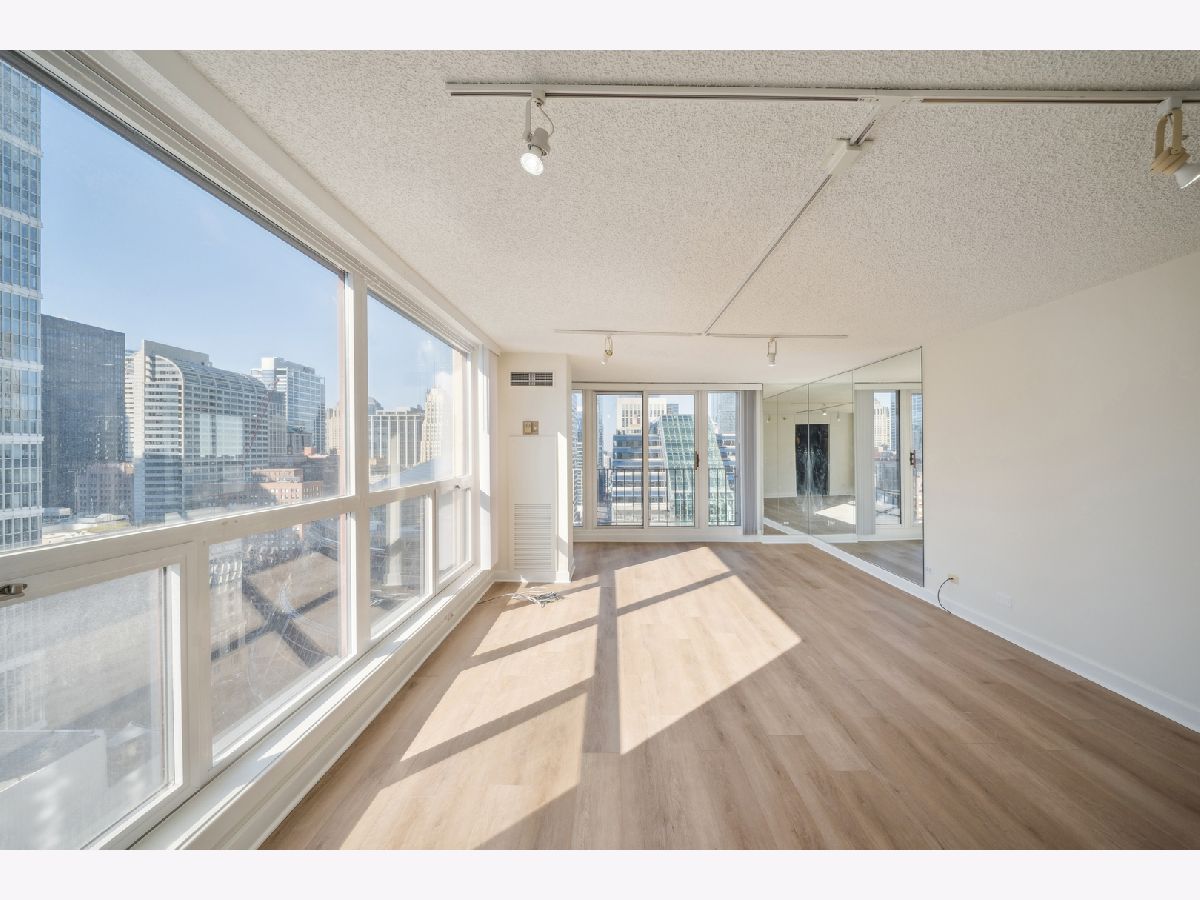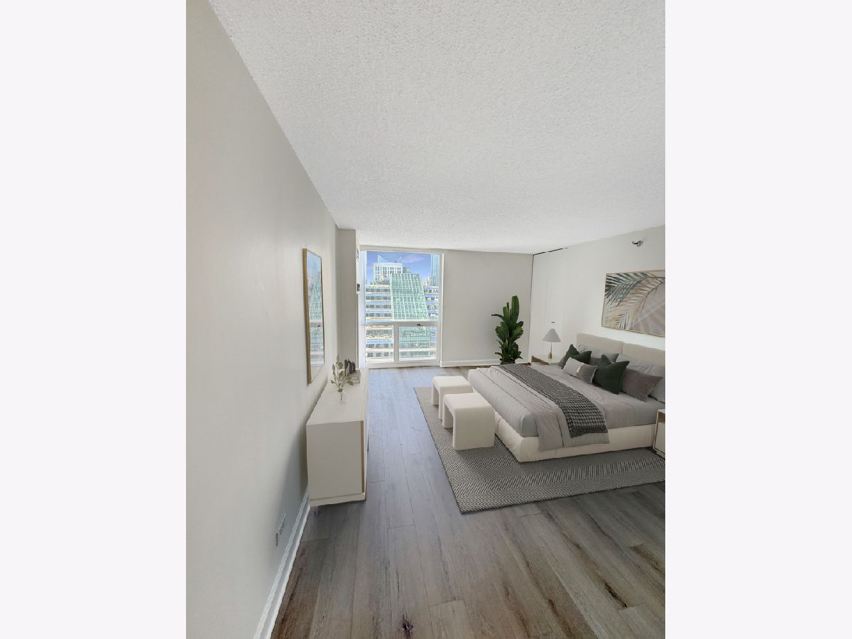 UPDATES as of October 2025 include: high performance durable 7-inch-wide luxury water-resistant vinyl flooring, a new GE refrigerator, new paint on all walls, doors, trim, baseboards, and ceiling, a new light fixture in the second bathroom, new light filtering vertical blinds throughout, and new custom closets. Ready for immediate occupancy, experience life in the vibrant heart of downtown Chicago, just a short walk from all the city has to offer! This UPDATED high-floor open-concept design features a wall of windows in the living/dining area and includes brand new high performance durable 7-inch-wide luxury water-resistant vinyl flooring throughout the living/dining space and both bedrooms, fresh paint throughout including all walls, doors, trim, baseboards, and ceiling, new light filtering vertical blinds throughout, new custom closets, and two opulent marble full baths with full-height mirrors and Brookhaven cabinetry! Indulge in a contemporary kitchen with newer stainless GE appliances including a brand-new refrigerator, tall Brookhaven dark cabinets for extra storage, custom tile flooring, stylish granite countertops with a custom tile backsplash, and a large single bowl sink. Savor stunning city views from the living/dining area and both bedrooms, enhanced by a private balcony and endless views off the living room. The living/dining area is further enhanced by overhead track lighting that creates a warm atmosphere. The building boasts full amenities, including a 24-hour doorman, a gym, a sundeck, and on-site laundry facilities! Located just steps away from every train line in the city, you will find an array of fantastic bars and restaurants, such as City Winery along the Chicago Riverwalk, RPM, and many more. Enjoy endless shopping on Michigan Avenue, entertainment options like the Goodman Theatre, and convenient access to Lake Michigan, the riverwalk, grocery stores, gyms, and the highway.