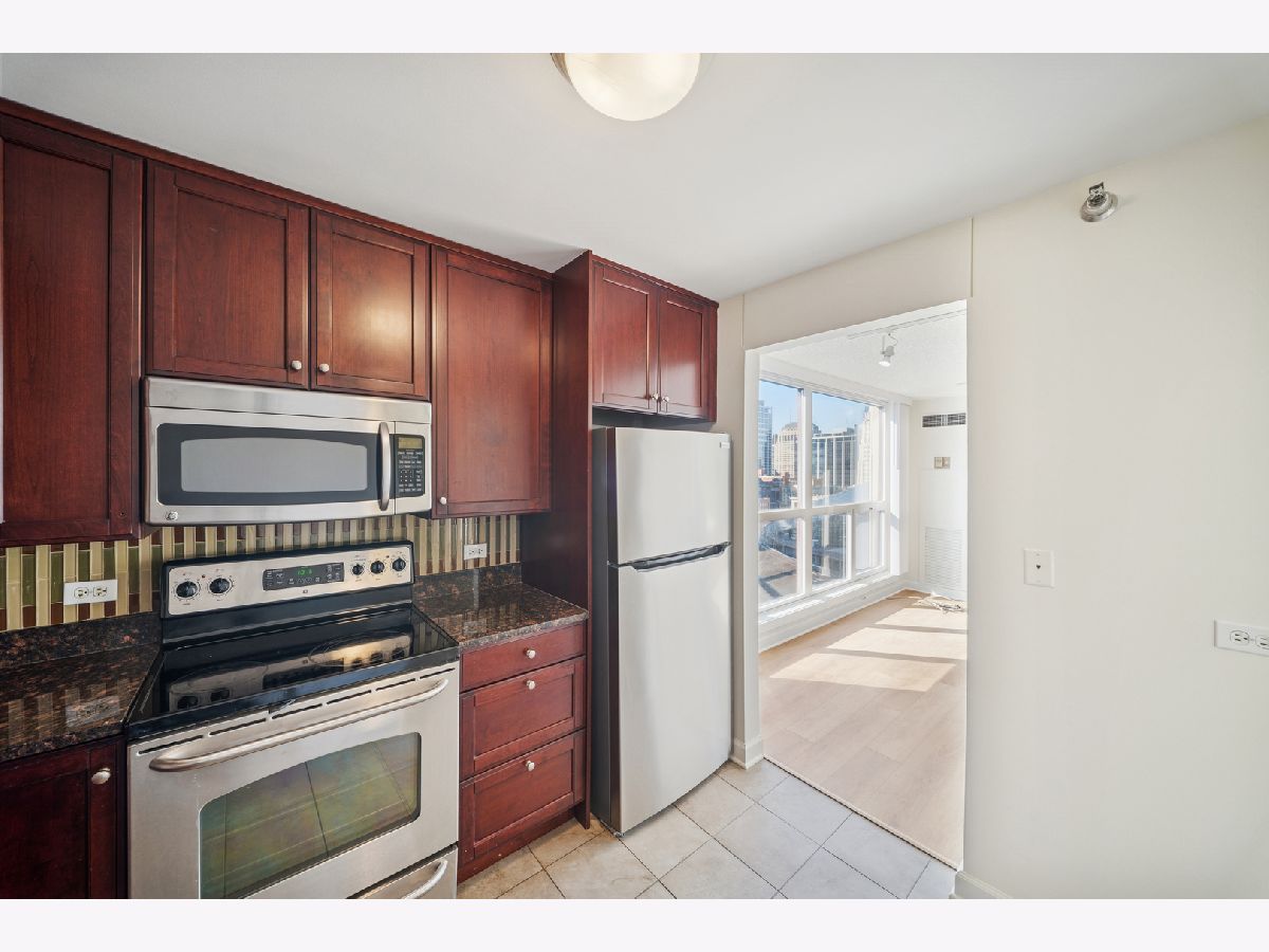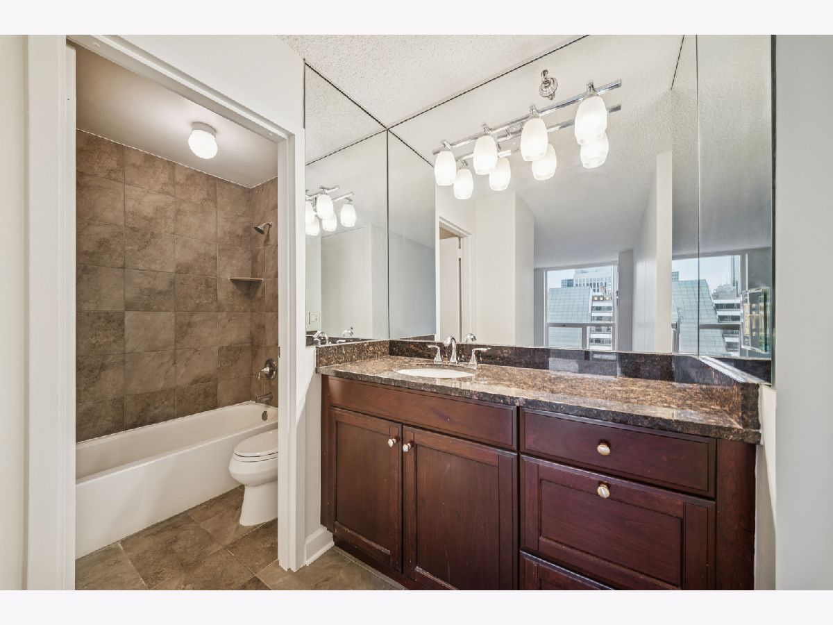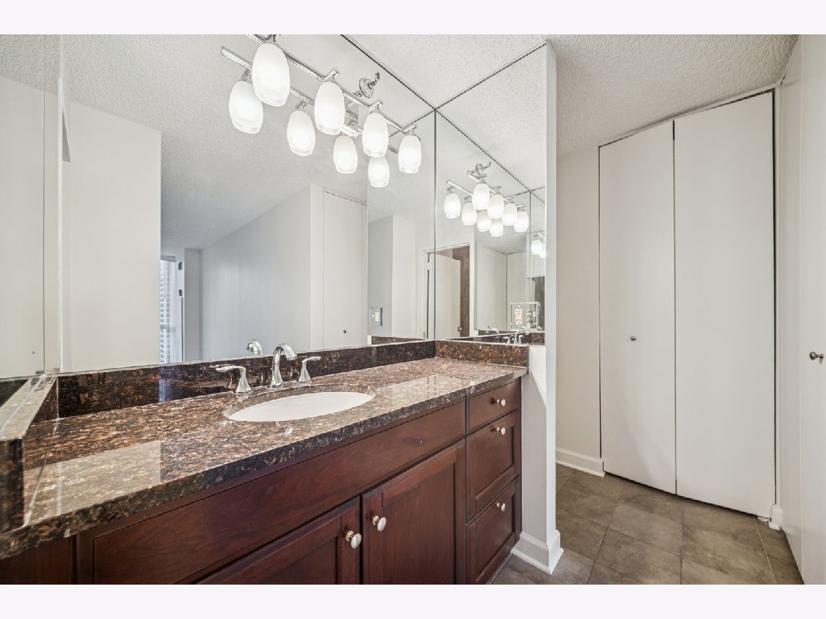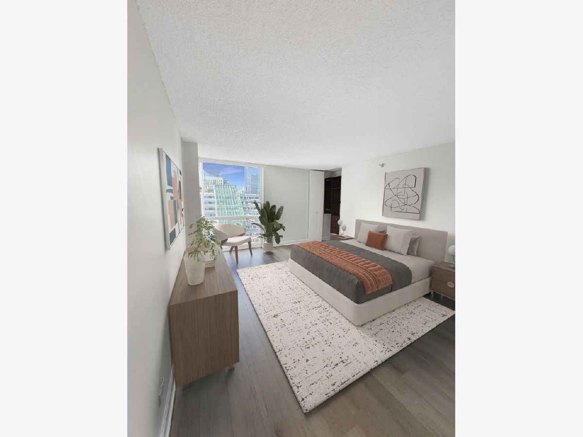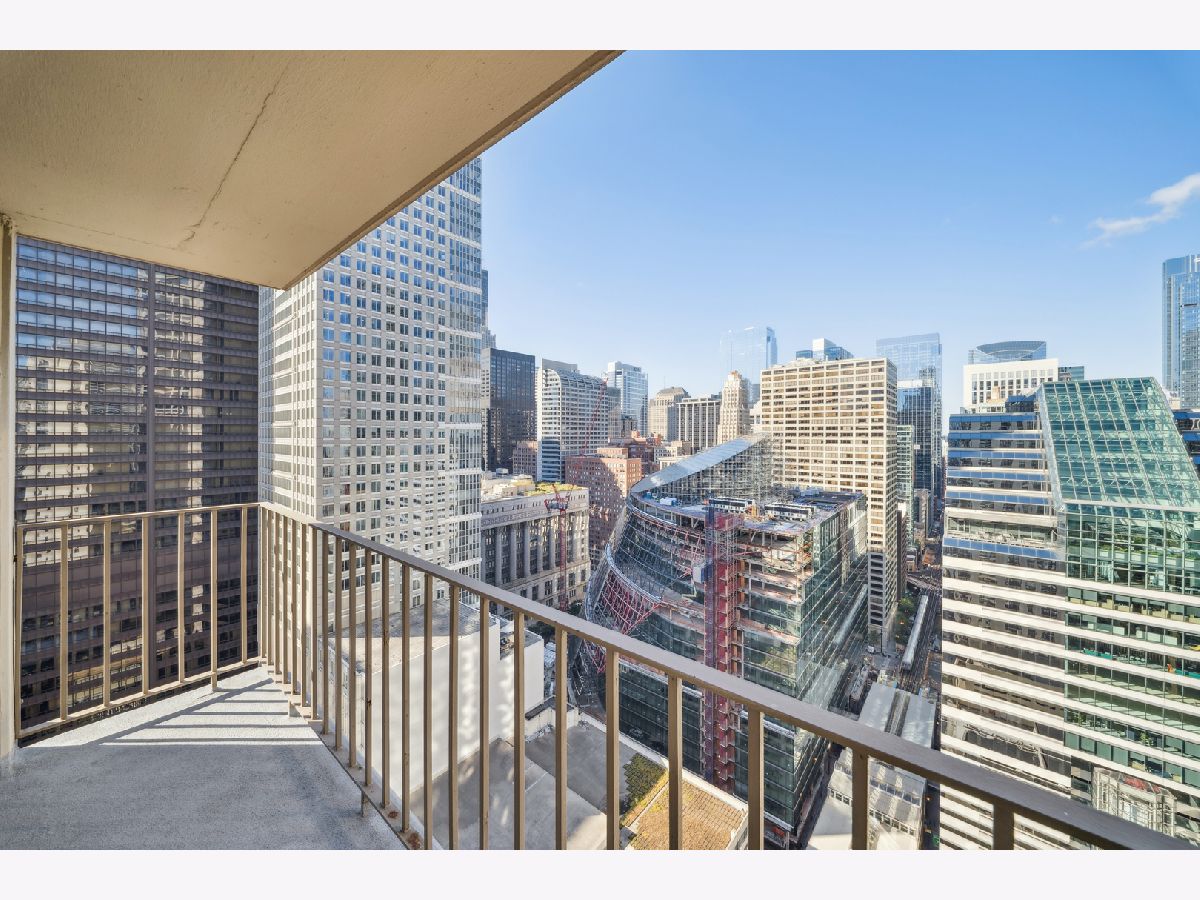 UPDATES as of October 2025 include: high performance durable 7-inch-wide luxury water-resistant vinyl flooring, a new GE refrigerator, new paint on all walls, doors, trim, baseboards, and ceiling, a new light fixture in the second bathroom, new light filtering vertical blinds throughout, and new custom closets. Ready for immediate occupancy, experience life in the vibrant heart of downtown Chicago, just a short walk from all the city has to offer! This UPDATED high-floor open-concept design features a wall of windows in the living/dining area and includes brand new high performance durable 7-inch-wide luxury water-resistant vinyl flooring throughout the living/dining space and both bedrooms, fresh paint throughout including all walls, doors, trim, baseboards, and ceiling, new light filtering vertical blinds throughout, new custom closets, and two opulent marble full baths with full-height mirrors and Brookhaven cabinetry! Indulge in a contemporary kitchen with newer stainless GE appliances including a brand-new refrigerator, tall Brookhaven dark cabinets for extra storage, custom tile flooring, stylish granite countertops with a custom tile backsplash, and a large single bowl sink. Savor stunning city views from the living/dining area and both bedrooms, enhanced by a private balcony and endless views off the living room. The living/dining area is further enhanced by overhead track lighting that creates a warm atmosphere. The building boasts full amenities, including a 24-hour doorman, a gym, a sundeck, and on-site laundry facilities! Located just steps away from every train line in the city, you will find an array of fantastic bars and restaurants, such as City Winery along the Chicago Riverwalk, RPM, and many more. Enjoy endless shopping on Michigan Avenue, entertainment options like the Goodman Theatre, and convenient access to Lake Michigan, the riverwalk, grocery stores, gyms, and the highway.