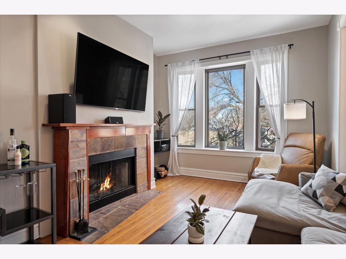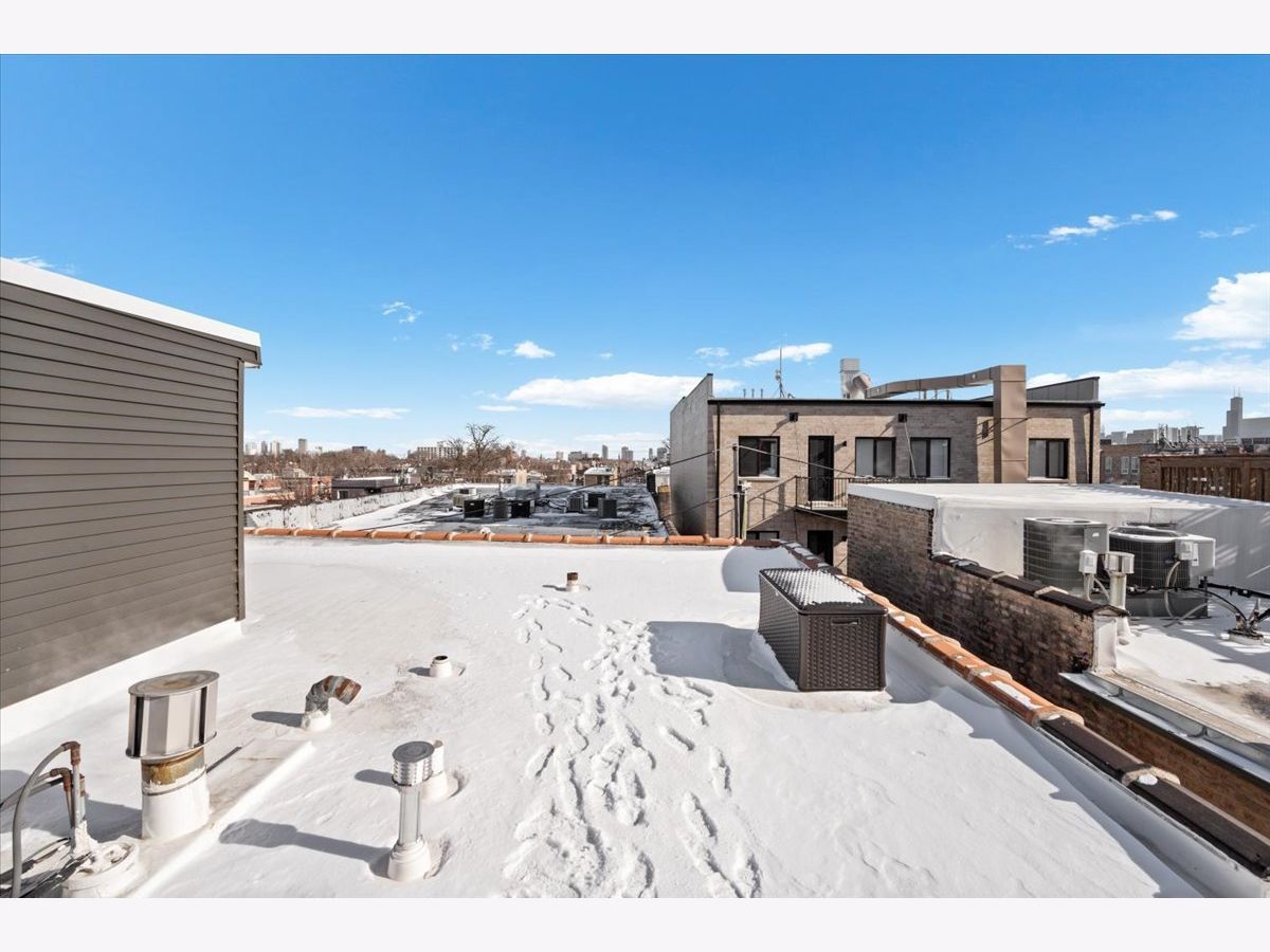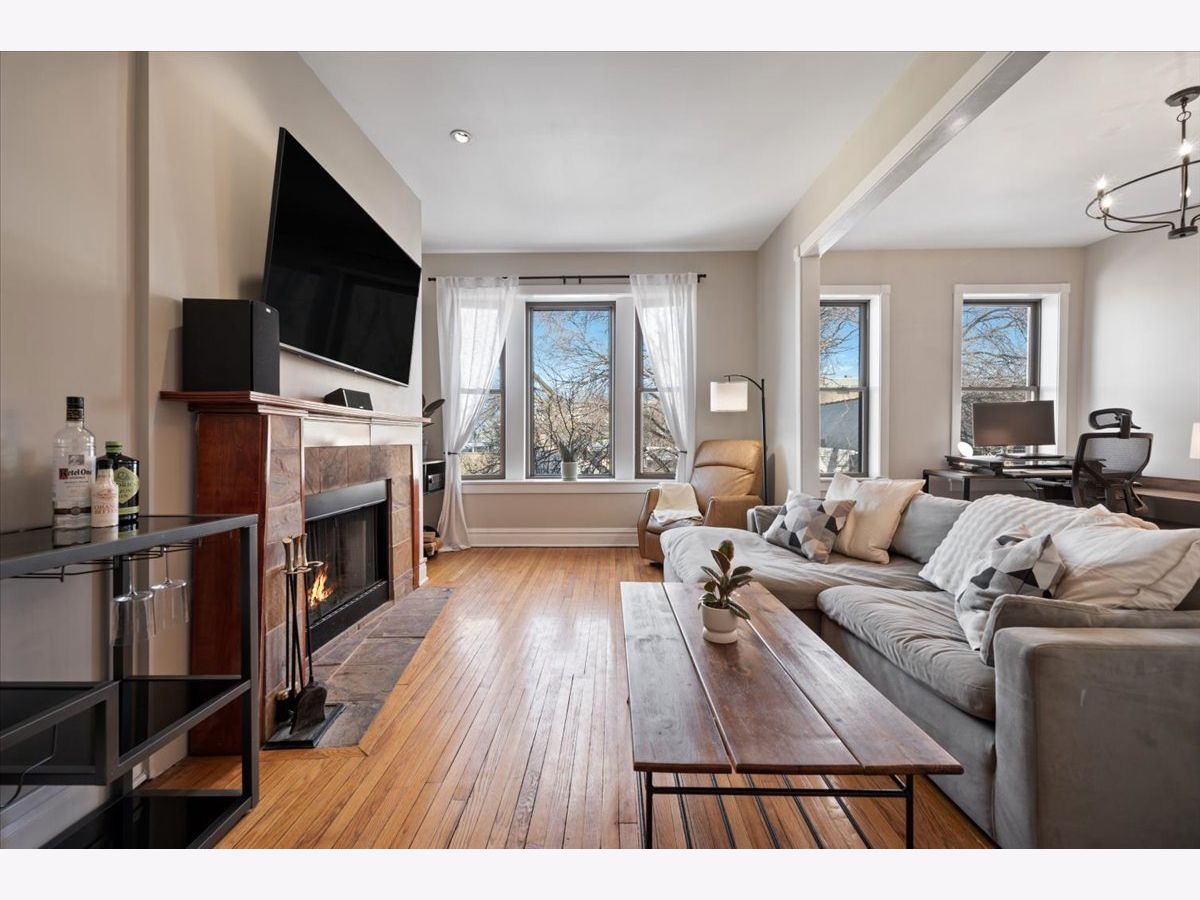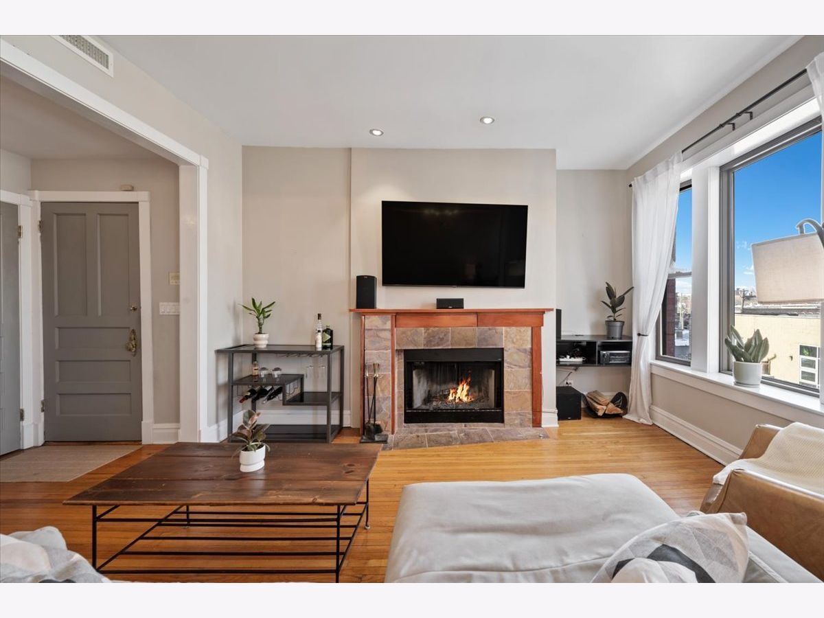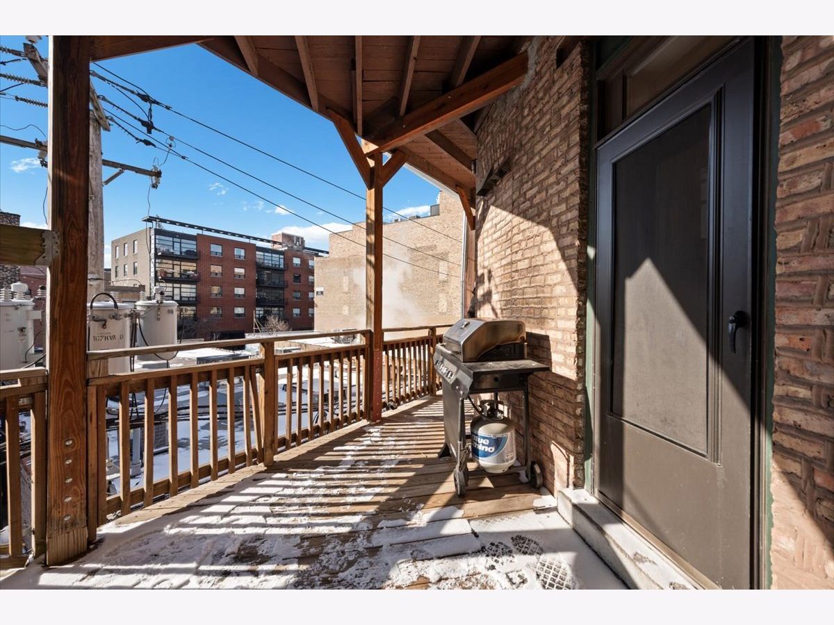 Amazing penthouse available in the heart of Bucktown! This sun-drenched home features soaring high ceilings, gorgeous vintage details, original woodwork, stunning hardwood floors throughout, and a wood-burning fireplace anchoring the living room. The recently redone kitchen shines with white cabinetry, quartz countertops, stainless steel appliances, and an island-perfect for everyday living and entertaining. The kitchen opens through a large glass door with screen to a deck, ideal for grilling and outdoor dining. The expansive living room flows seamlessly into a formal dining room, creating a wonderful sense of space-perfect for hosting, dining, or a home office setup. The crisp bathroom includes a skylight, and the home also offers in-unit washer/dryer, central air, and abundant storage throughout. Custom-painted interiors and tons of windows bring in incredible natural light on this charming, quiet street just off Damen, North, and Milwaukee. Coming this spring is an exciting new common roof deck offering stunning skyline views-perfect for entertaining or relaxing above it all. An exceptional opportunity to live in a character-filled penthouse in one of Chicago's most vibrant neighborhoods. Steps from top restaurants, coffee shops, boutique shopping, the 606, dog parks, Big Star, Wicker Park, and the Blue Line.