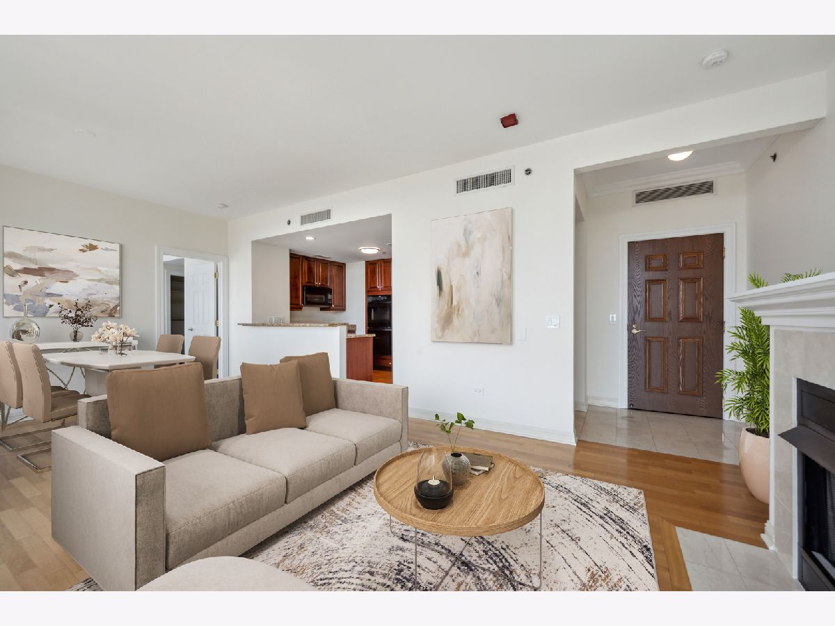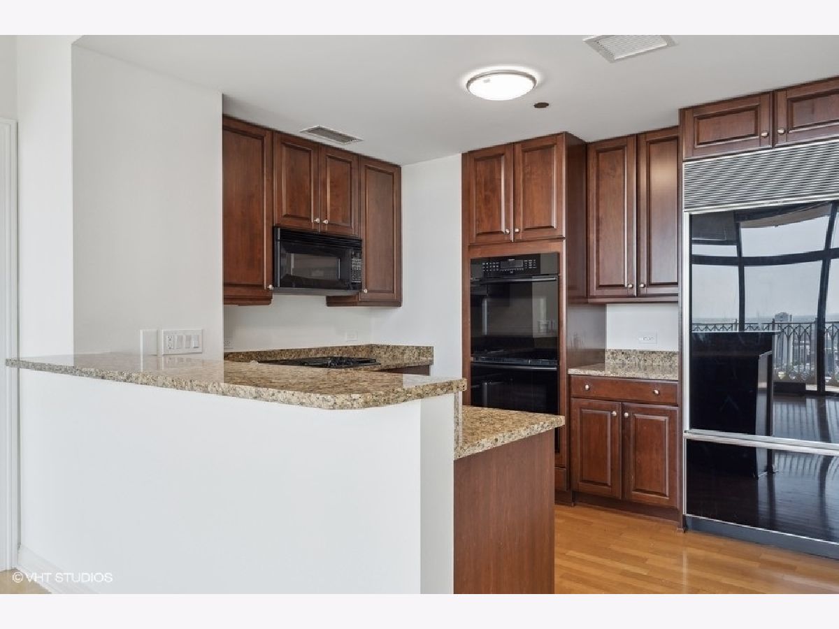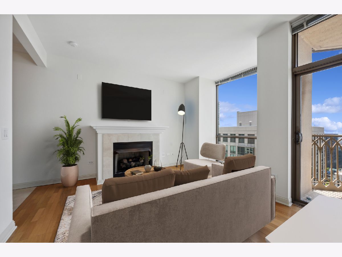 Pinnacle condominium presenting Pristine 1 bedroom/1.5 bathrooms residence on the 38th floor with oversized balcony! Stunning views from floor to ceiling windows, and gas fireplace in living room. Open kitchen with breakfast bar, gas cooktop, double ovens, and luxury appliances from Sub Zero and Thermador. Large master bedroom with marble bath, and walk-in closet. In unit washer and dryer. Superb full amenity first class building offers excellent service, door staff and maintenance. Indoor pool and jacuzzi, new exercise room, and renovated outdoor deck with grills. Building amenities are: the most amazing professionally designed dog walks, receiving room, dry cleaners/ alteration, bicycle storage, and storage lockers. Steps from Chicago's famed Gold Coast/Magnificent Mile shopping, dining and transportation. Wonderful opportunity! 1 parking space included.