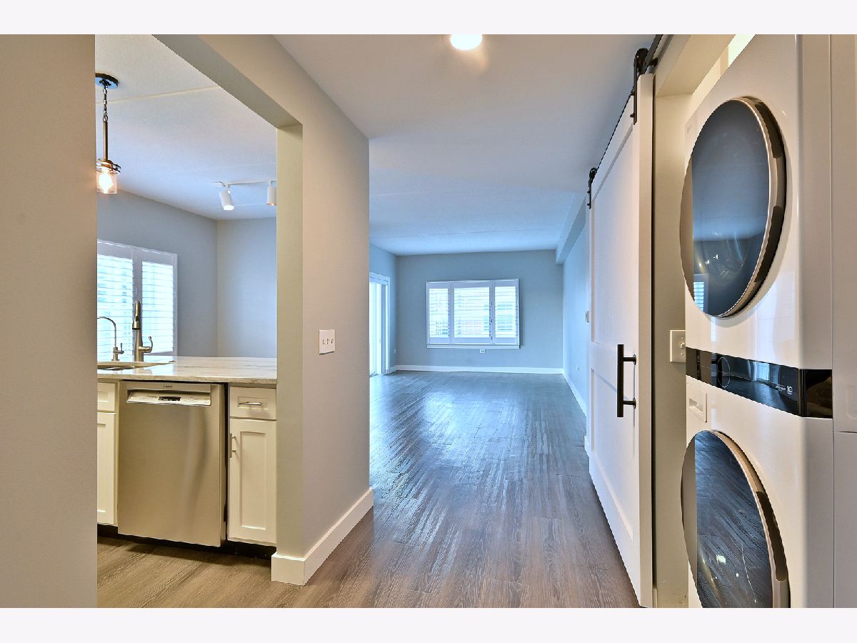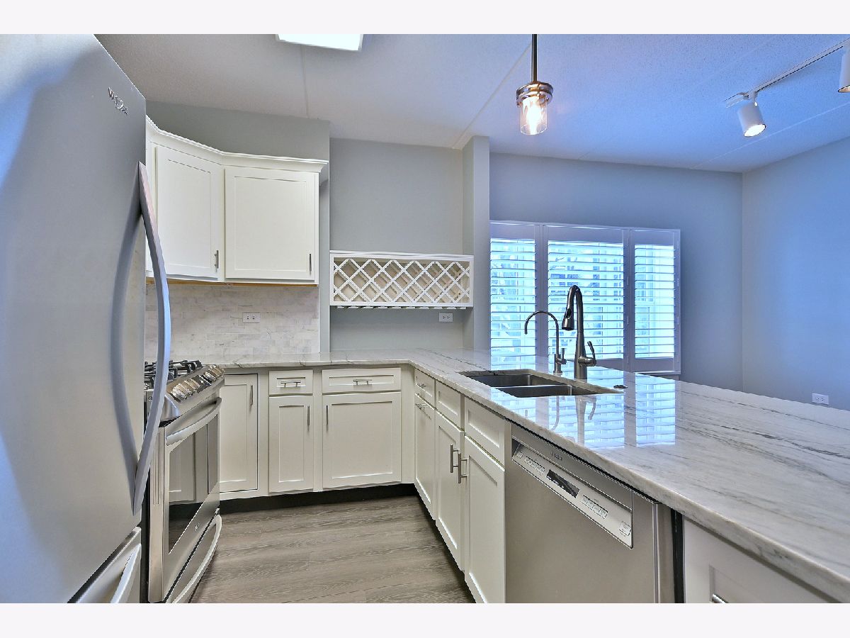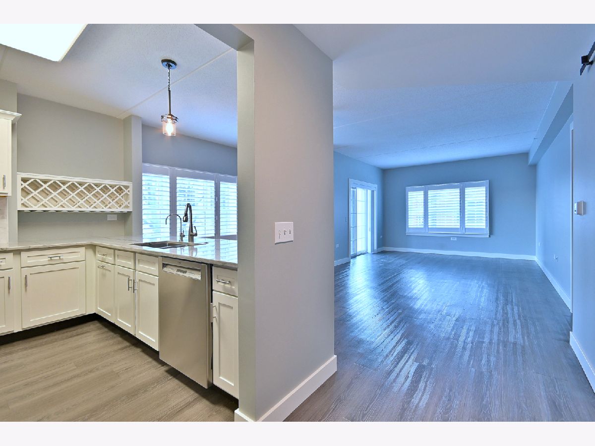 Sought after Corner Unit with 2 Bedrooms, 2 Full Baths & Loads of Closet Space. Updated Kitchen with White Cabinets, Quartz Countertops and Stainless-Steel Appliances. Primary Suite with Updated Private Bath and Walk-In Closet. Vinyl Plank Flooring Throughout. Lovely Balcony off the Living Room. Two Indoor Parking Spaces and a Dedicated Storage Unit. Downtown Elmhurst Location.