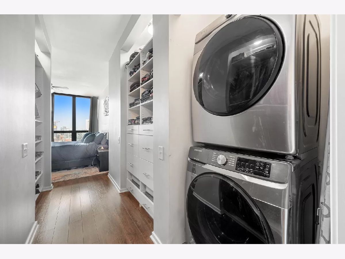 Available May 1st. Gleaming 2 bed 2 bath West Loop condo with unobstructed views, balcony, & hardwood floors throughout. Primary suite includes washer/dryer, en suite primary bath, and tons of closet space. Fully enclosed 2nd bedroom off living room w/ french doors. Recently updated kitchen and bathrooms. Unbeatable West Loop location steps from Metra / CTA stations, grocers, bars and restaurants. Easy access to I-90/94 & I-290. Building has gym, 24hr door-staff, party room & storage. Heat, AC, gas, water, & cable included in rent. Garage parking included in price.