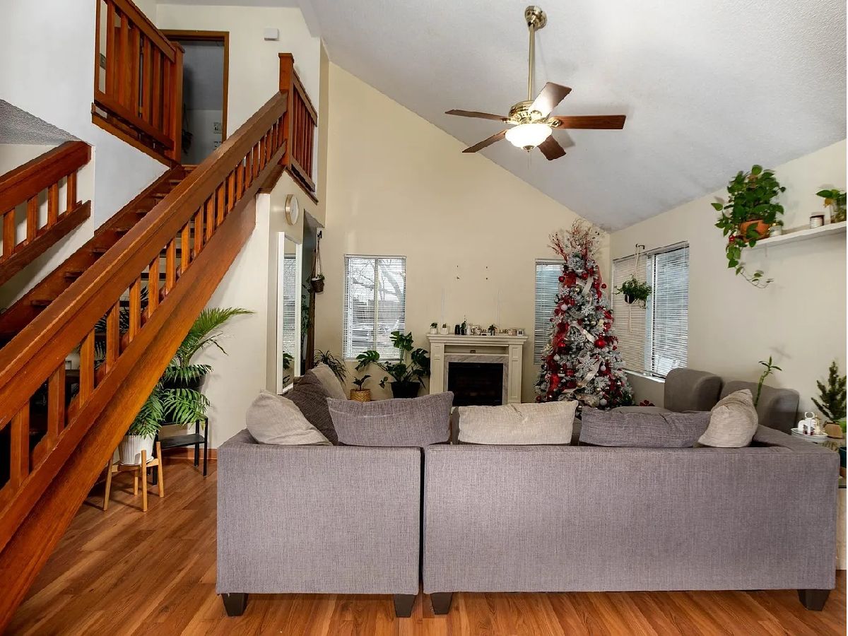 Welcome to your new home! This adorable 1/2 duplex (with no HOA!) is located on a quiet tree lined street, and greets you right from the start with undeniable curb appeal. Walk inside and be stunned by the vaulted ceilings, grand wooden staircase, separate dining area, and abundance of natural light. The large kitchen leads out to a fully fenced back yard via sliding glass doors, and the yard itself is an absolute showstopper! A separate concrete slab is perfect for your patio set and grill, and the large green lawn includes a built in fire pit for summer s'mores or fall cider! The 2nd level of the home includes 2 large bedrooms and a full bathroom, and the garage is attached to save you from the cold winter days. Newer AC, Water Heater, Washer & dryer, Windows and roof is just 6 years old. This is a MUST SEE!
