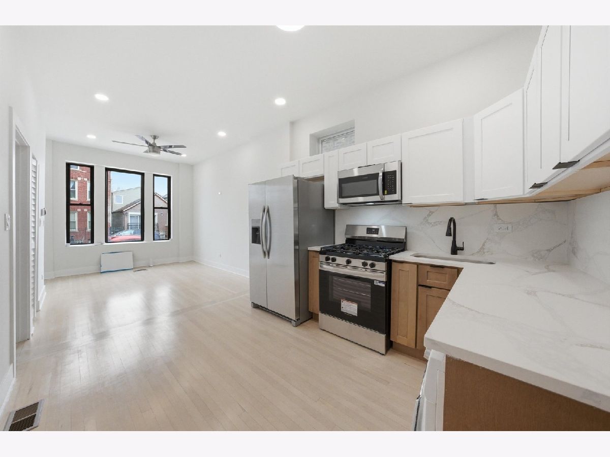 Stunning Fully Remodeled 2BR in the Heart of Pilsen. Welcome to this beautifully renovated 2-bedroom, 1-bathroom unit located on a charming block in one of Chicago's most vibrant and sought-after neighborhoods-Pilsen. This completely remodeled home features refinished hardwood floors throughout, creating a warm and modern feel. The brand-new kitchen is outfitted with sleek quartz countertops, a stylish backsplash, and a full stainless steel appliance package, including a convenient 2-in-1 washer/dryer combo.10 ft ceilings throughout, Both bedrooms are generously sized with ample closet space, while the updated bathroom showcases contemporary finishes for a clean, modern look. Enjoy year-round comfort with central heating and air conditioning. Ideally situated just steps from Harrison Park, the National Museum of Mexican Art, and the Pink Line for an easy commute. You'll also be moments from 18th Street's lively mix of restaurants, cafes, galleries, and nightlife. Don't miss your chance to live in one of Chicago's hottest neighborhoods-schedule a showing today! All Utilities are separate.
