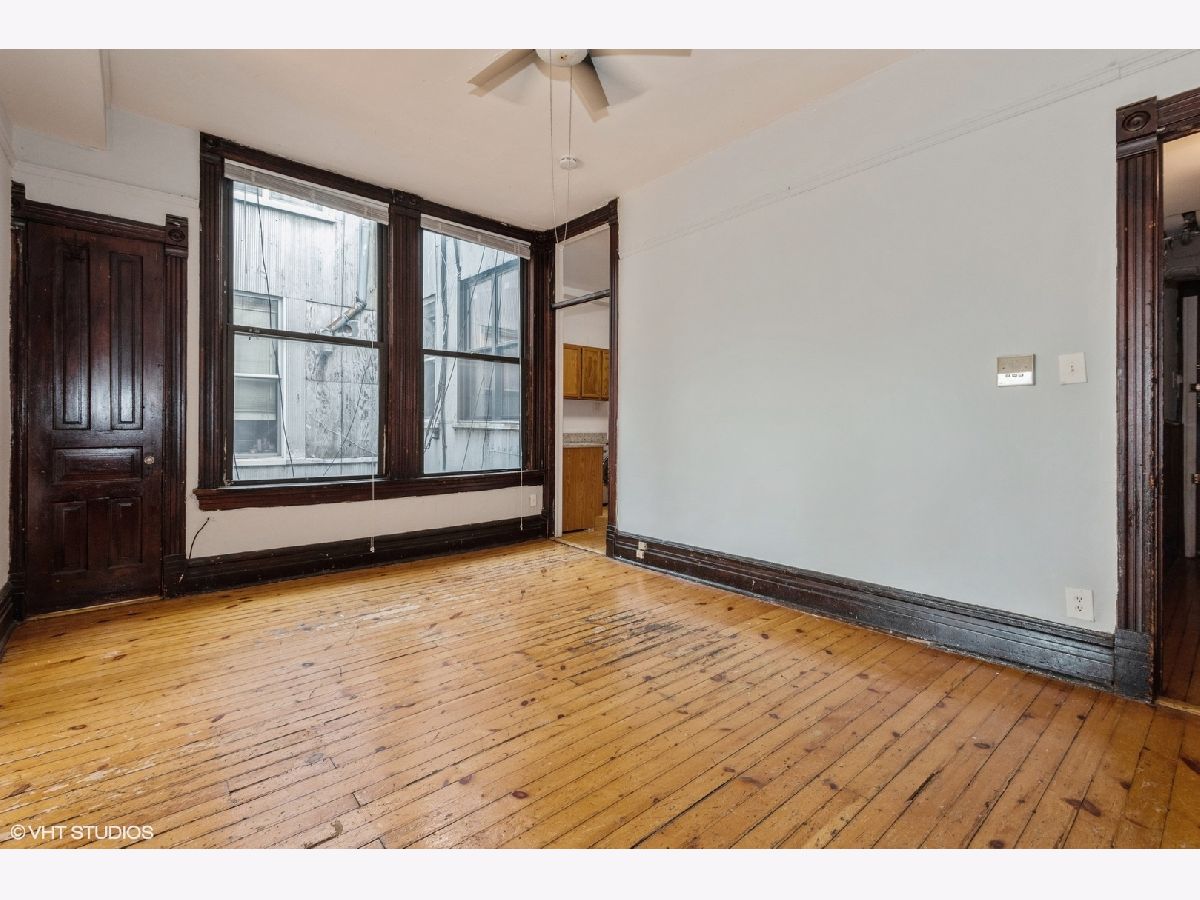 Exceptionally large vintage 2 bedroom/updated 1 bath with tub/shower located in the heart of Lincoln Park. Residence features 14" ceilings, ceiling fans, in unit laundry,Dishwasher, hardwood floors throughout, 3 window air conditioning units, huge living room with bay window/massive arch and original decorative fireplace with framed beveled glass mirror and separate formal dining room seating 10 - 12 guests for the upcoming holidays. The kitchen has a hutch from the early 1900's, full size washer and new dryer. The two bedrooms have generous size closets and large windows with blinds. Close to taverns, shopping, and CTA # 8 Halsted bus and #73 Armitage, Red Line and Brown Line nearby. 4/22/26: Interior photos are representative of a similar unit. New photos are forthcoming.
