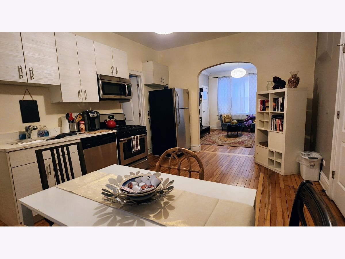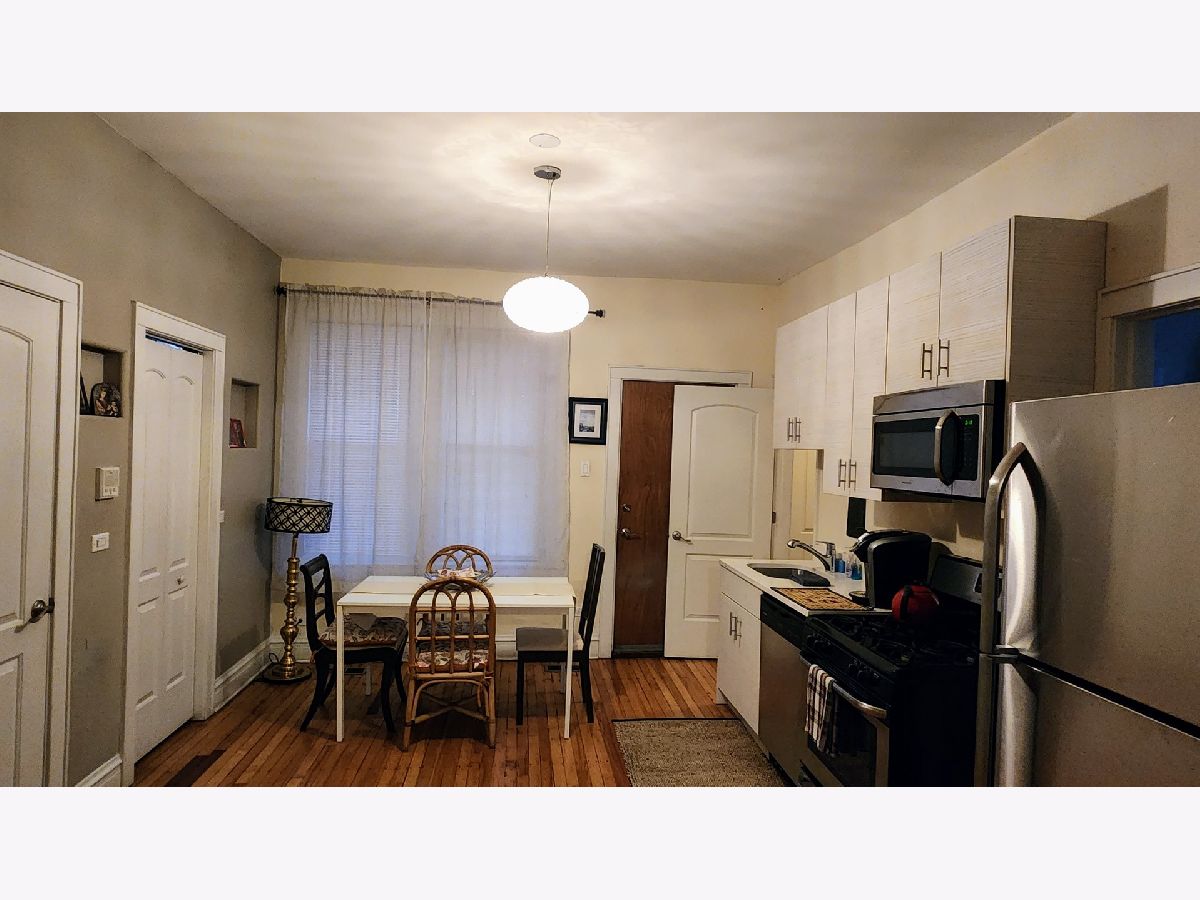 May 1st move-in! This is a top-floor, an all-new luxury unit with two outdoor spaces a balcony and a back porch!!! Extra-large and open floorplan living room with large open kitchen/dining room. Freshly refinished hardwood floors, central air and heat, brand new modern kitchen and all new bath - quartz countertops and stainless steel appliances, new all-white cabinets, and huge pantry. There is extra large storage, a bike locker, and a large laundry area in the building. Professionally managed secure and clean building. Very easy free street parking. 3 min walk to Chicago Ave bus for short transit to Blue Line train. This location is within walking distance of everything the Ukrainian village has to offer.